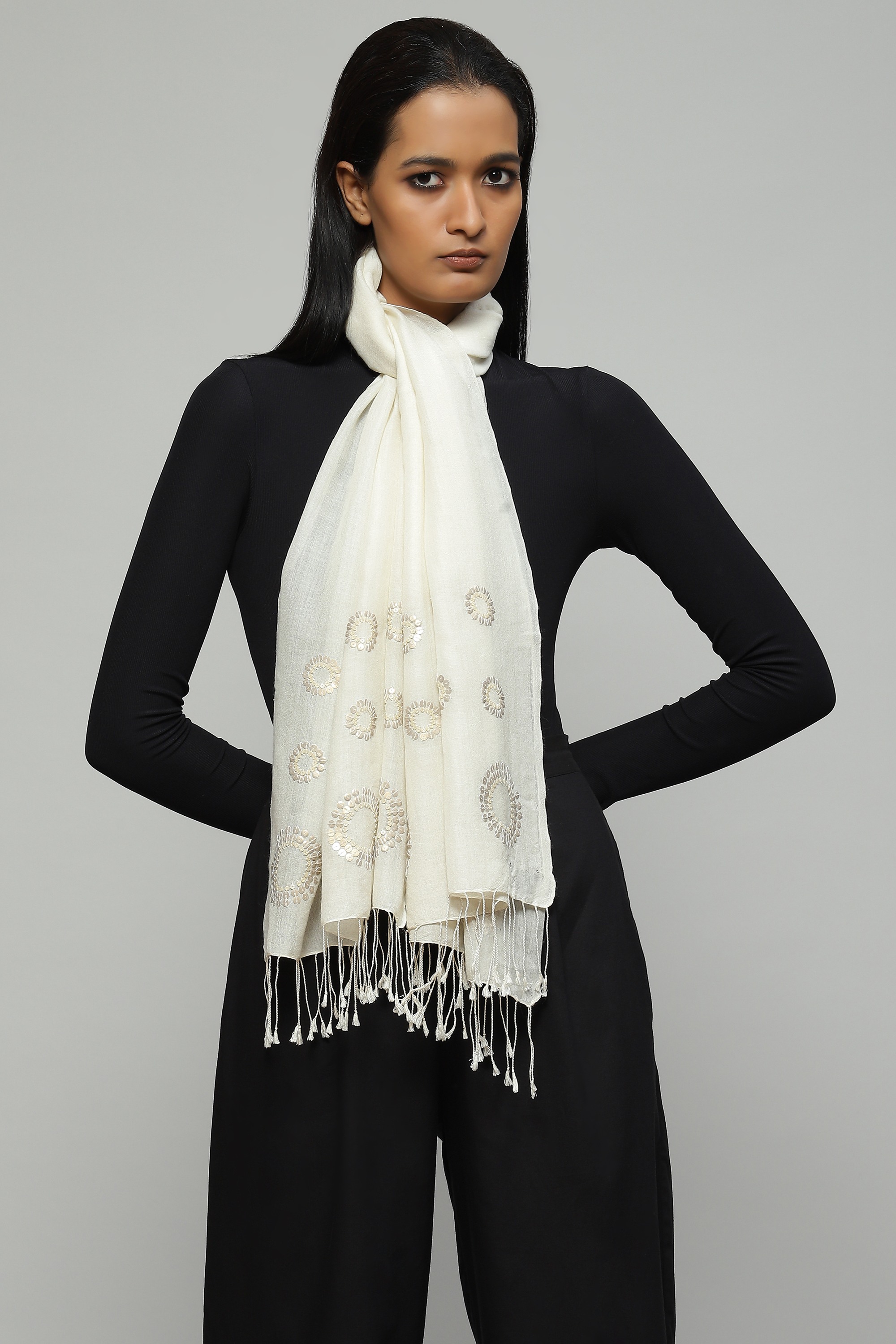 Sequinned Silk Wool Scarf Ivory