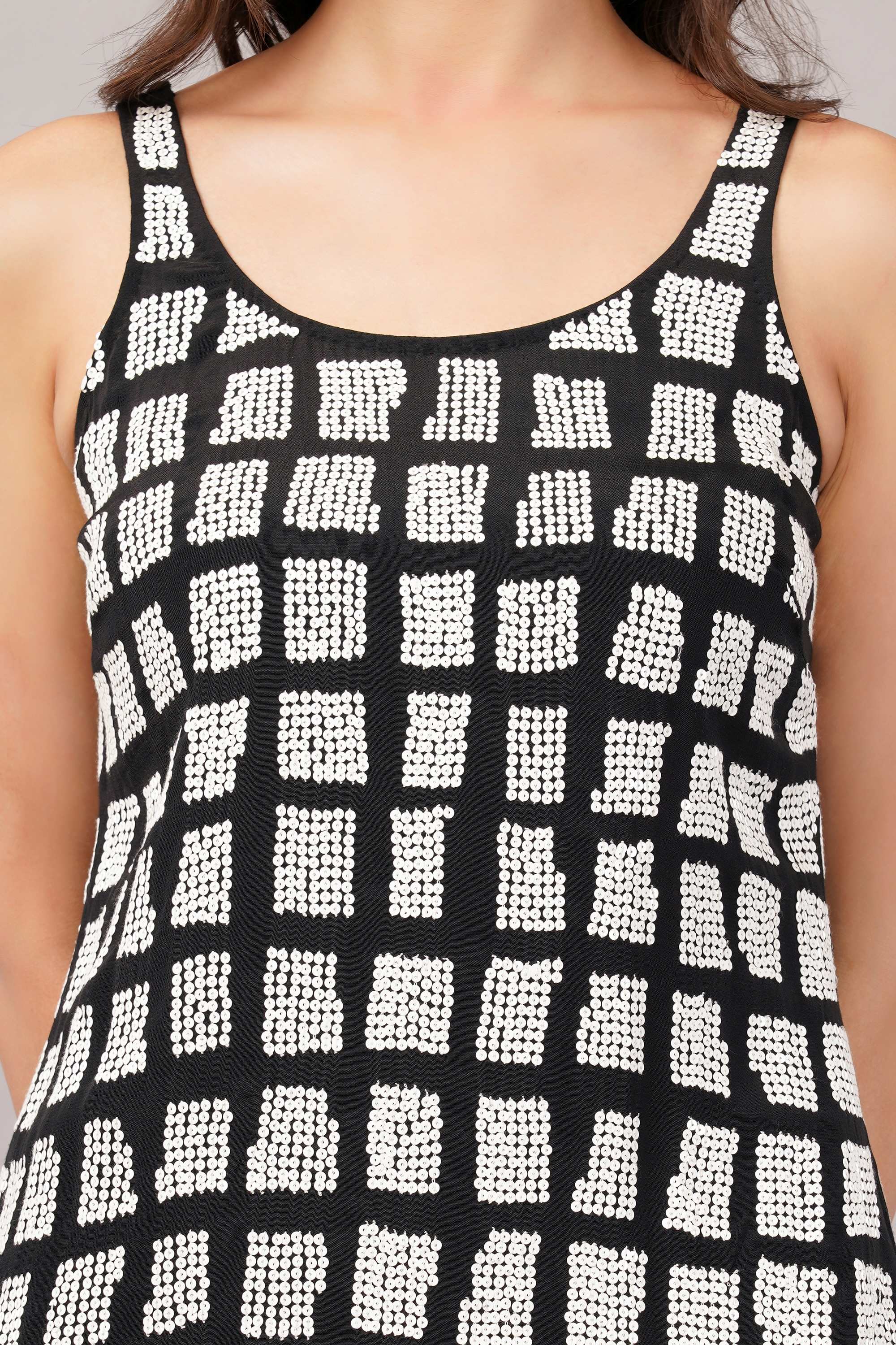 This limited edition piece has been made using a crepe fabric which has been hand embroidered with an all over sequinned mosaic pattern . Ideal to sparkle in for the evening.