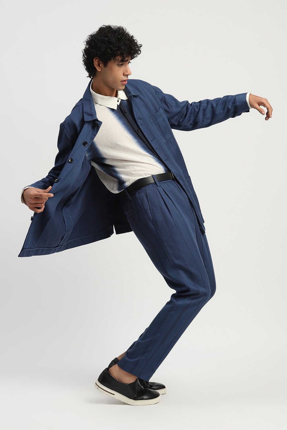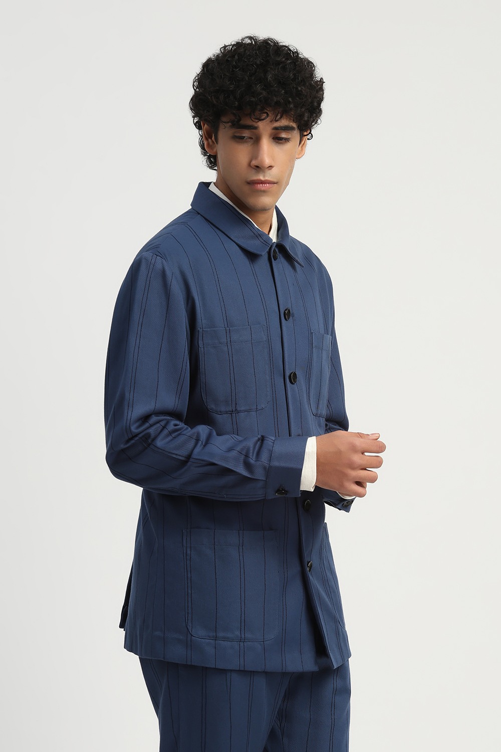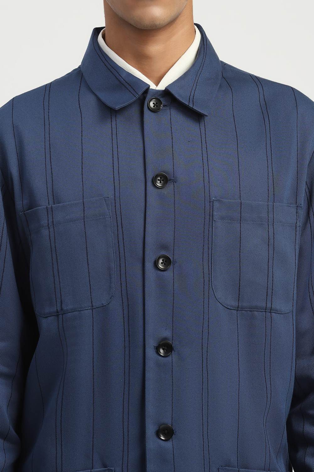 Home / Products / Jackets / ABRAHAM AND THAKORE / Shaded Aari Stripes Shirt Jacket Indigo