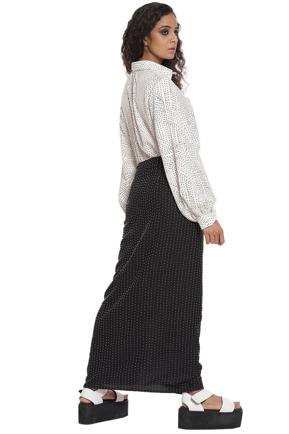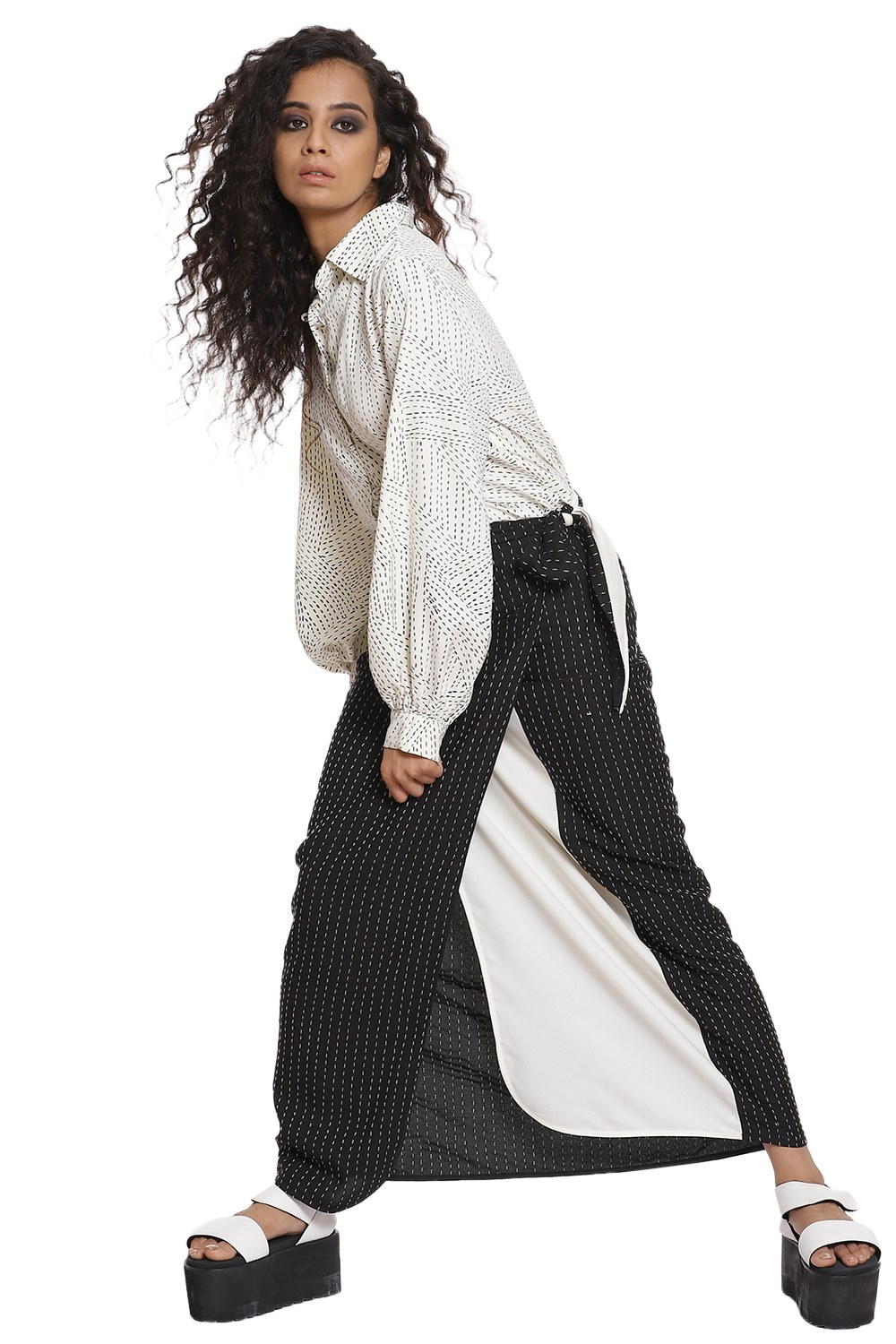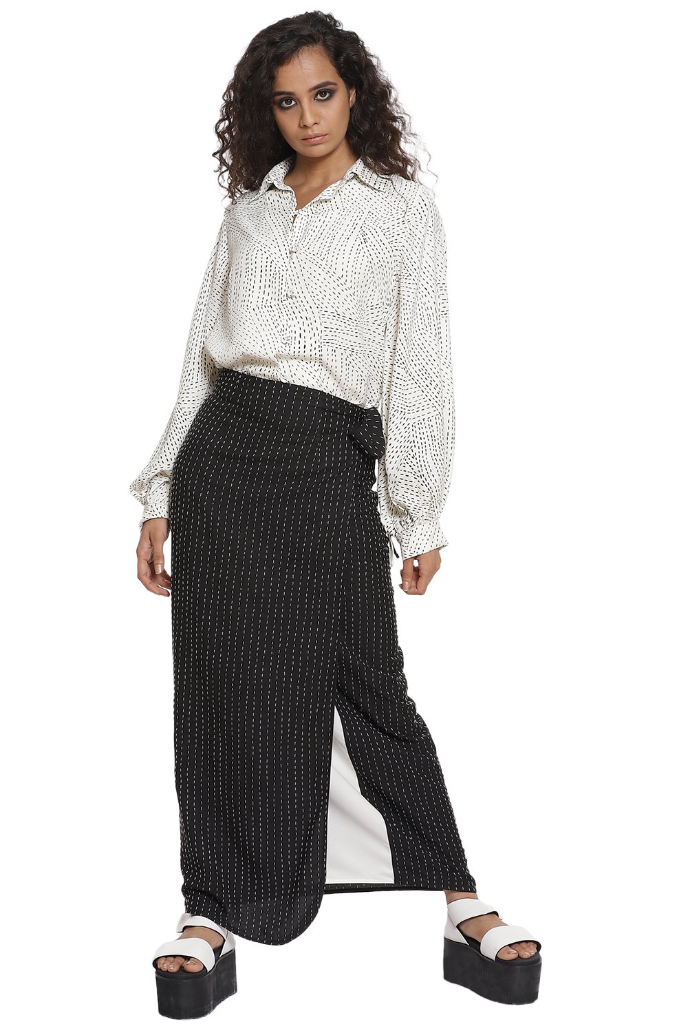 Shirt and wrap skirt coordinate set White & Black