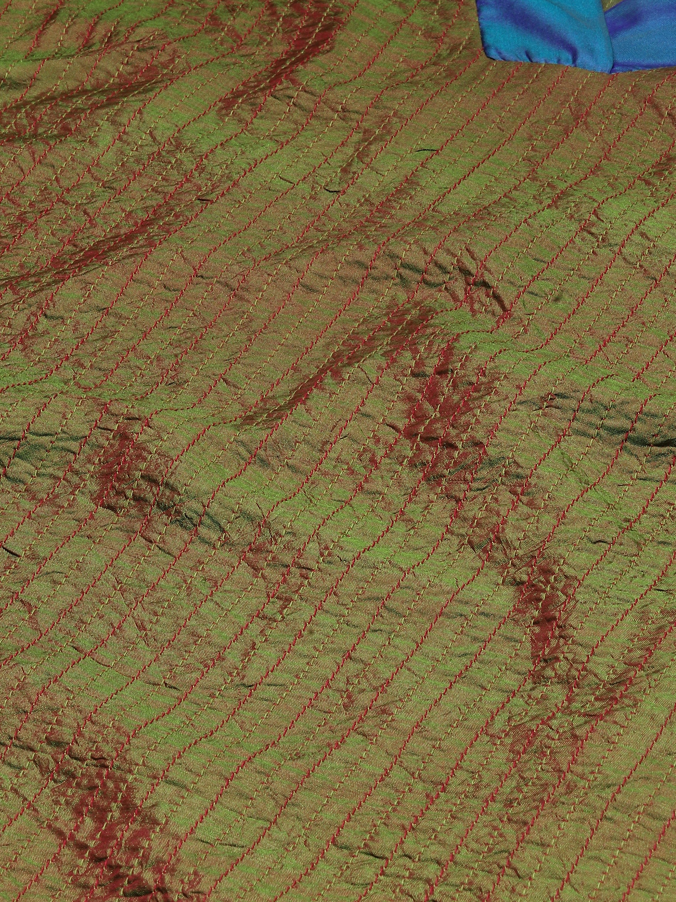 A green dress in an iridiscent shot silk.