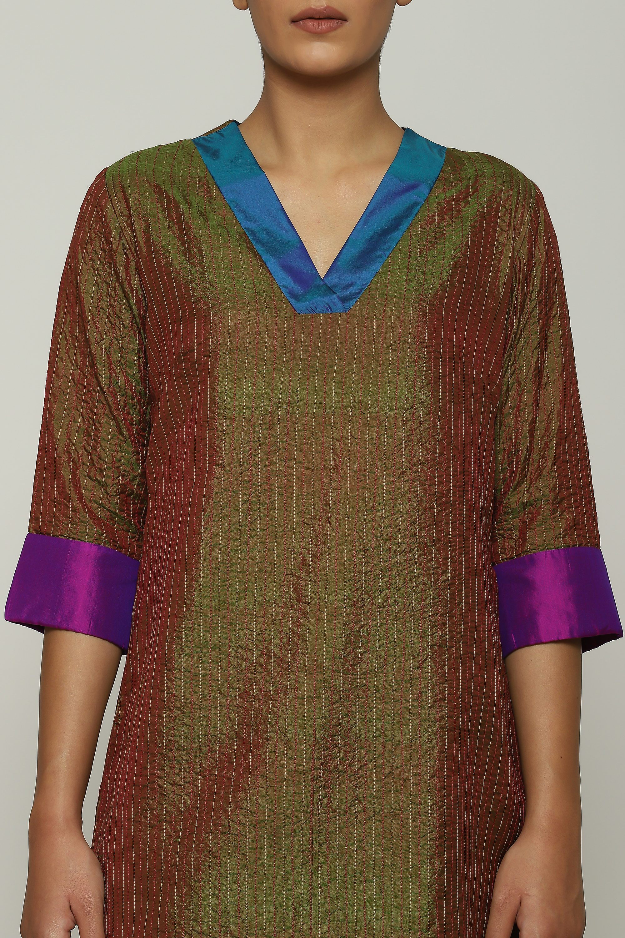 Embellishment Description : Running stitch runs through the entire length of the garment.