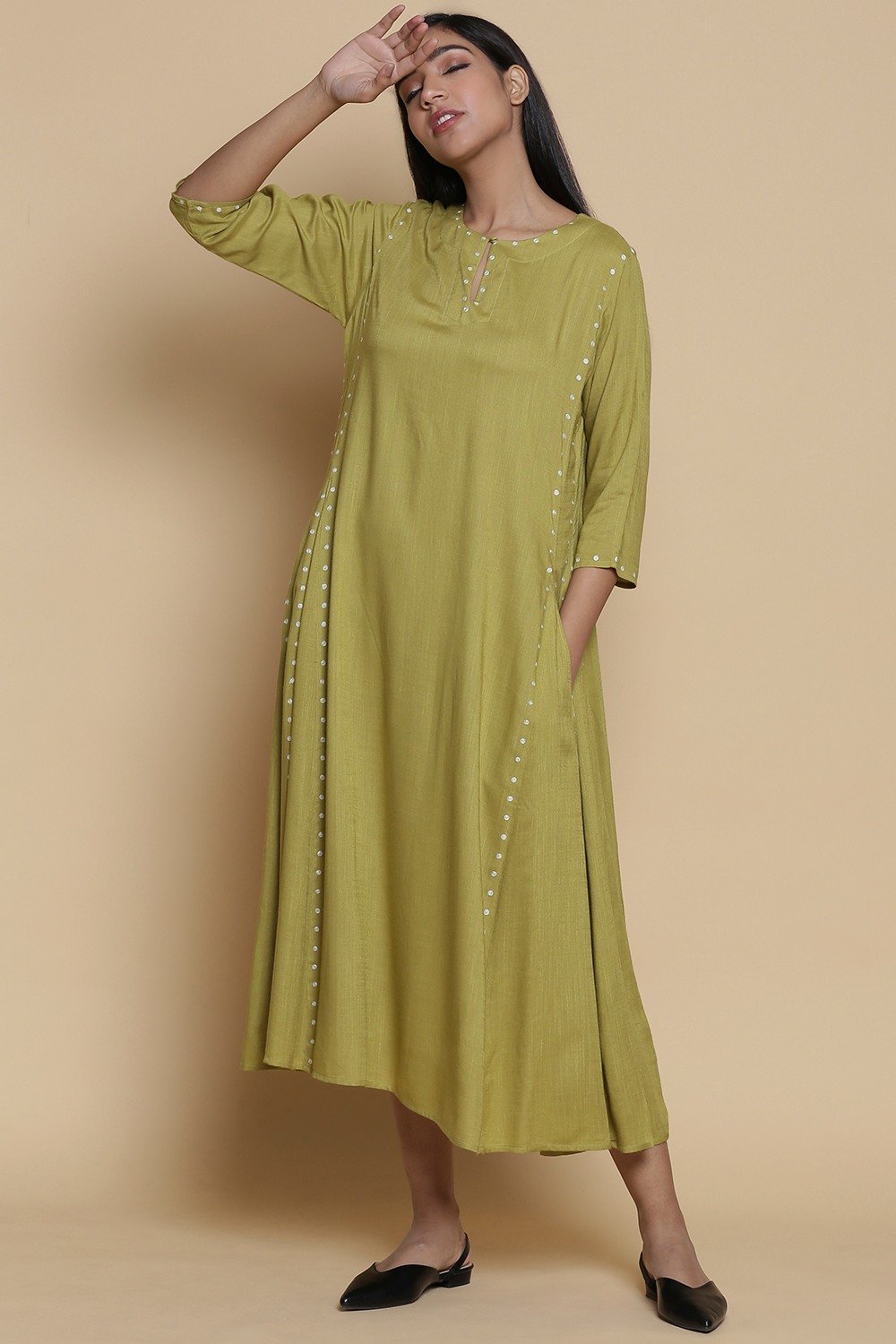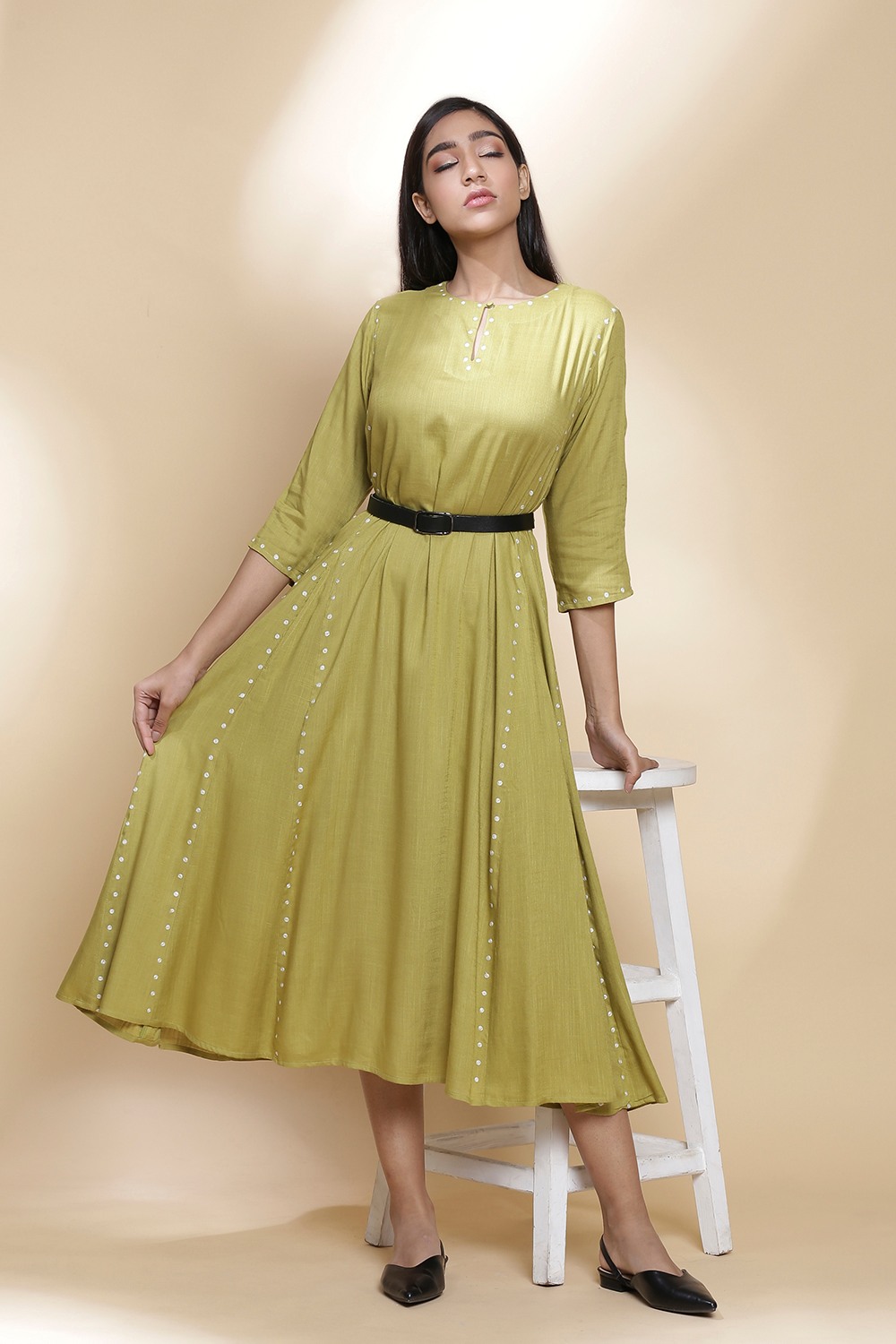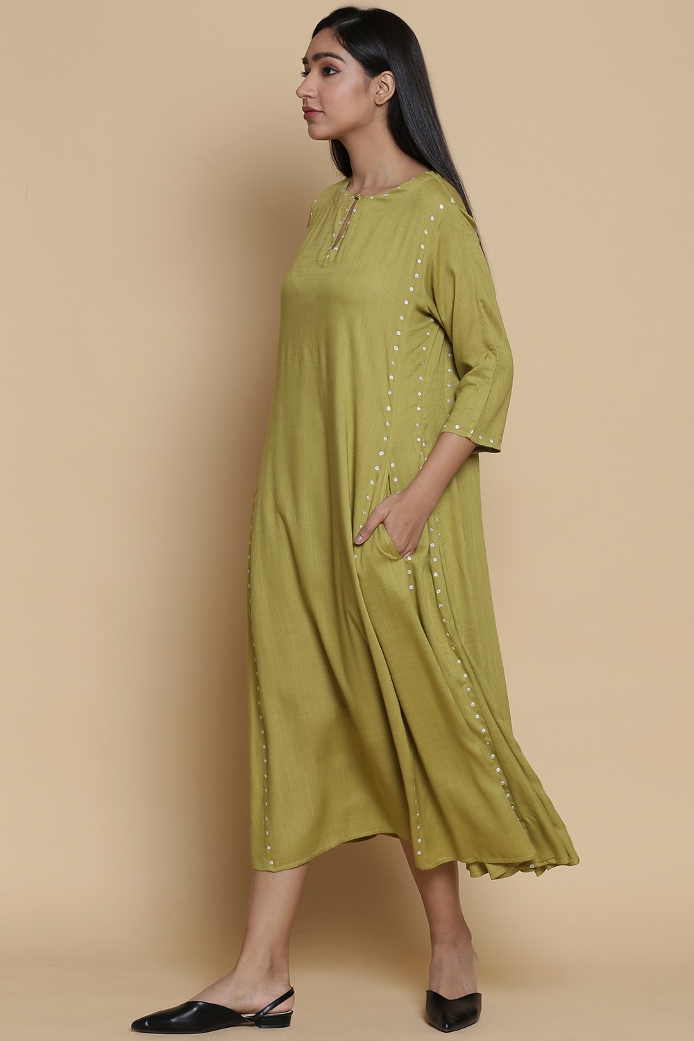 Side Dot embroidery long kali Dress
