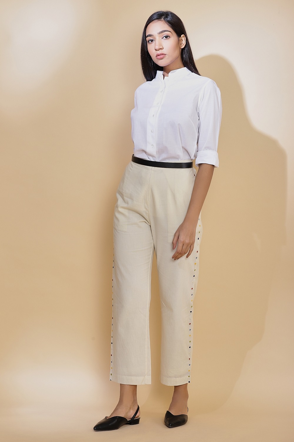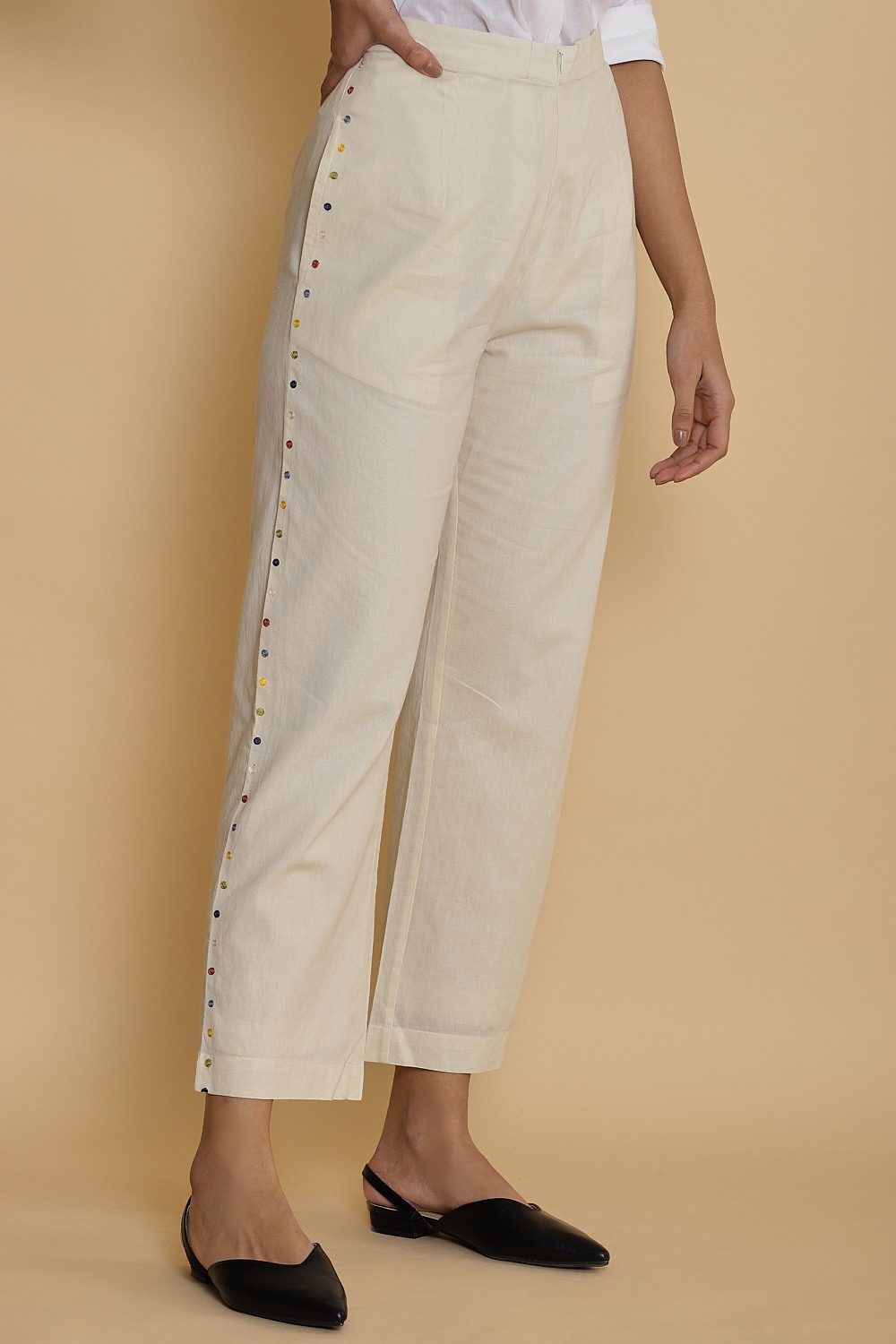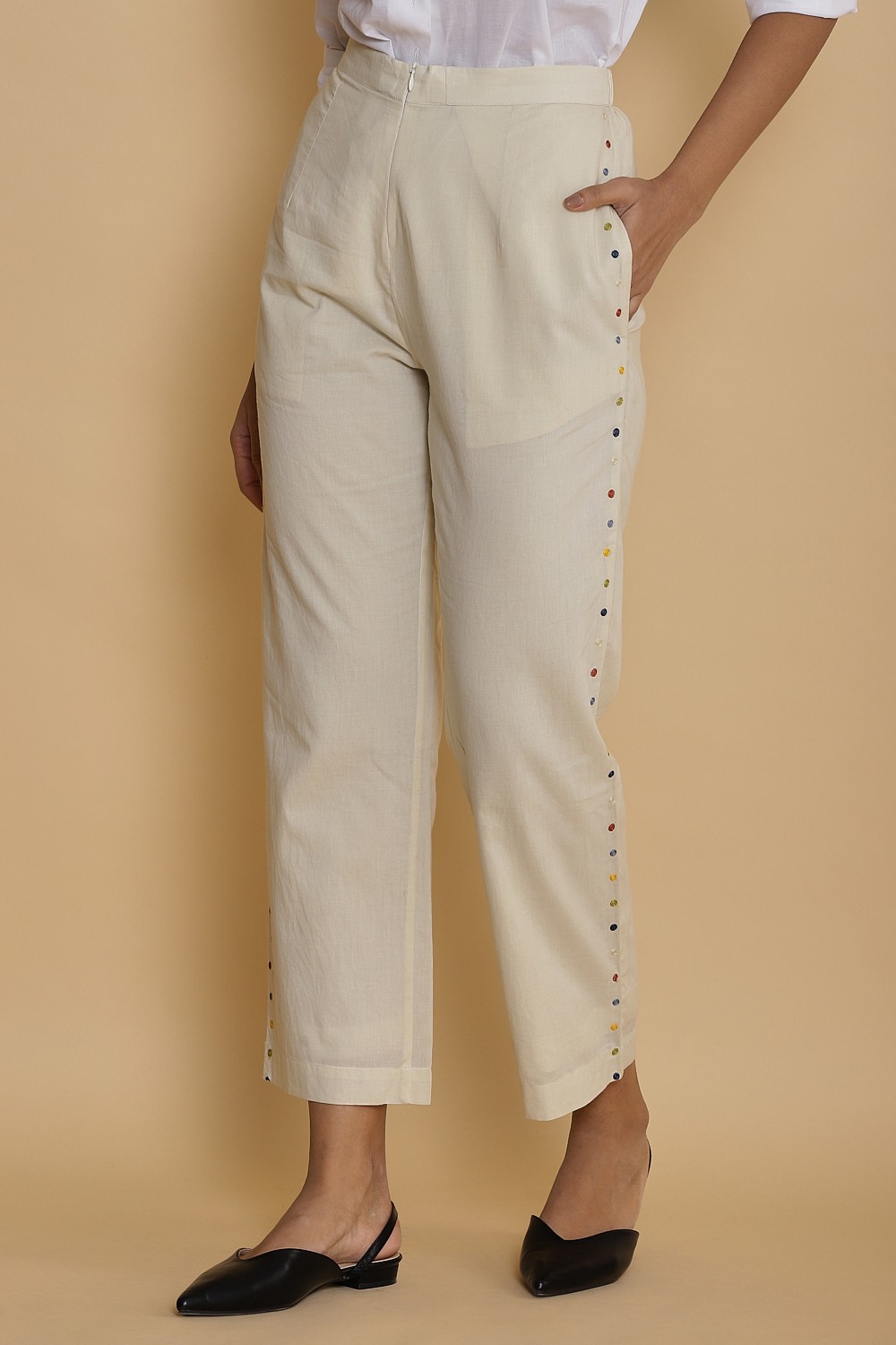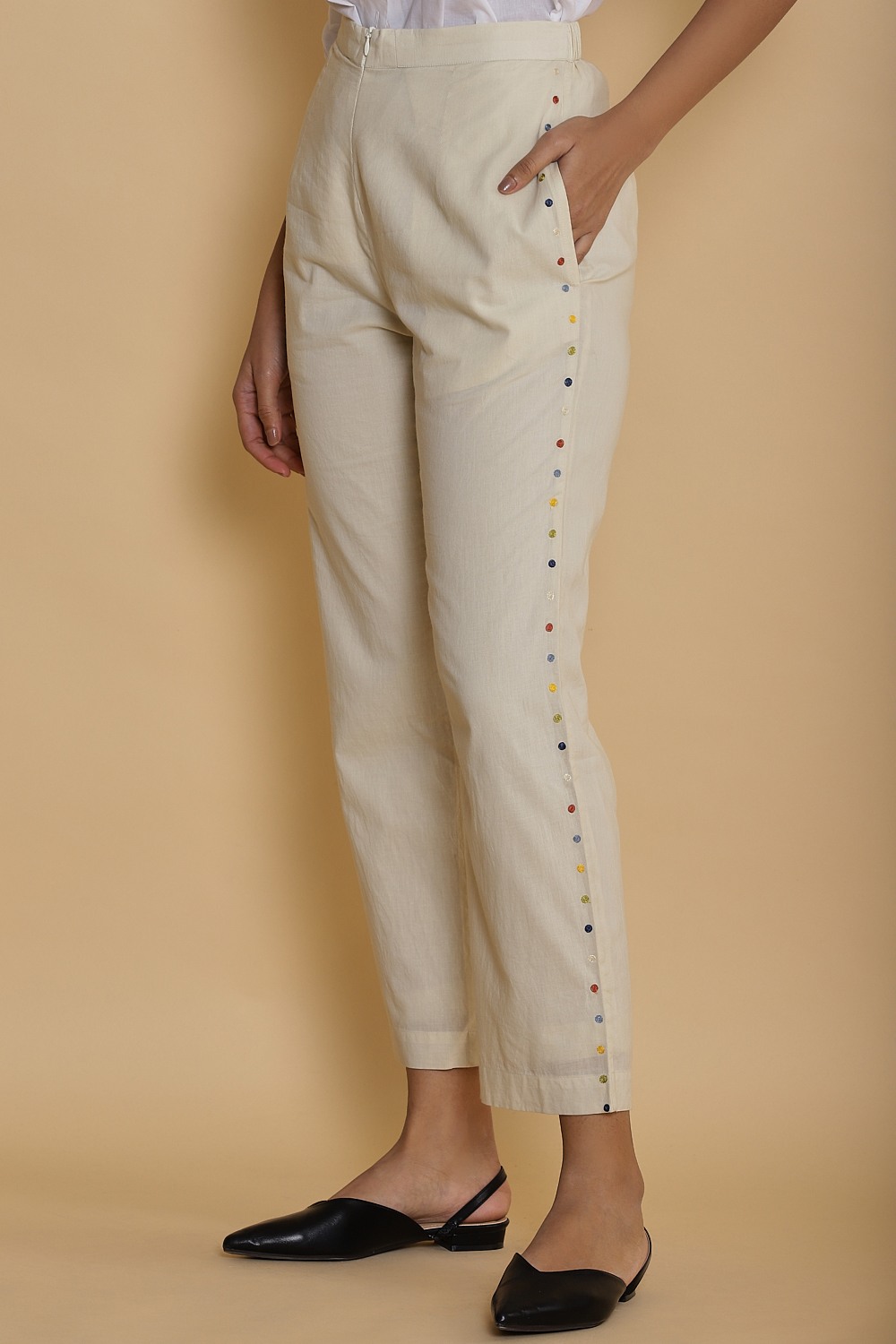 Side Dot Embroidered Cotton Pant