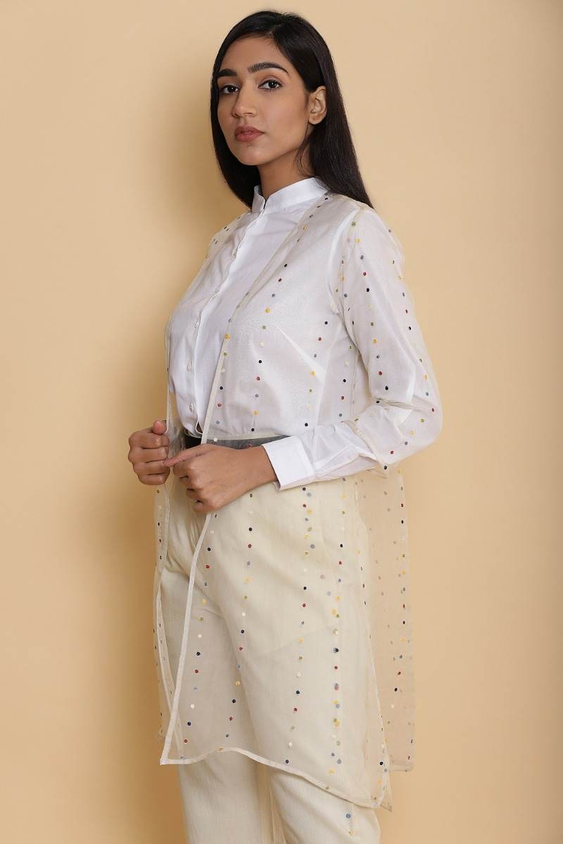 Silk Organza With Multicolor Dot Embroidery Jacket