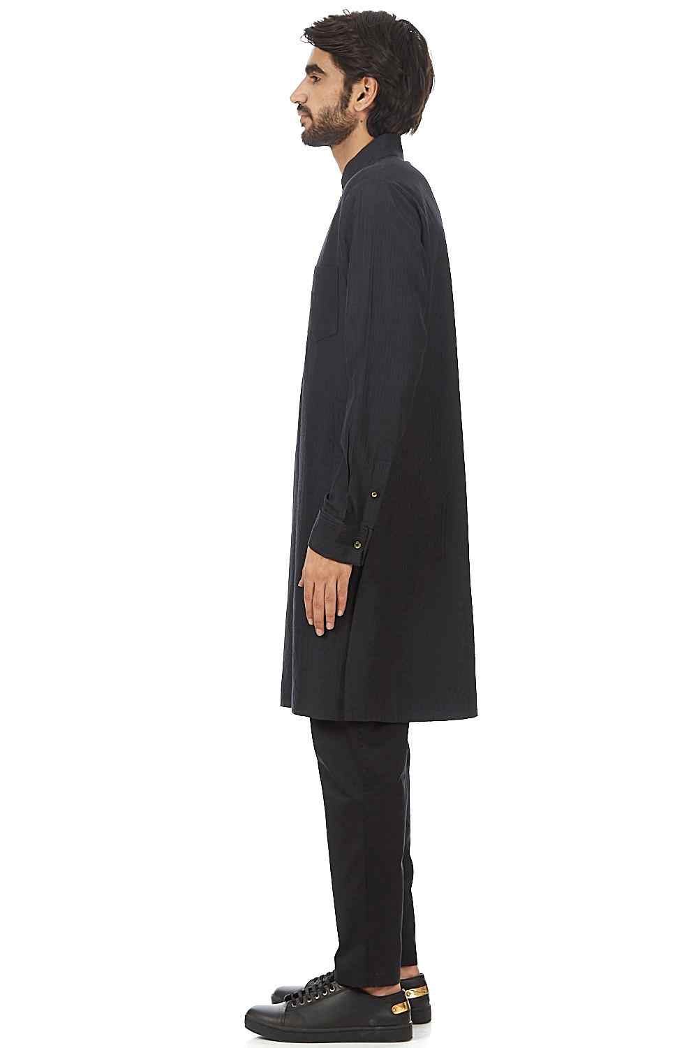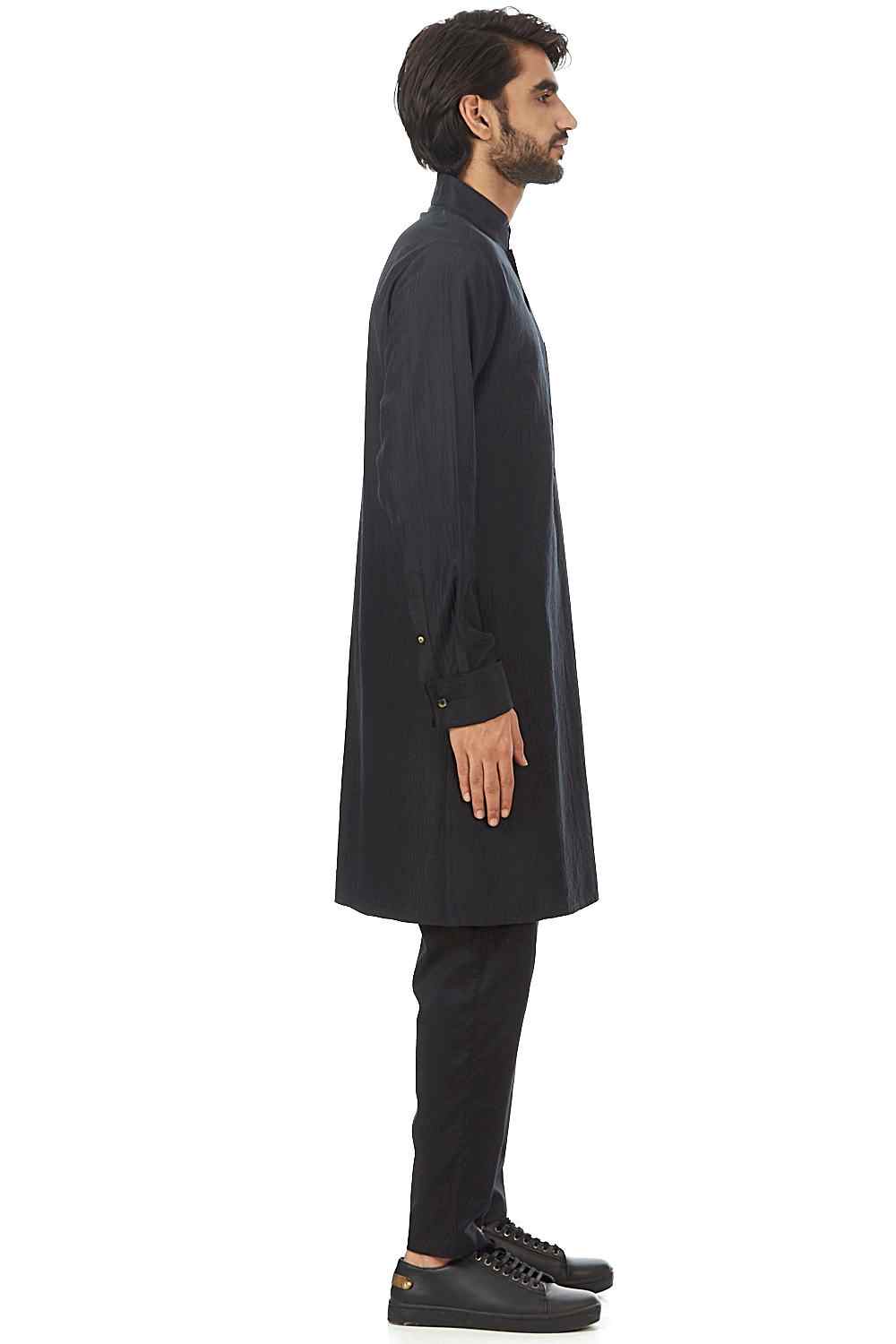Long Kurta. Crafted In Lightweight Fabric With All Over Two Layer Silk X Cotton Close Quilting. Features Nehru Collar And Bespoke Tone-On-Tone Quilting