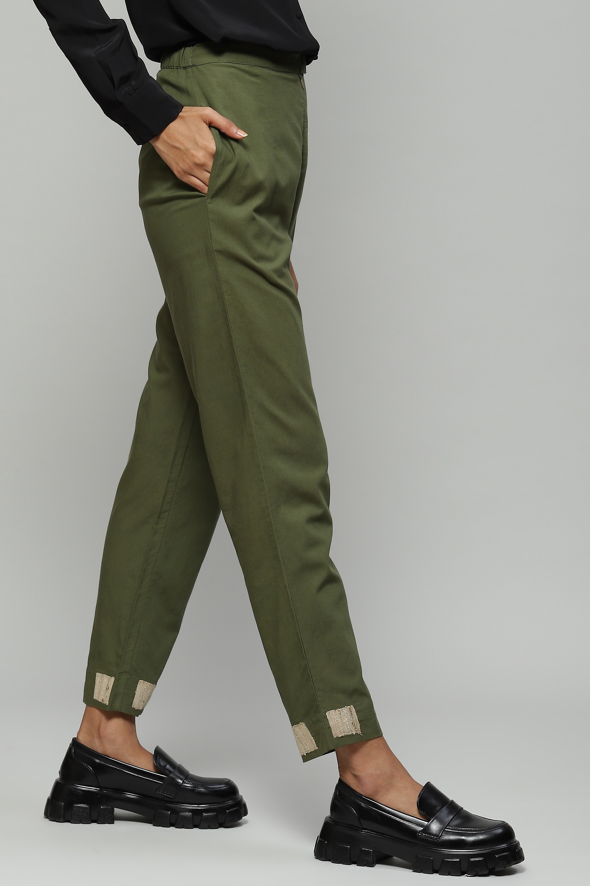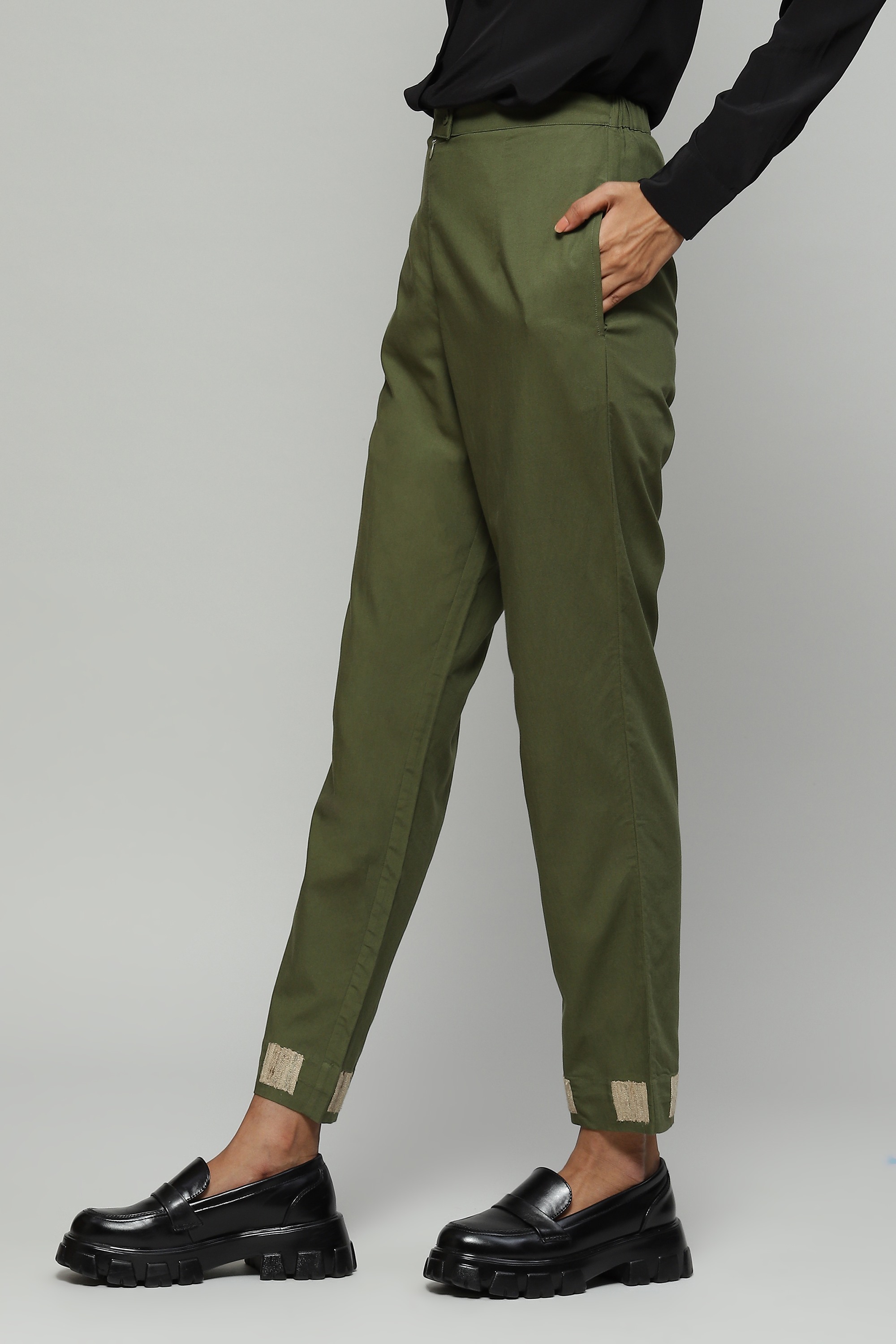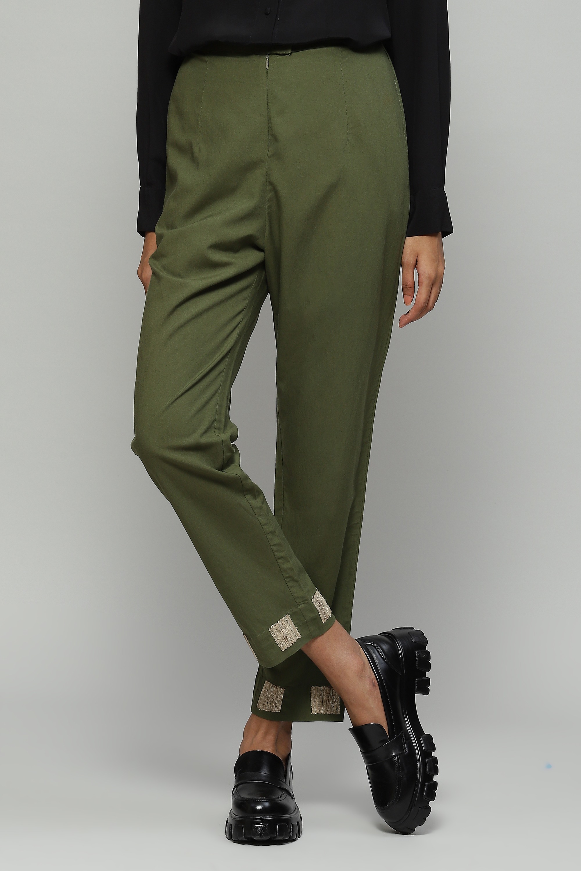 Straight-legged trousers in seagrass featuring embroidered checks at the hem