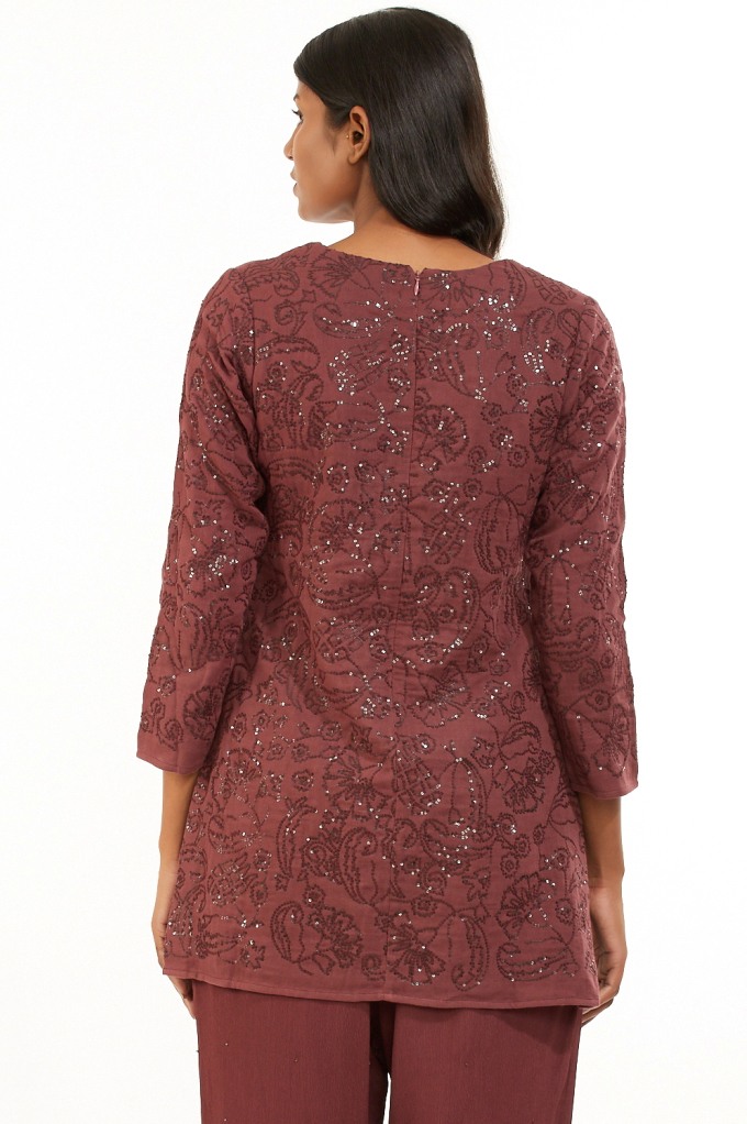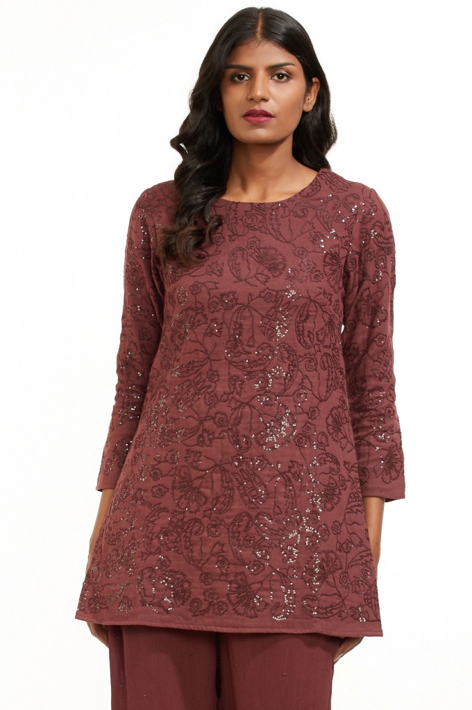 Sitara Hand Embroidered Sequined Short Tunic Wine