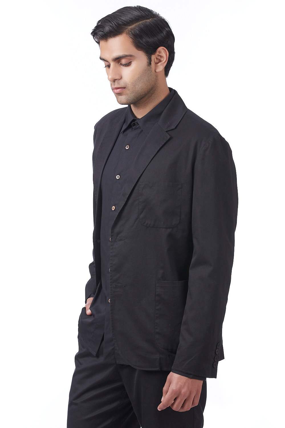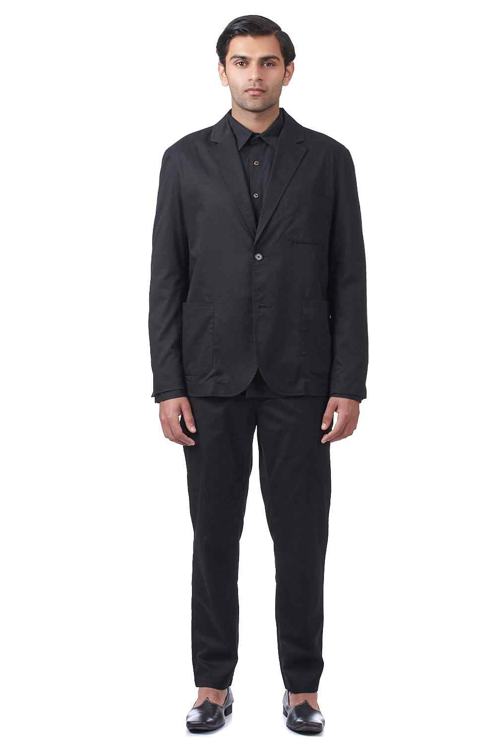 The Solid Cotton Gabardine Classic Jacket in Black by ABRAHAM AND THAKORE is a timeless and versatile piece that every man should have in his wardrobe. Made from high-quality Cotton Gabardine material, this jacket is not only durable but also breathable and comfortable to wear.