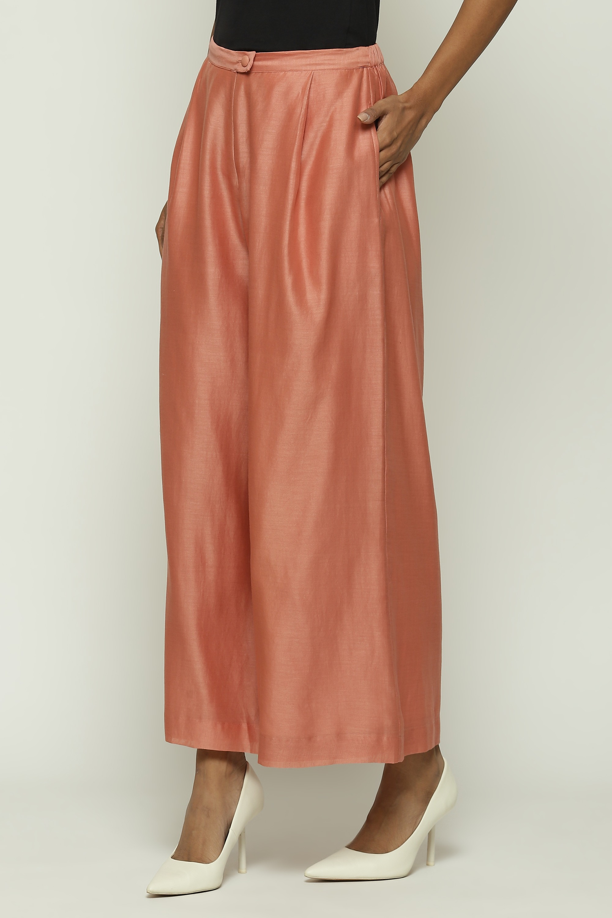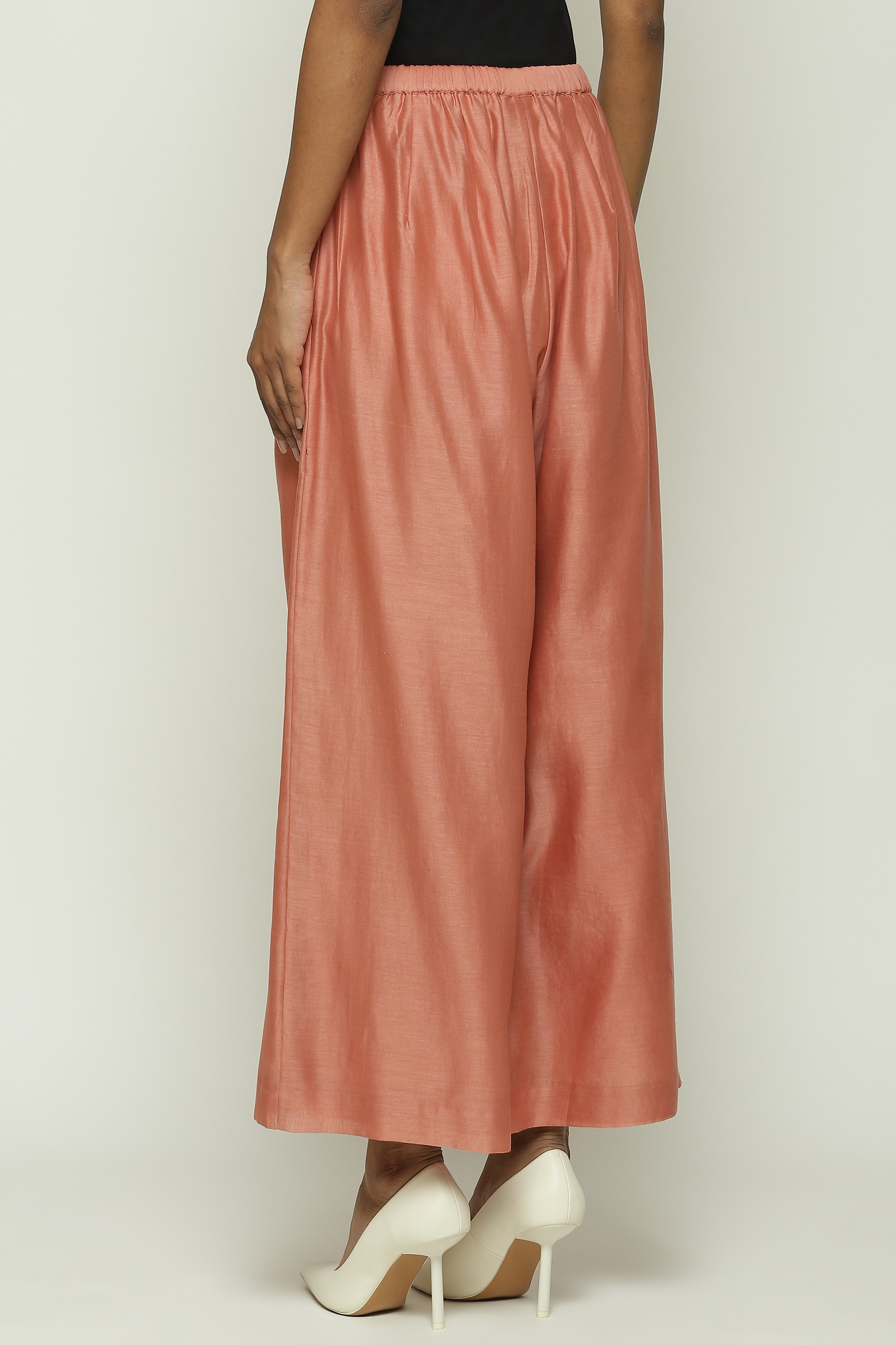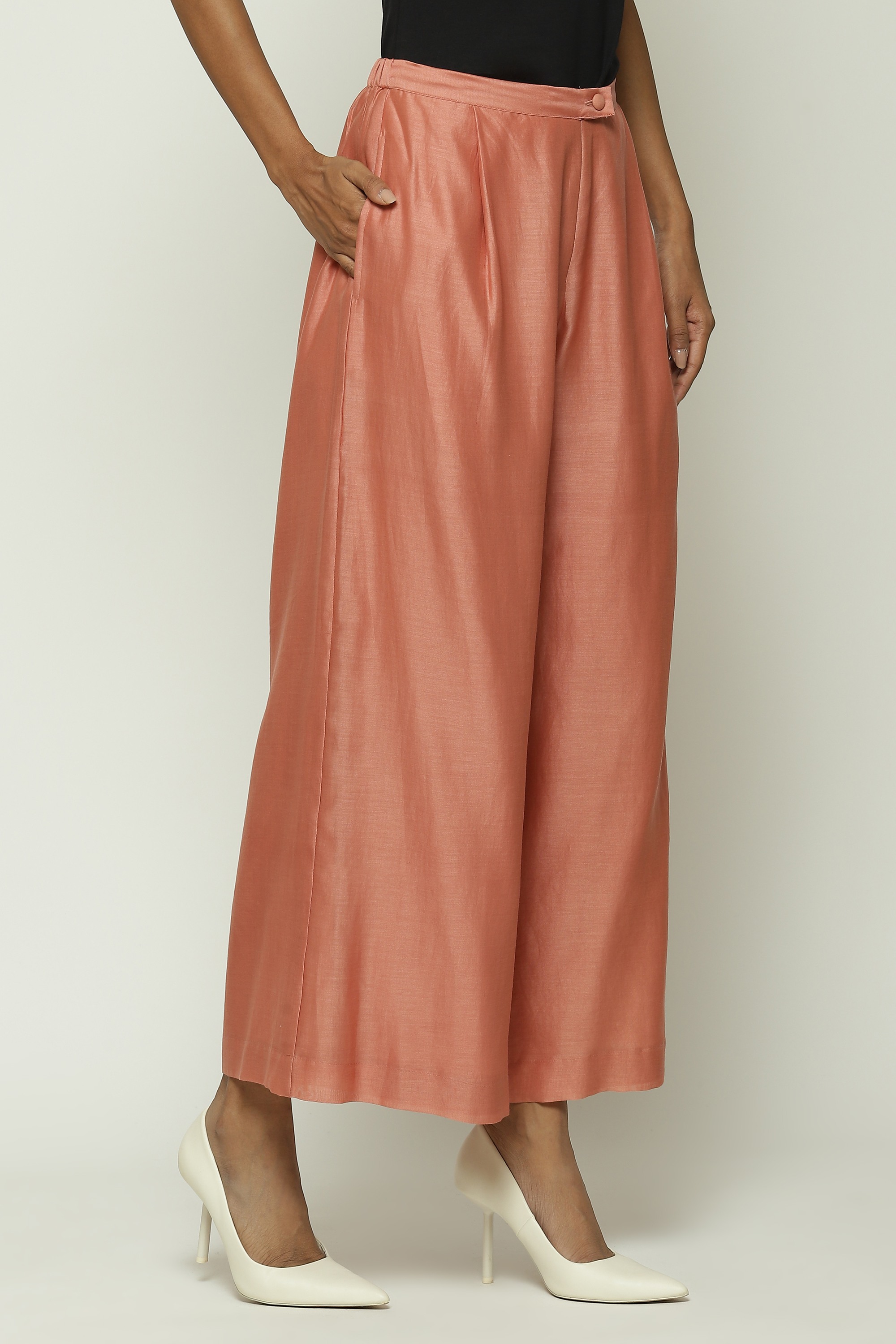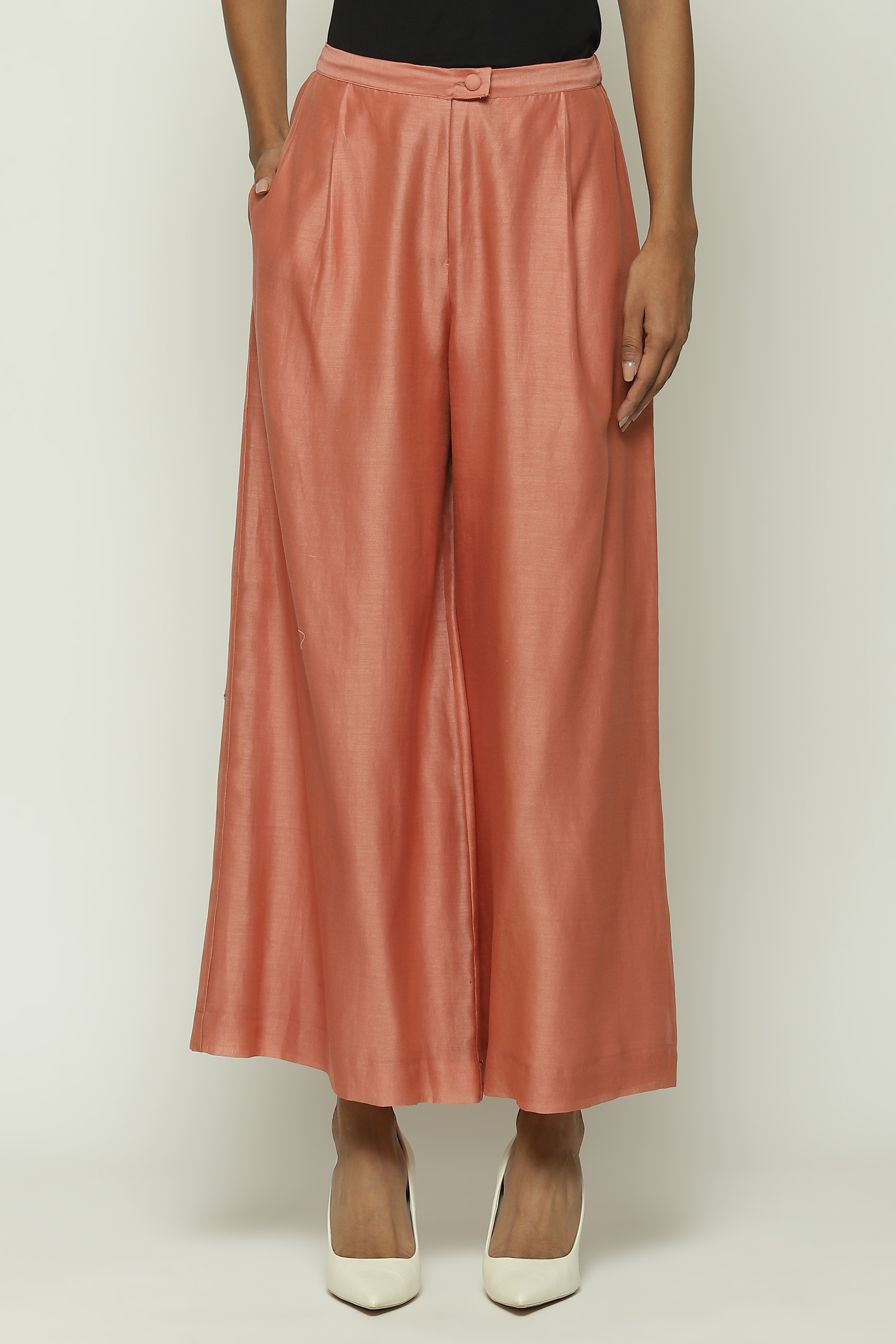 A pair of redwood pants with palazzo legs.