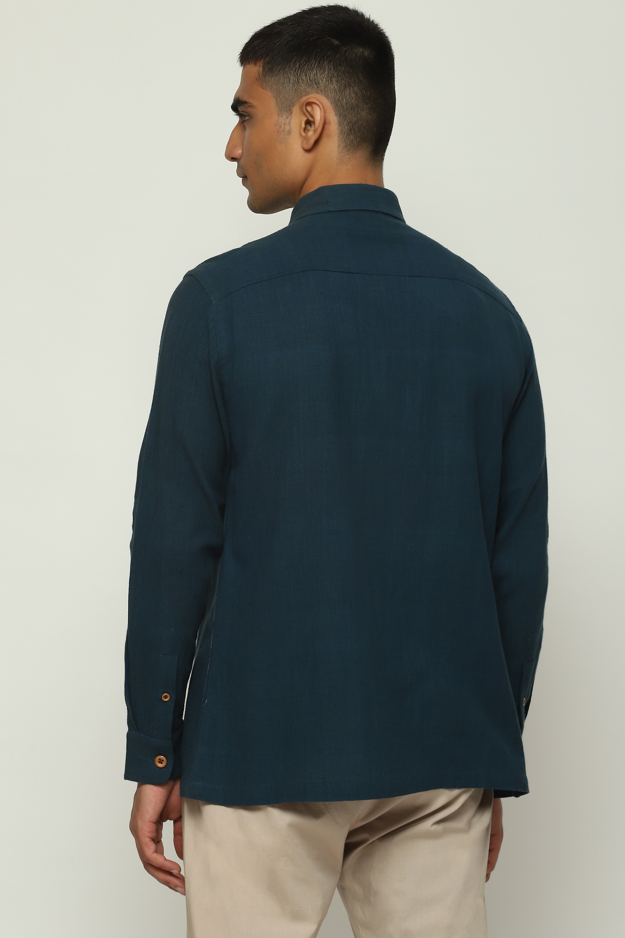Crafted in durable cotton twill, this jacket features accents pleated by hand prior to being stitched.