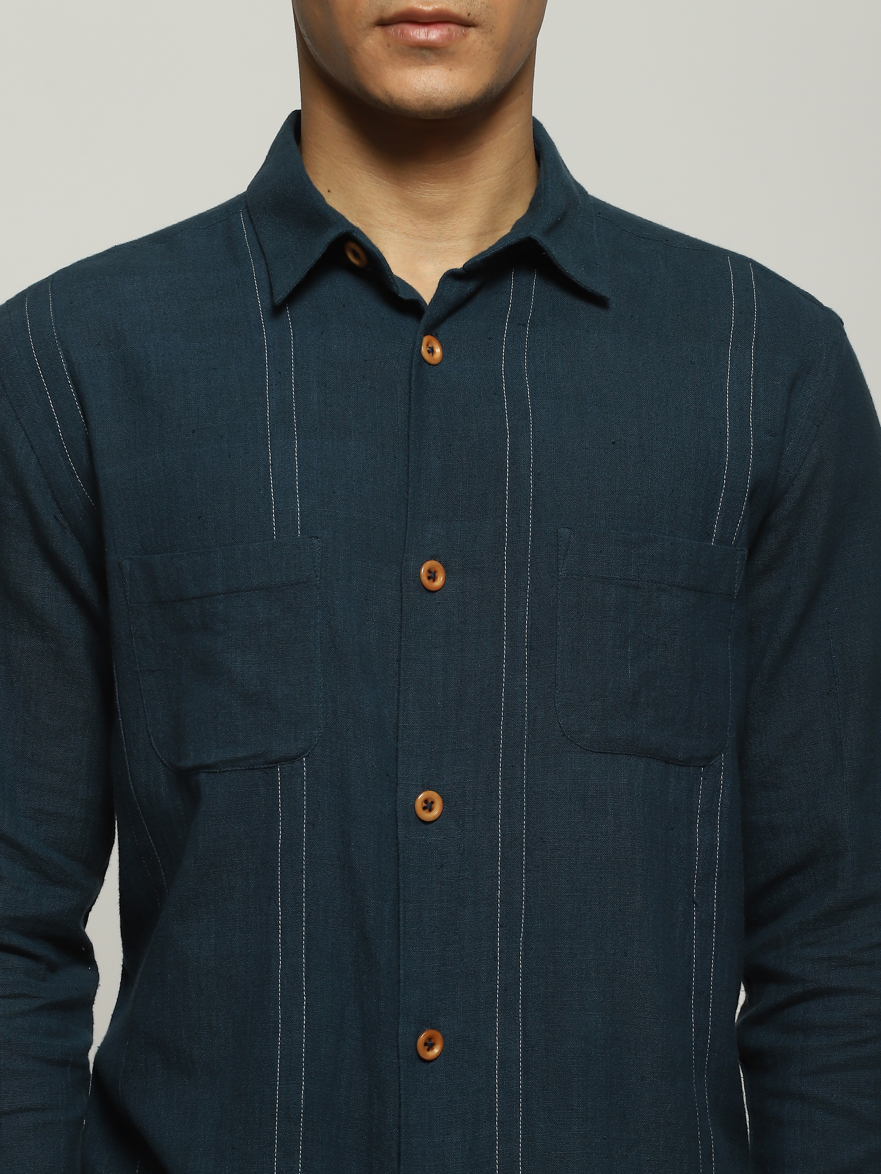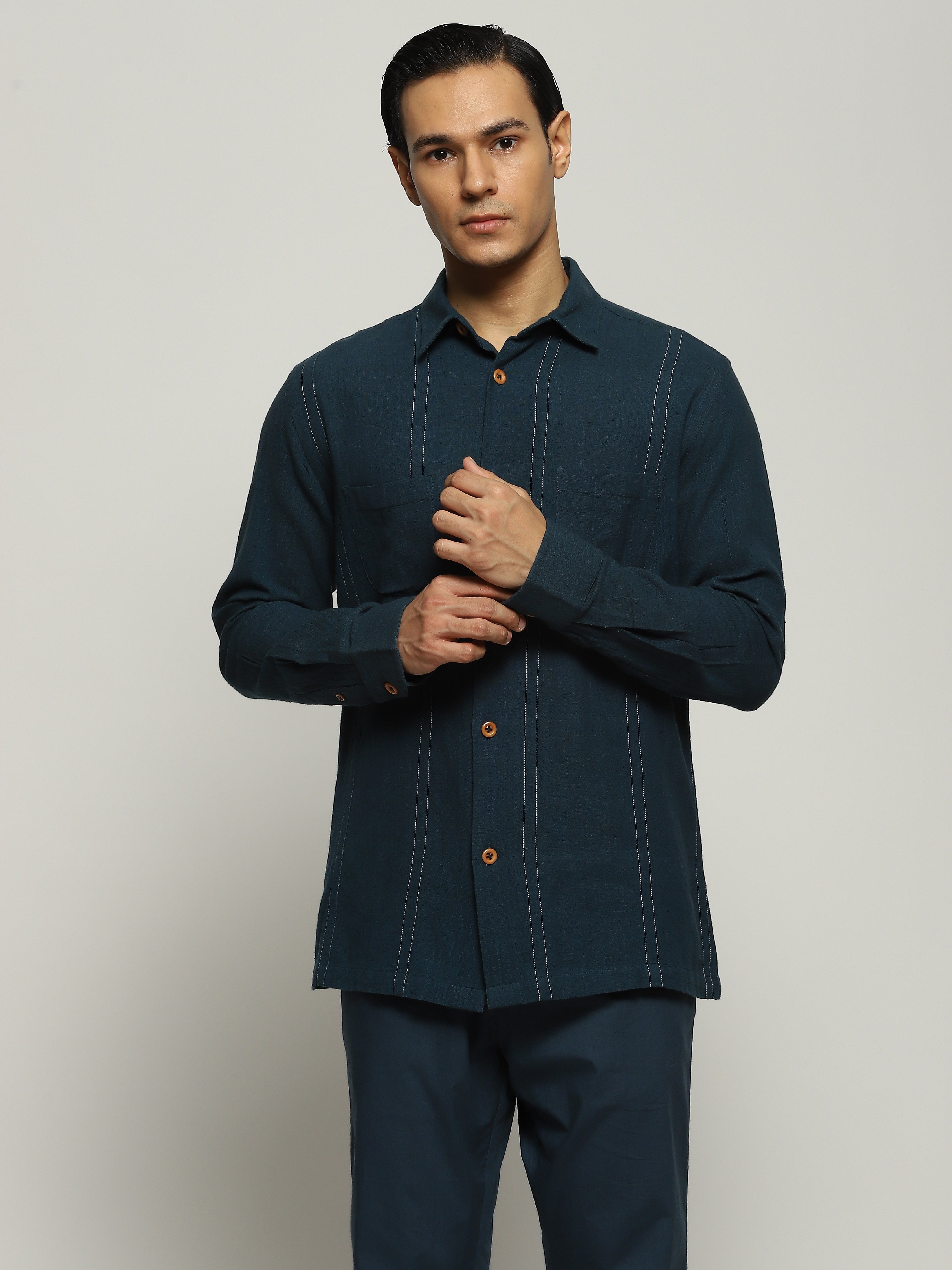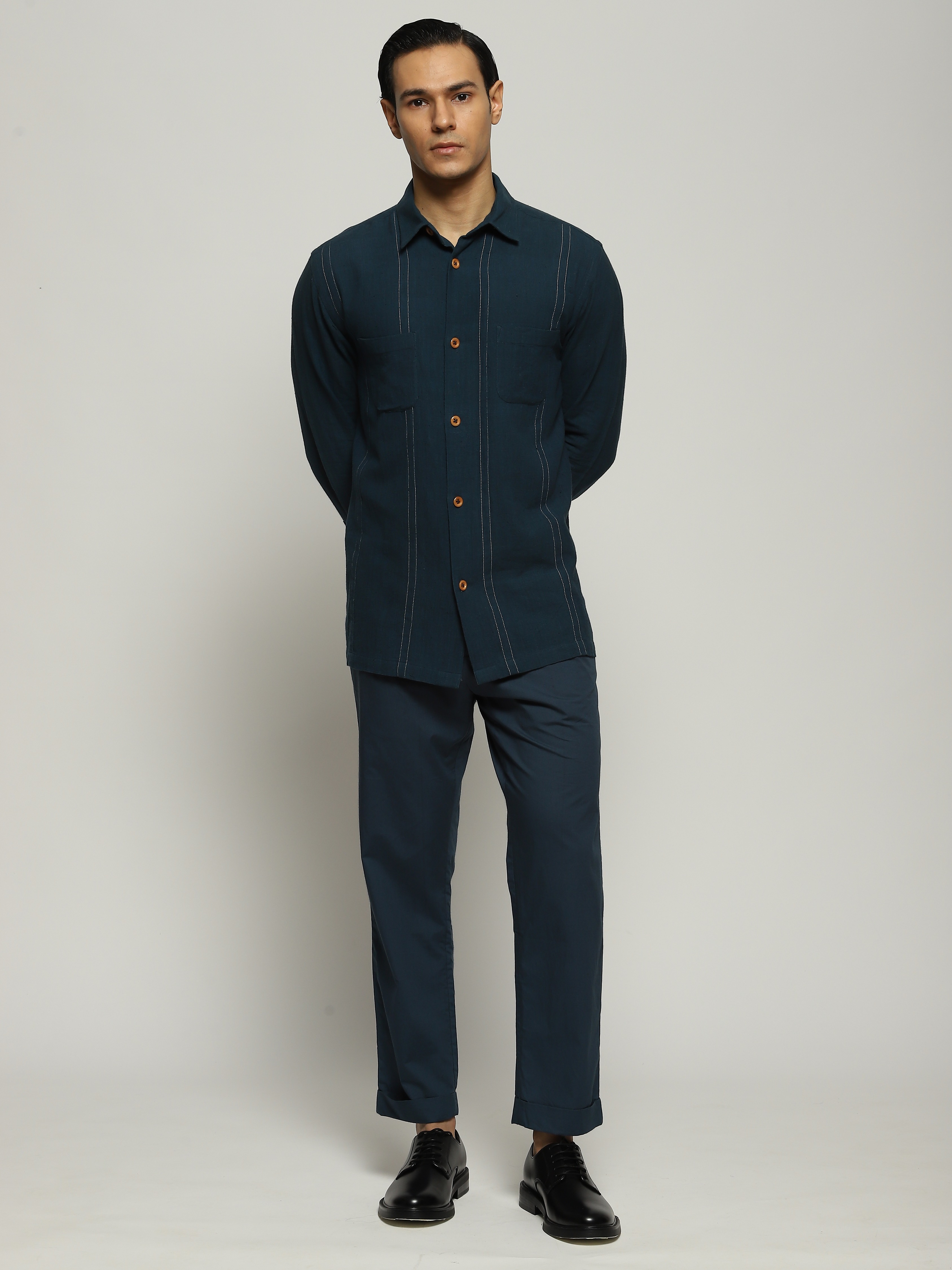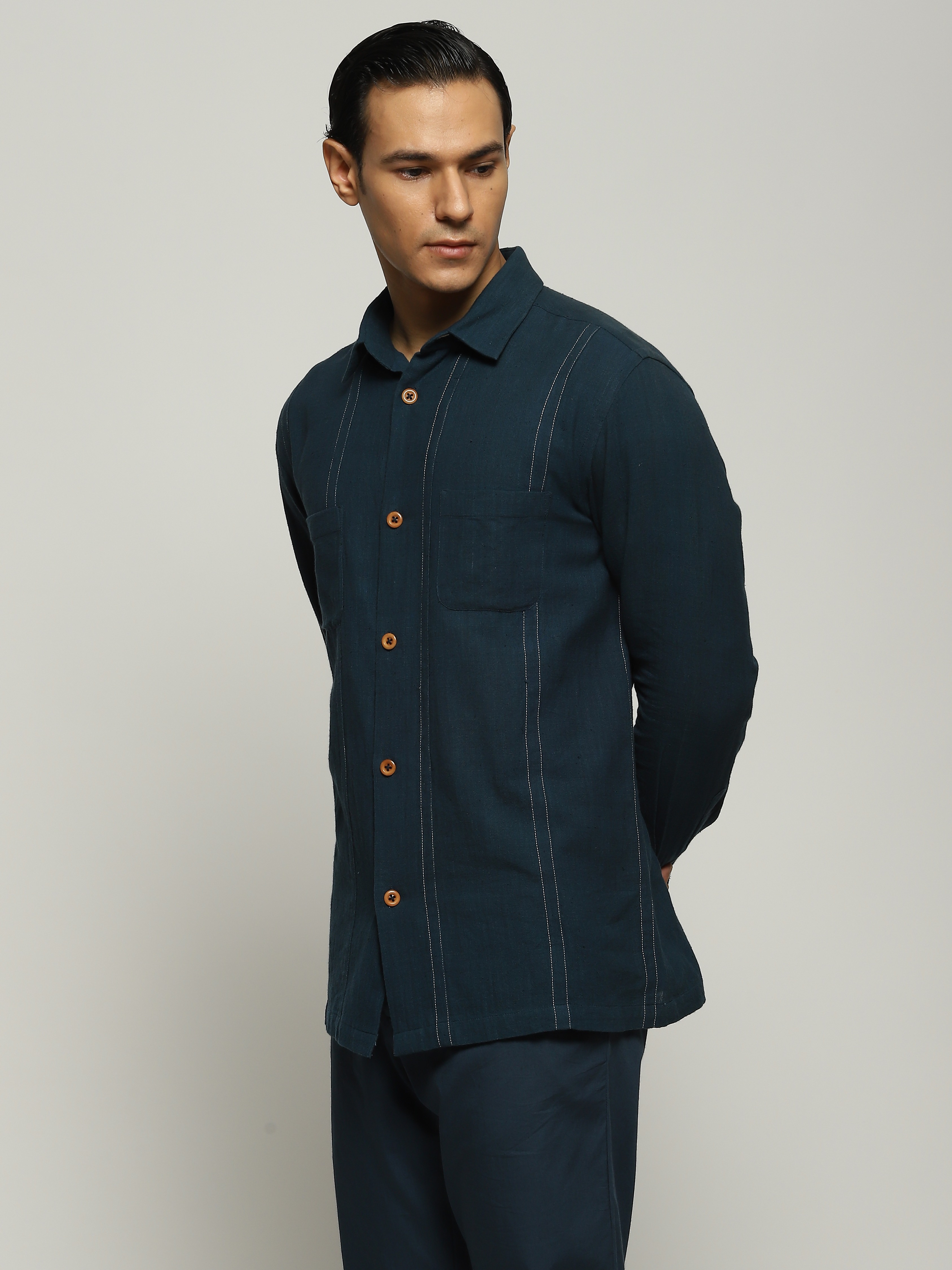 Crafted in durable cotton twill, this jacket features accents pleated by hand prior to being stitched.