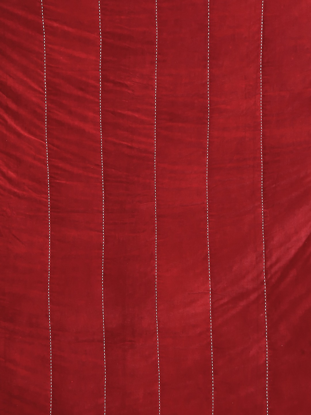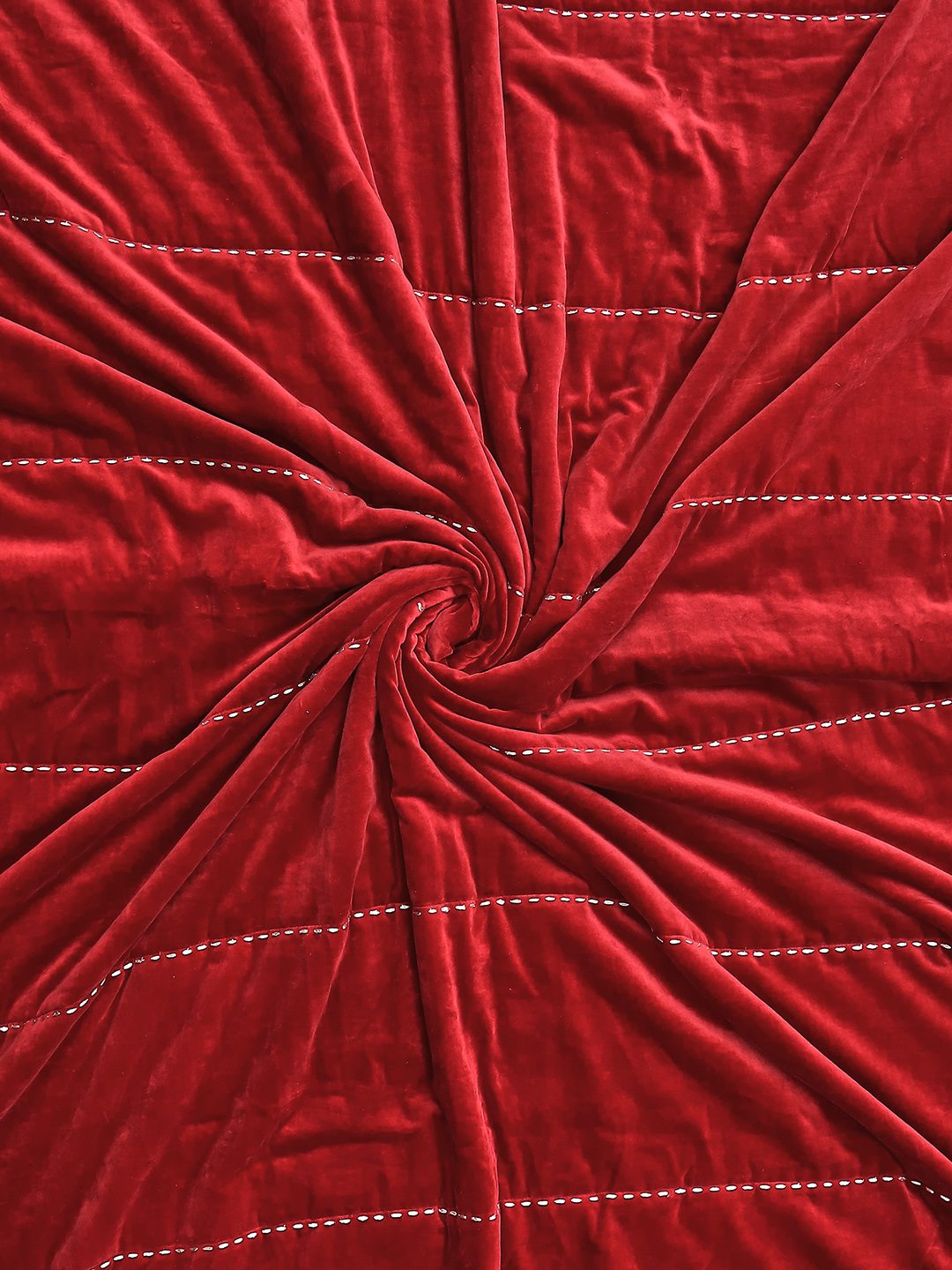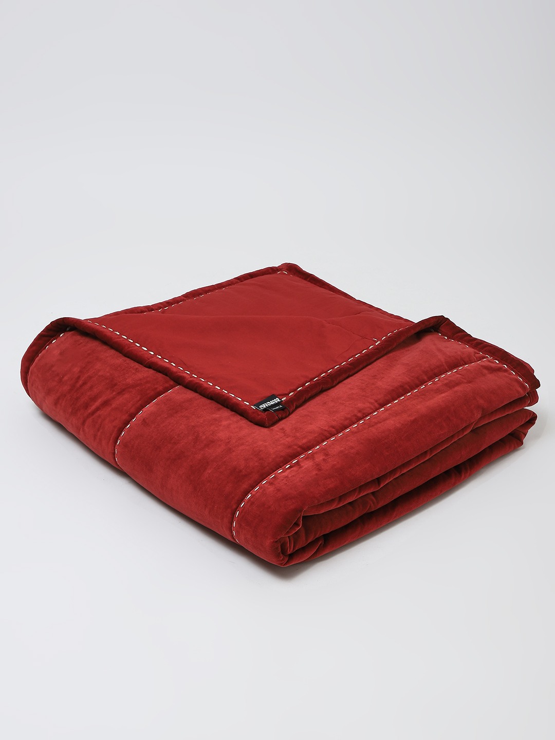 THIS SPECIAL PIECE HAS BEEN MADE USING FINE COTTON VELVET WHICH HAS BEEN EMBROIDERED USING A STAB STITCH. A POLYESTER WADDING ADDS ANOTHER LAYER FOR WARMTH. A PRINTED REVERSE BACK ADDS A SPECIAL TOUCH AS WELL AS MAKES THE QUILT REVERSIBLE.