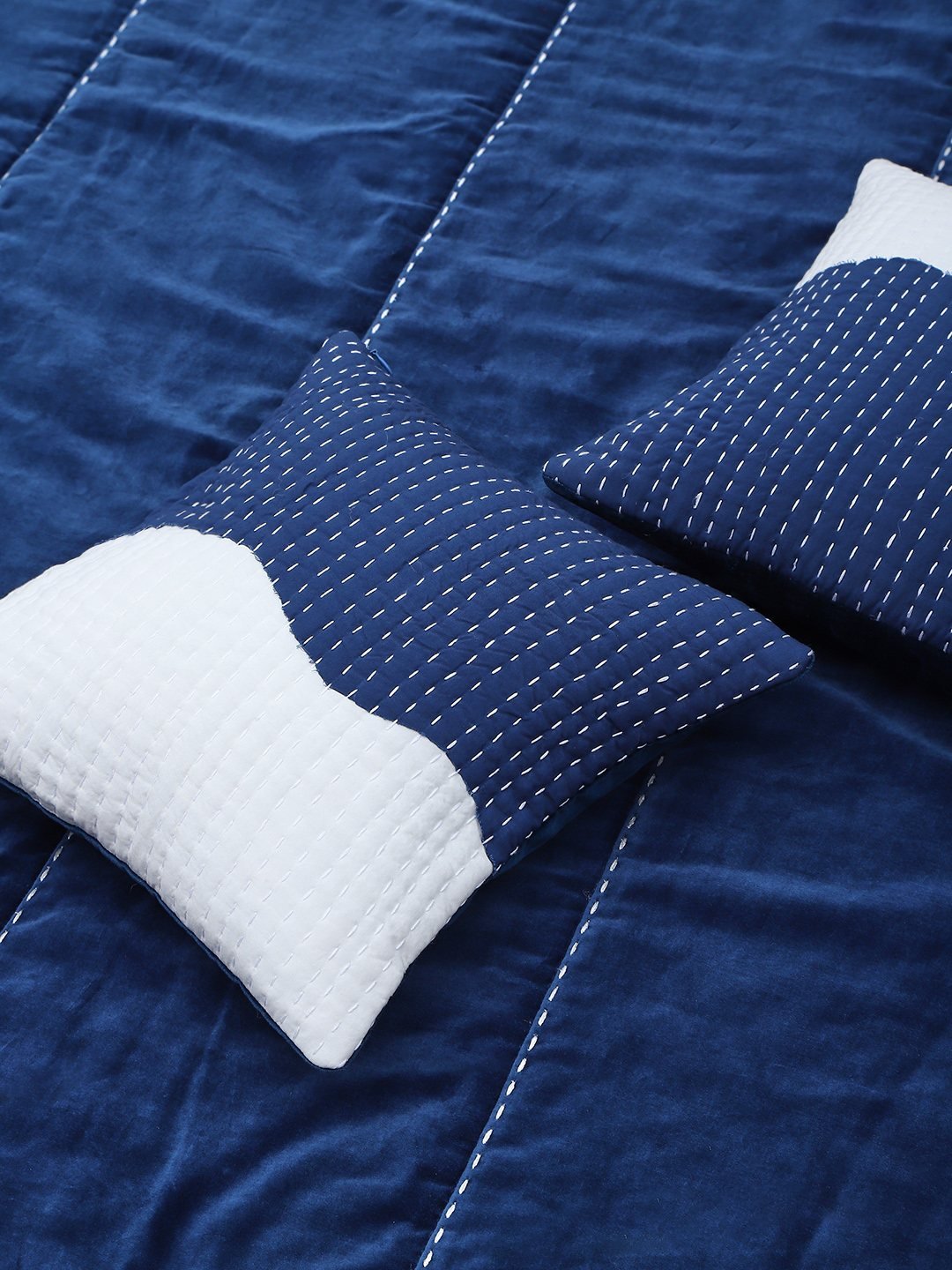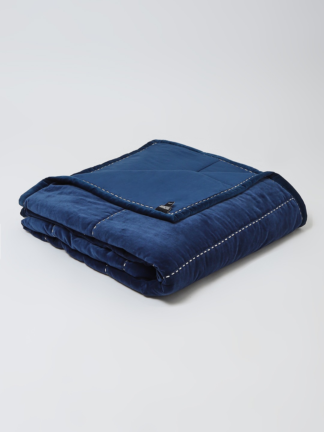 THIS SPECIAL PIECE HAS BEEN MADE USING FINE COTTON VELVET WHICH HAS BEEN EMBROIDERED USING A STAB STITCH. A POLYESTER WADDING ADDS ANOTHER LAYER FOR WARMTH. A PRINTED REVERSE BACK ADDS A SPECIAL TOUCH AS WELL AS MAKES THE QUILT REVERSIBLE.