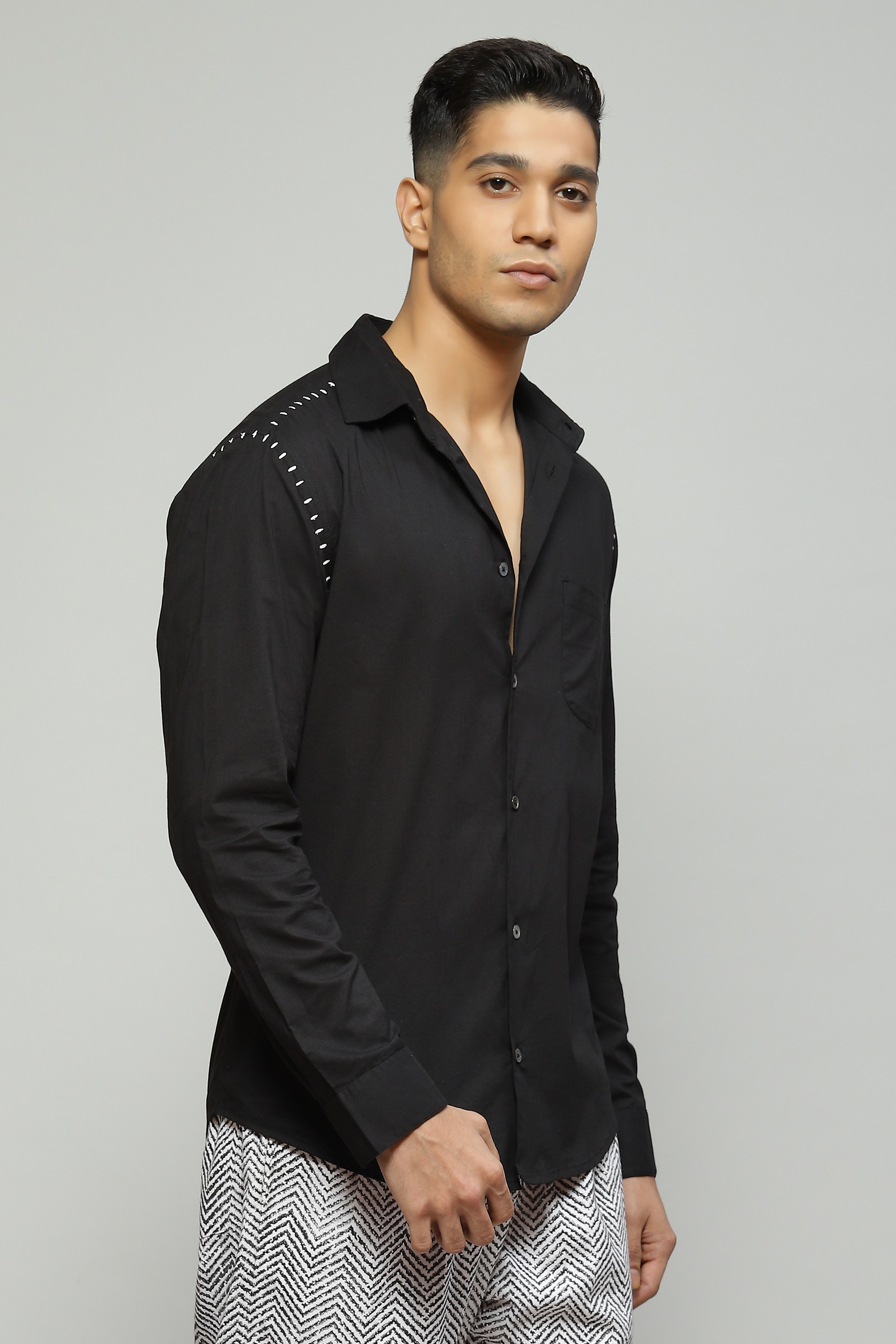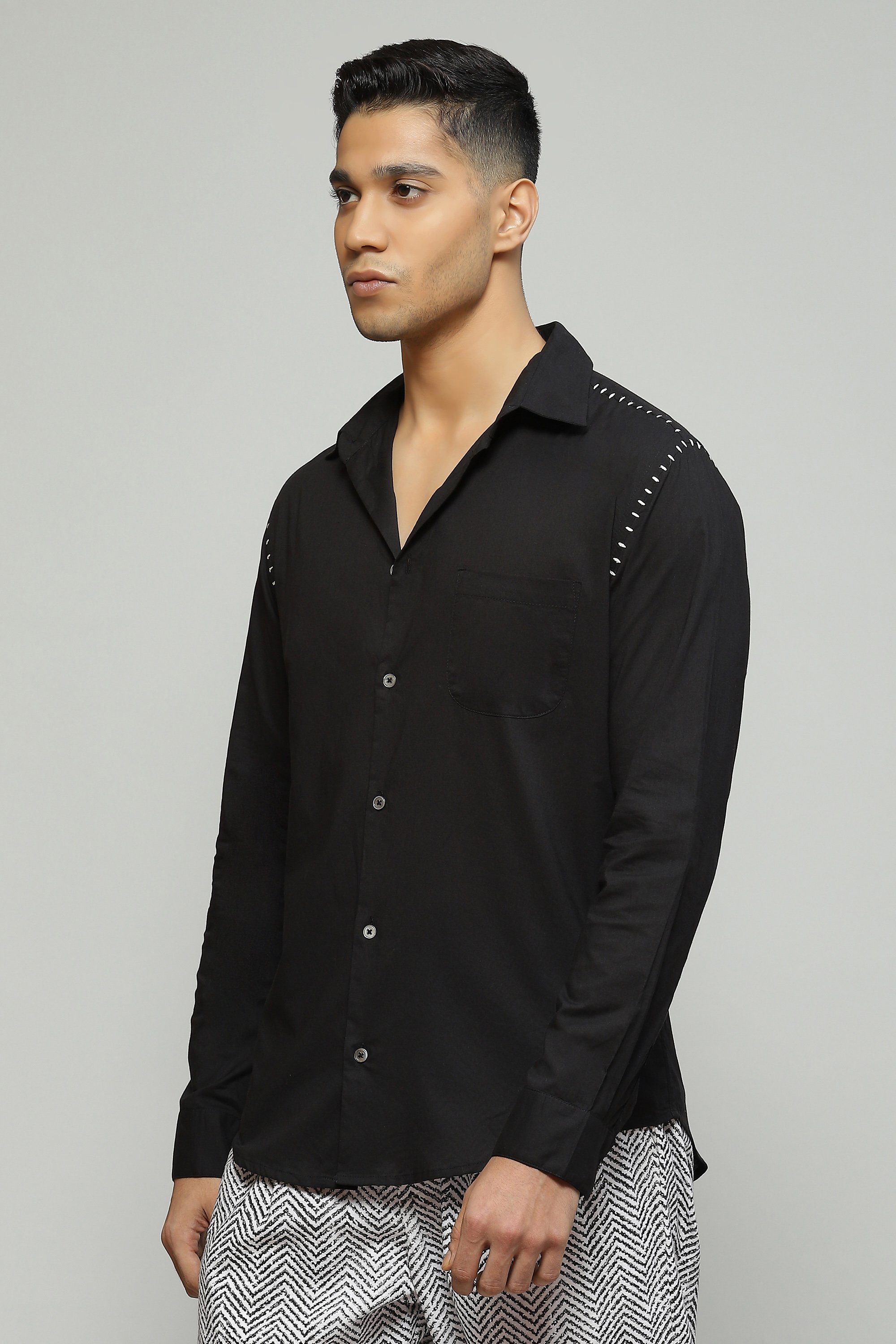 Stab Stitch Embroidered Shirt Black