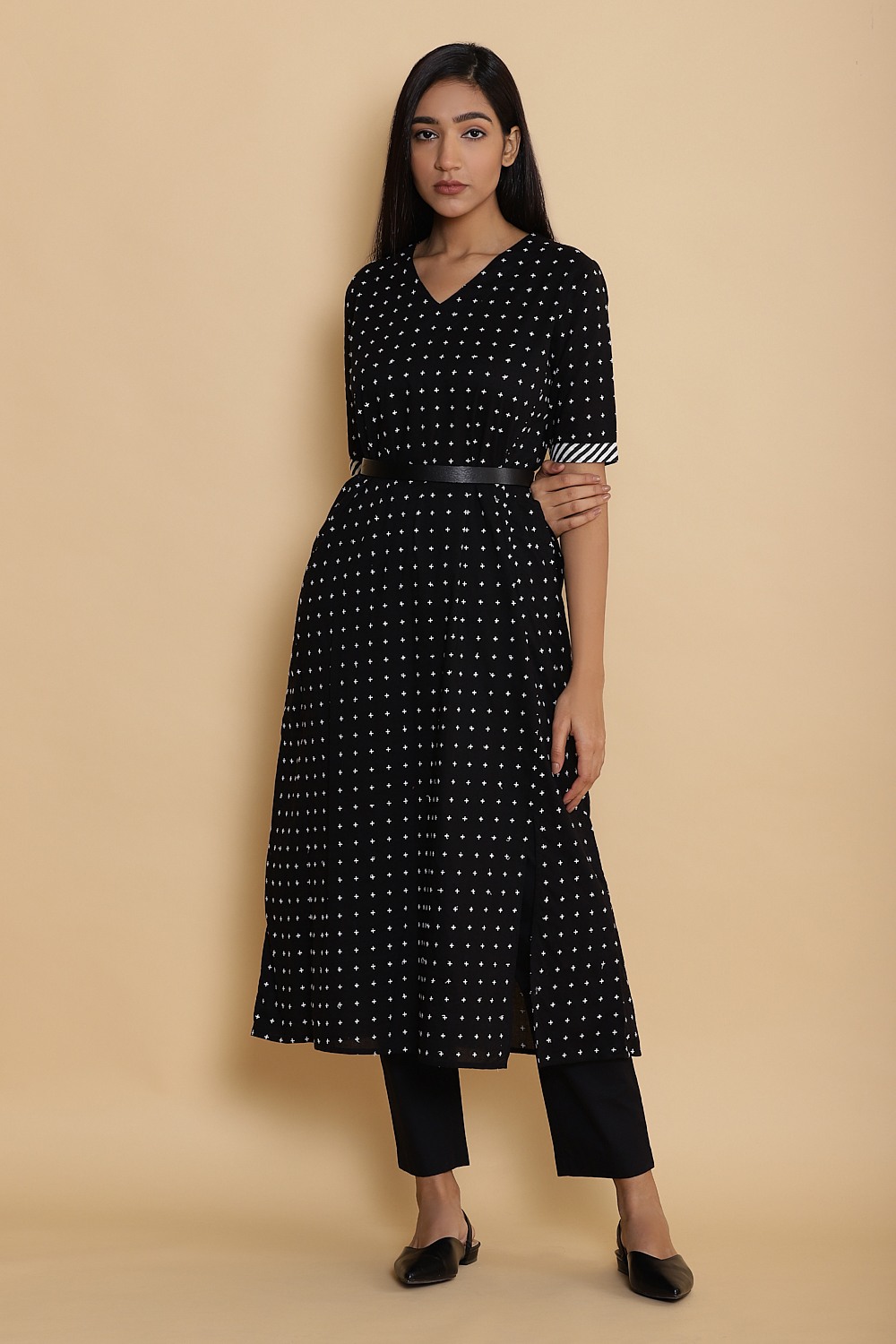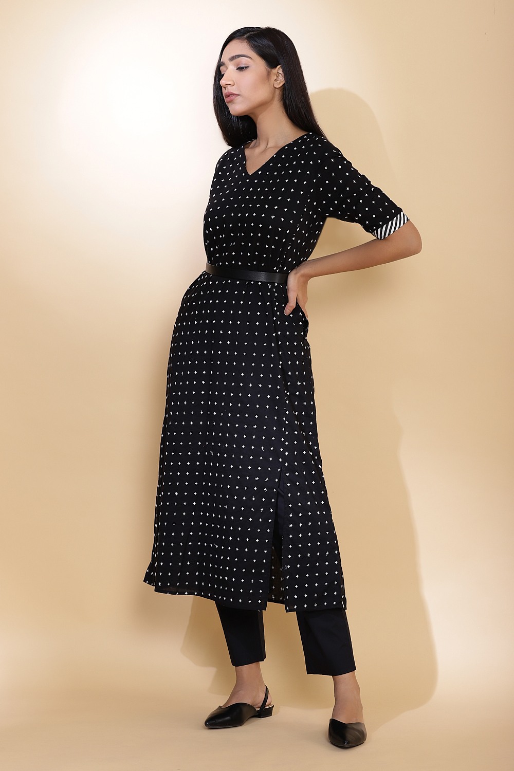 Regular-Fit Kurta. Star EmbroideredCotton Slit Kurta. Garments Are Made From Fabric That Is Washed And Pre-Shrunk To Give A Superior Hand. Model Is Wearing A Size S (Height 5'10") Abraham & Thakore Womenswear Follows Sizes S, M, L, And XL And Has Been Crafted In Lightweight Natural Textiles In Regular And Easy Fits, Employing Various Traditional Textiles Techniques. To Find Your Size For The Most Comfortable Fit, Refer To The Size Chart. The Colors Seen In The Image May Vary From The Actual Product Due To Different Computer Screen Resolutions And Displays.