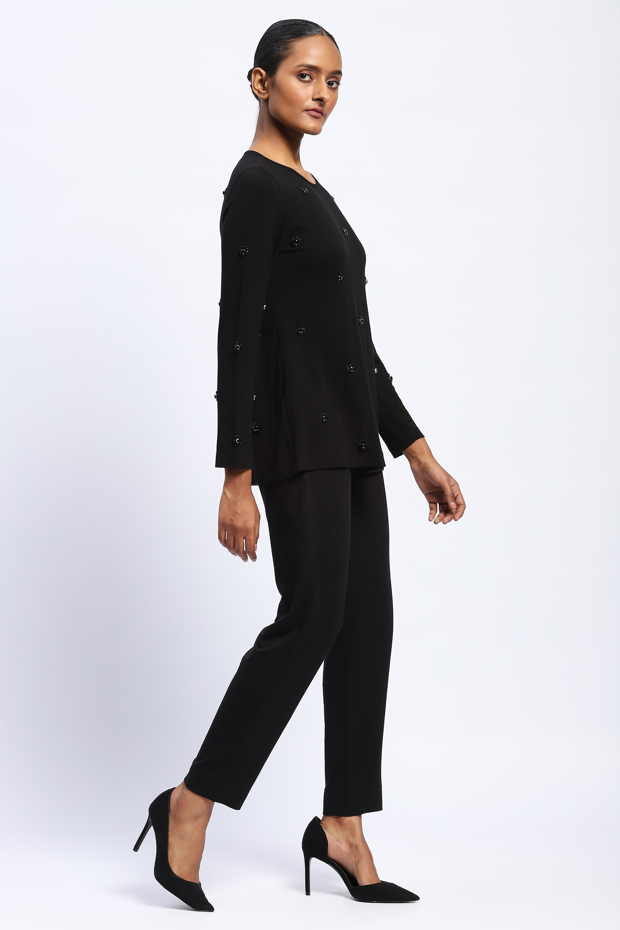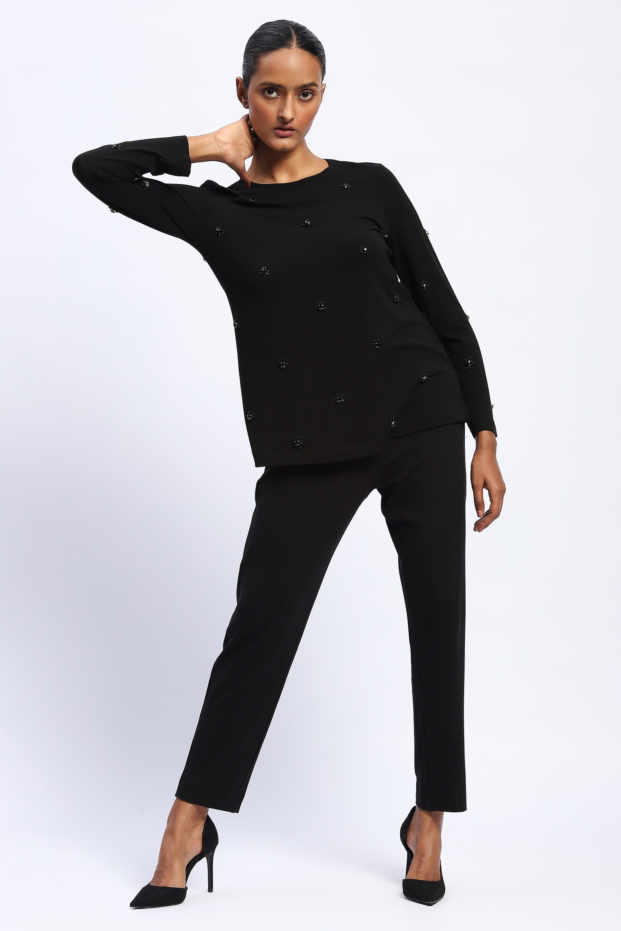 This piece has been made using 100% viscose lycra knit with an all over stone embellishment.