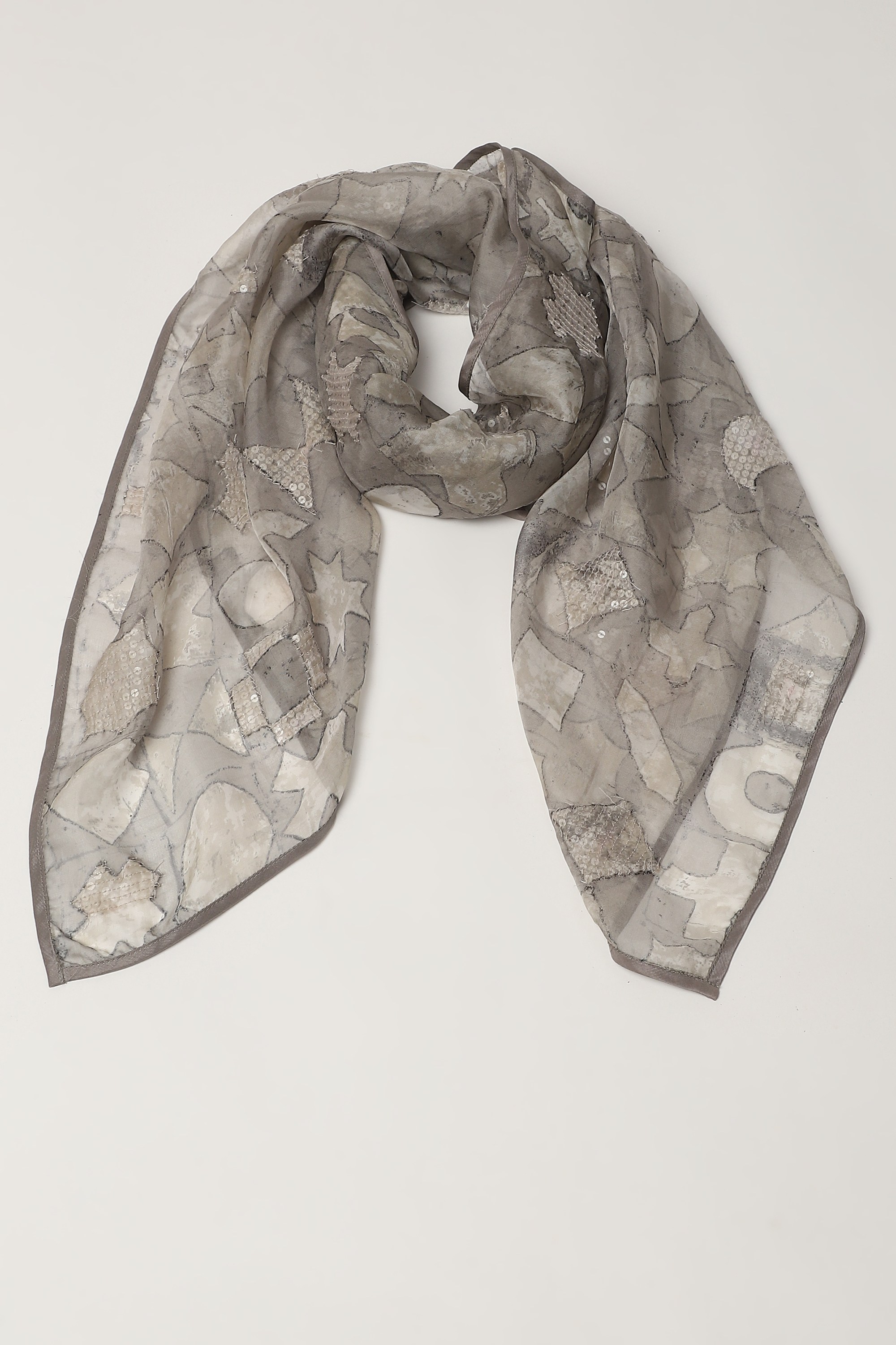 A scarf of sheer smoky silk that dabbles in symbolism.