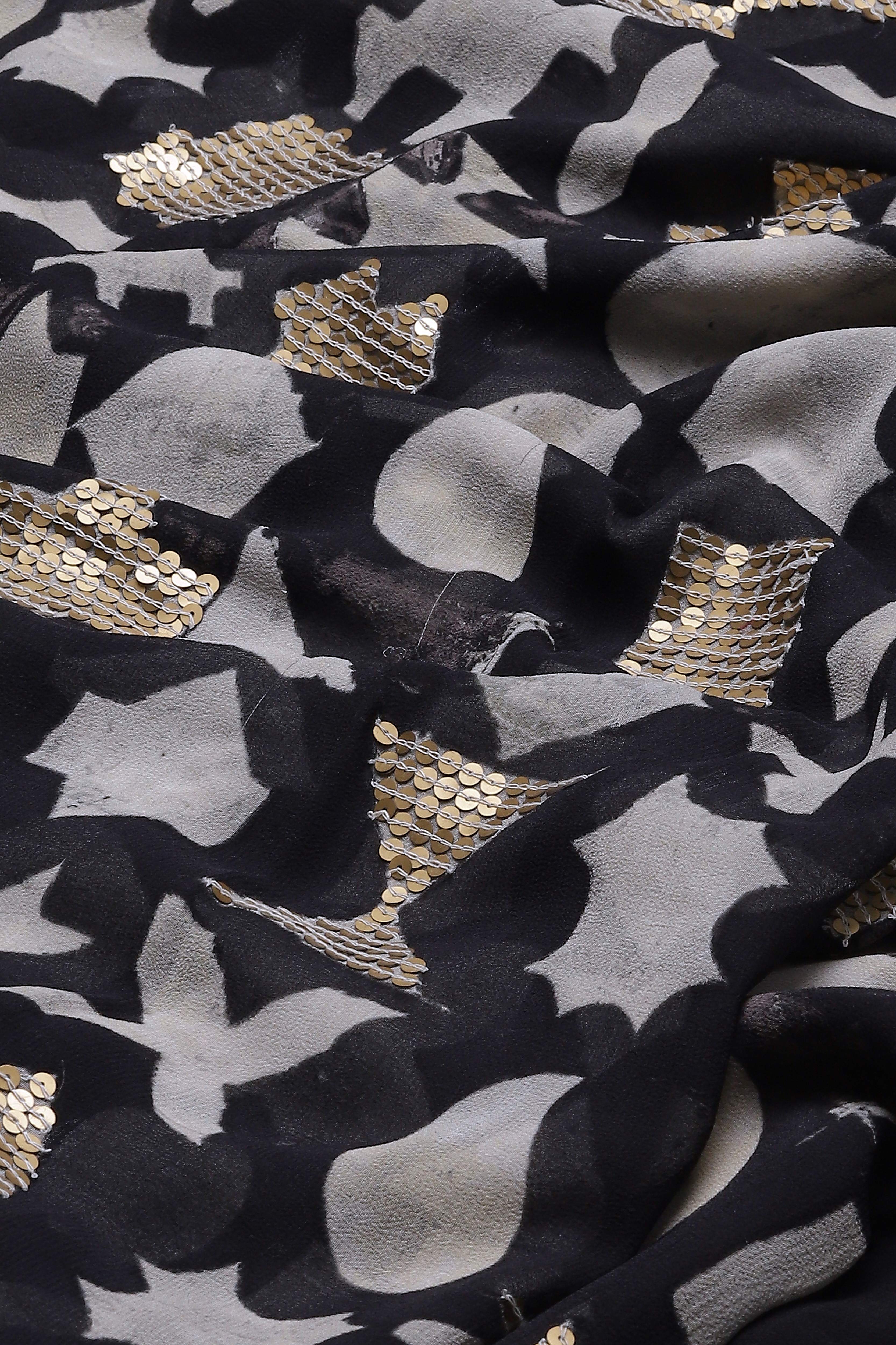 Crafted in a lightweight Chanderi, this piece has been digitally printed and embroidered using the ancient hand adda technique.