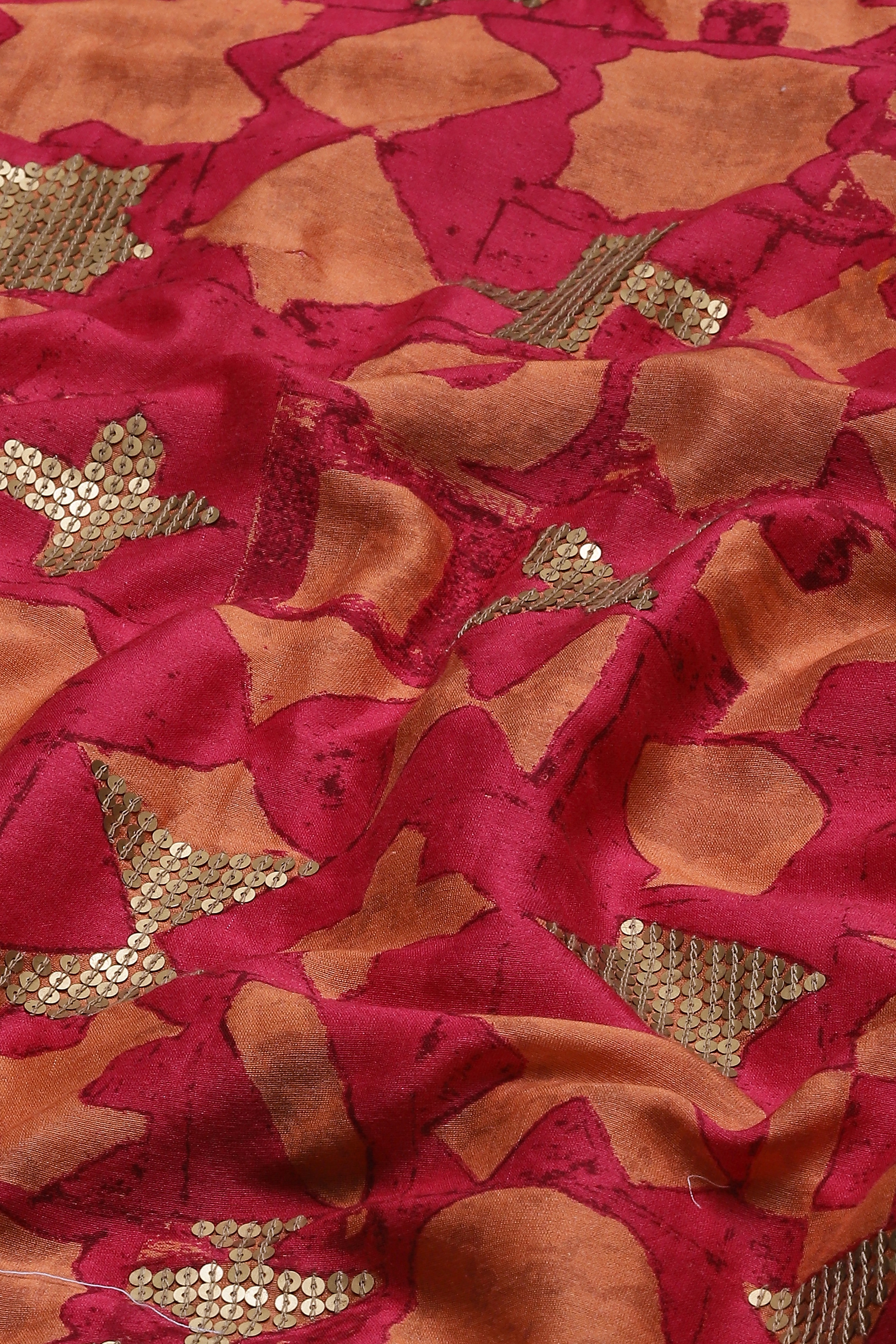 This lightweight Chanderi piece features the intricate art of Hand Adda embroidery and has been hand-embellished with gold sequins.