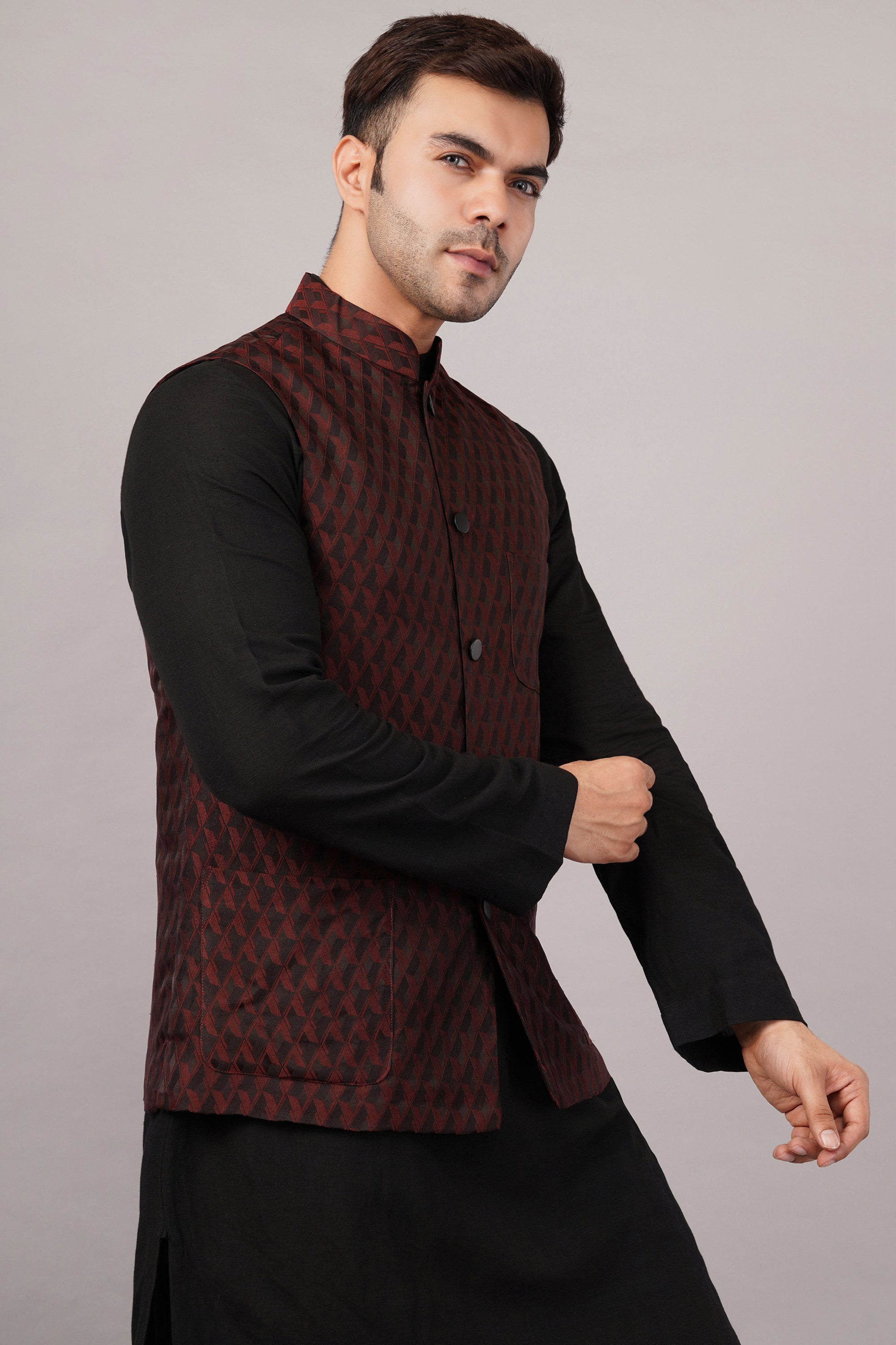 Home / Products / Waistcoats / ABRAHAM AND THAKORE / Tanchoi Jali Bundi