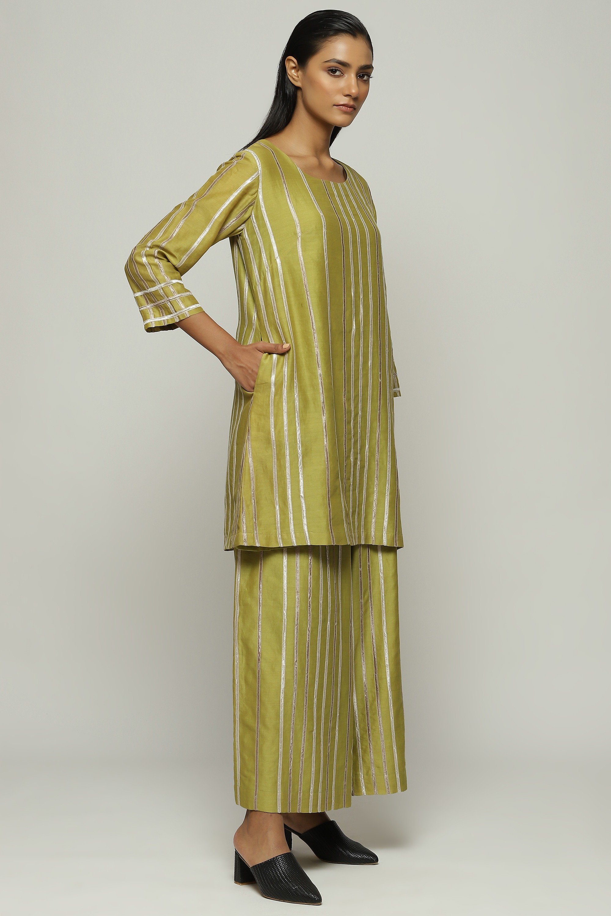 An amla tunic in a tonal lace trim.