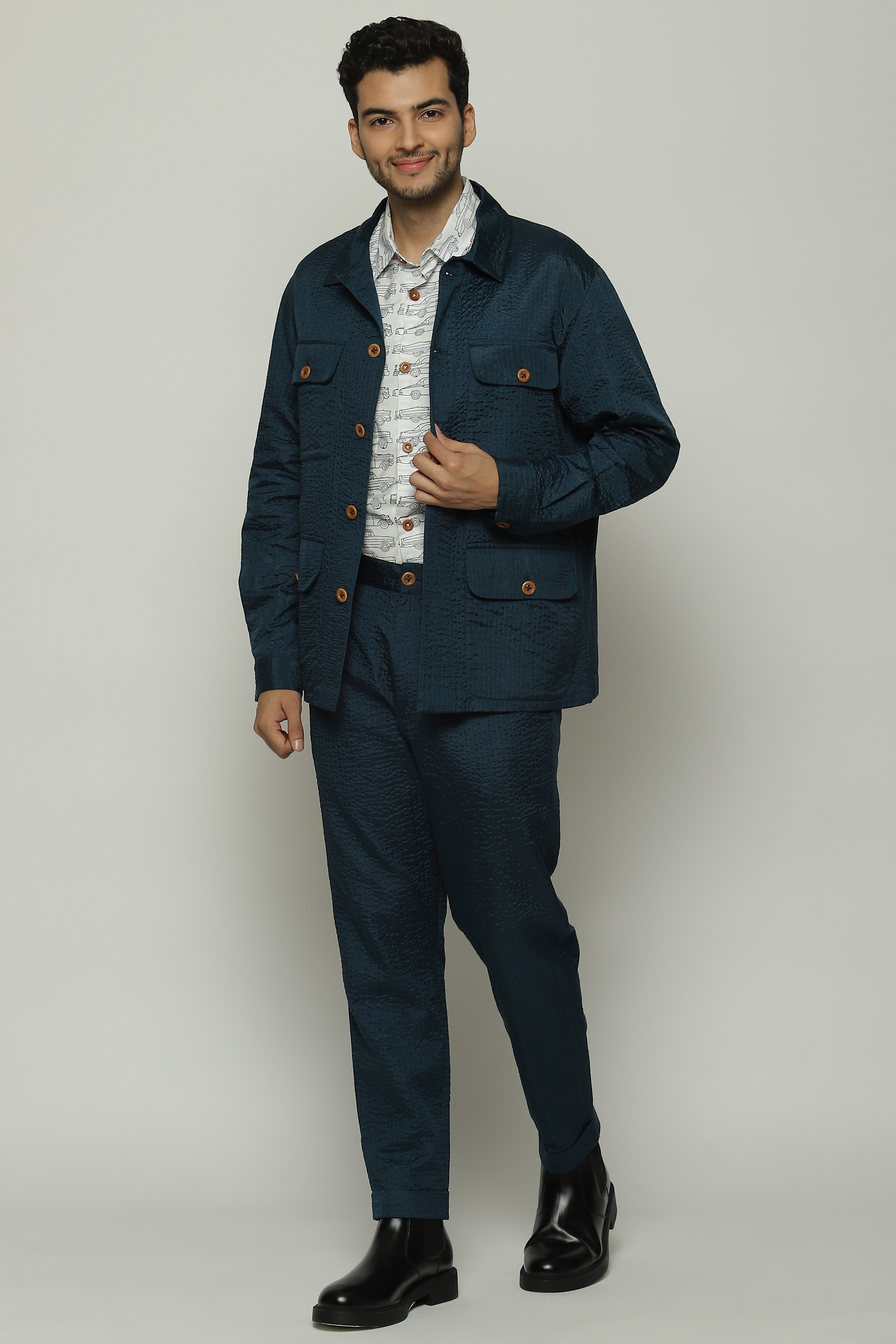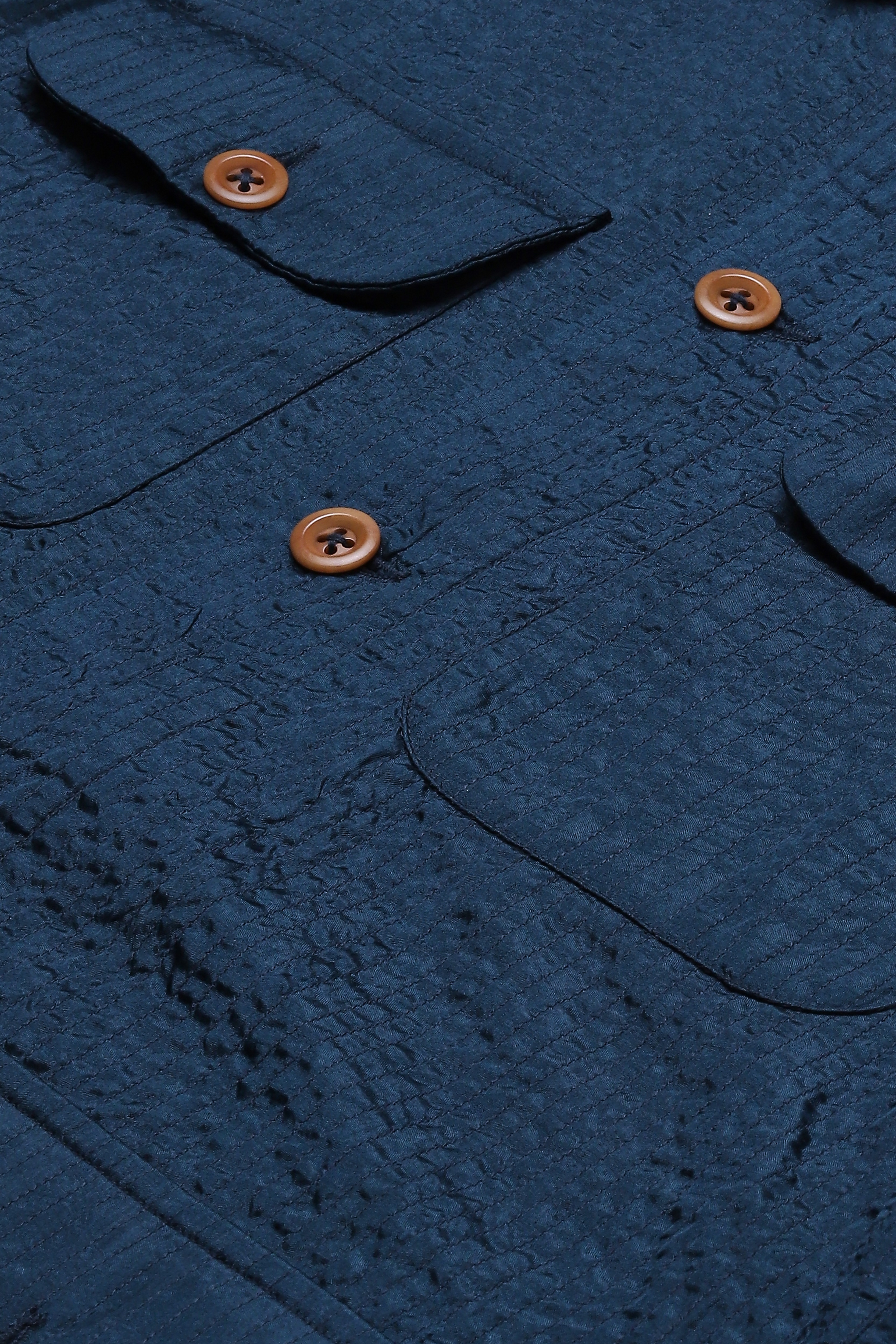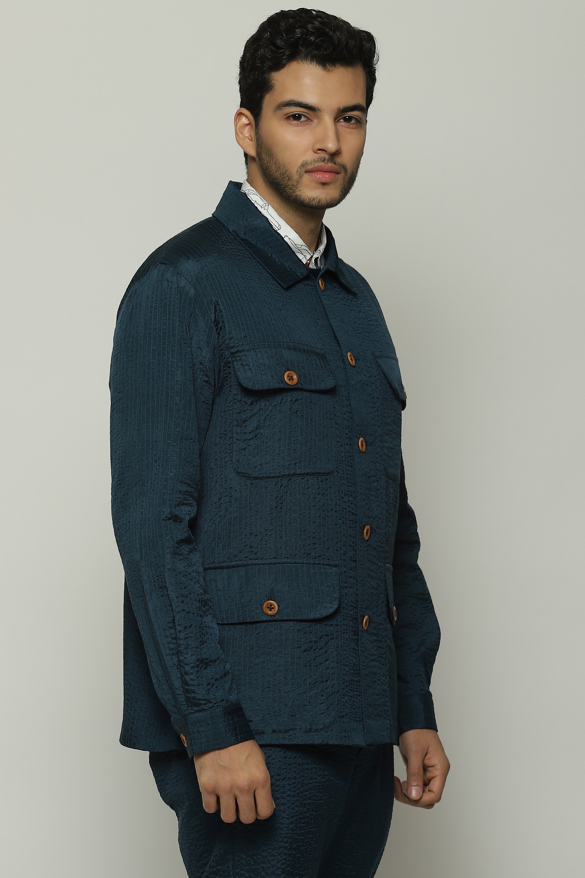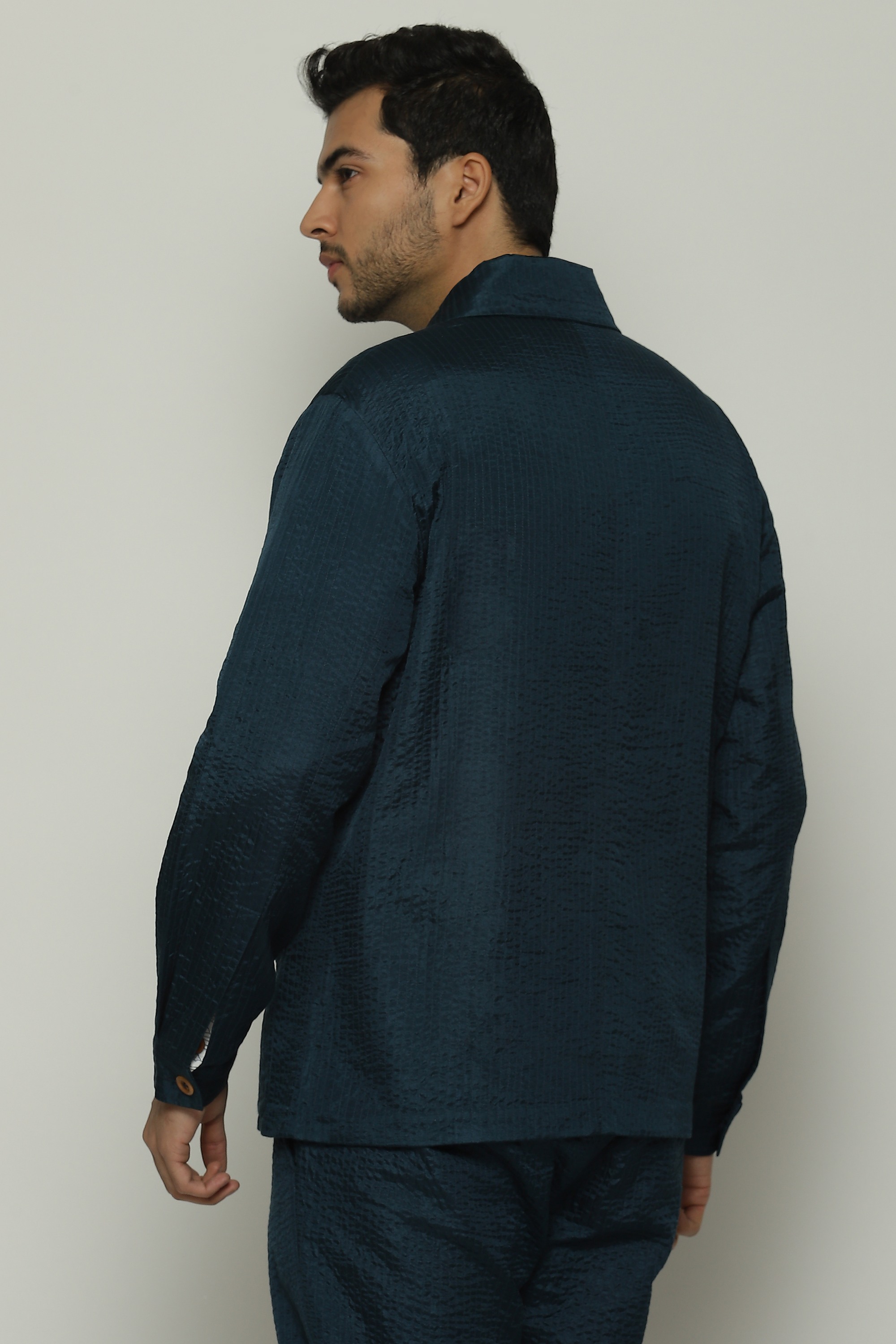 Crafted in a diaphanous tabby silk, this piece is extremely soft and drapes like water. Embroidered in the Trapunto technique, this jacket features running stitches of silk yarn through its entire length.