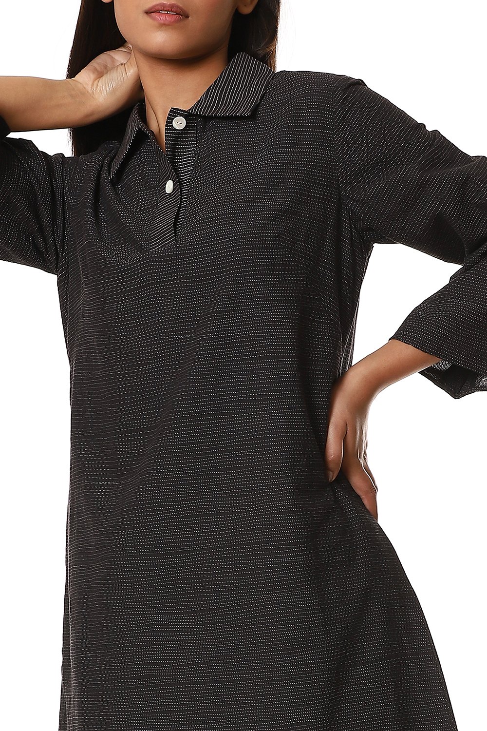 Collared Quilted Kurta. All Over Tone On Tone Horizontal Trapunto Embroidered Quilting And Contrast Trapunto On Neck. Special Mother Of Pearl Buttons,Wear It Over Straight Fit Pants For A Crisp Look.