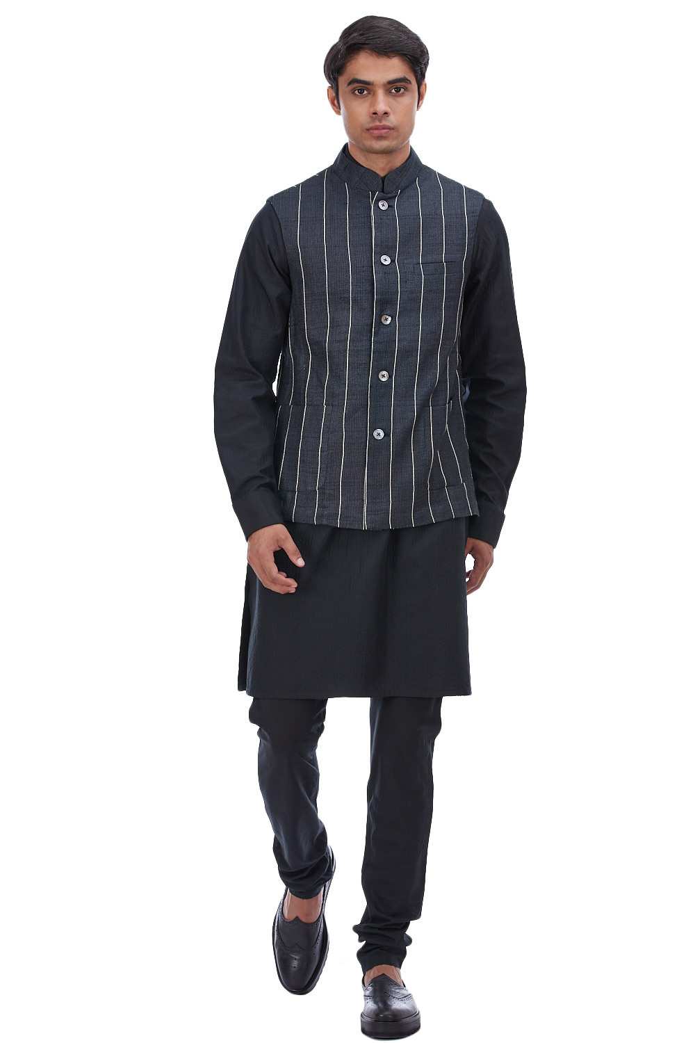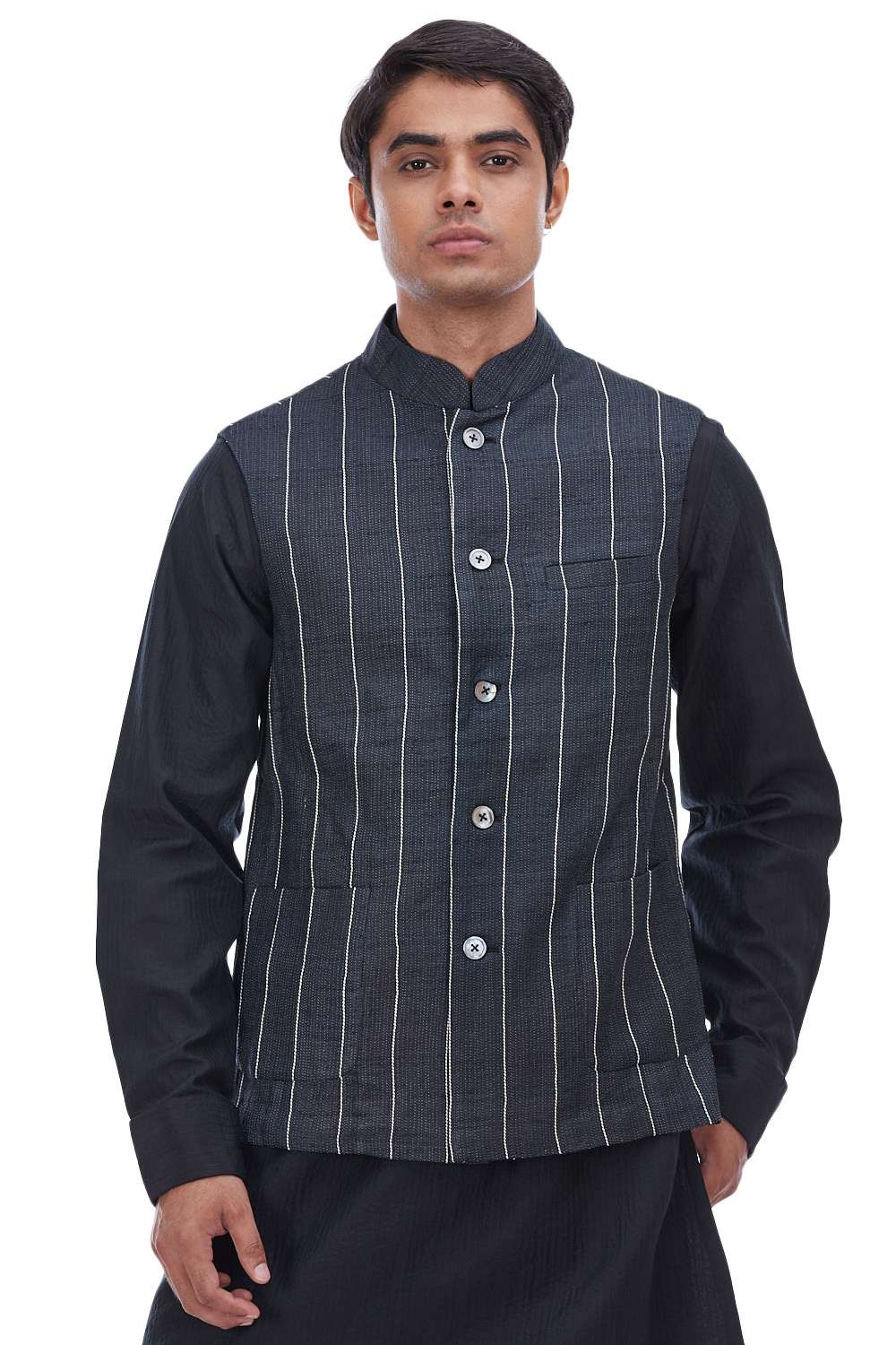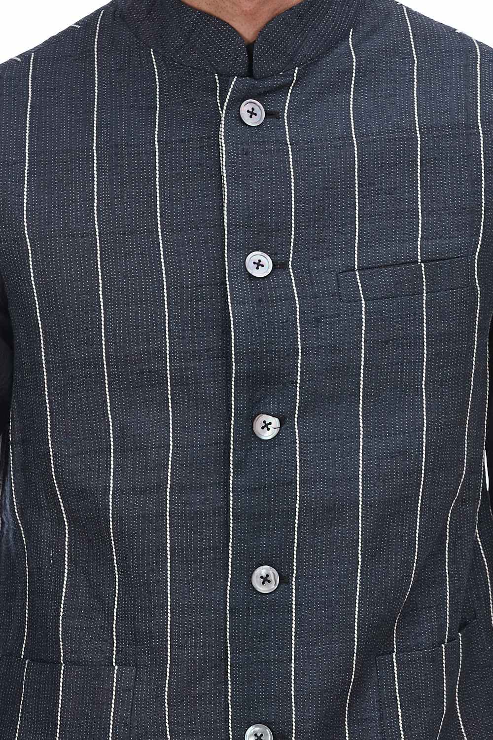 Semi-Formal Classic Bundi. Crafted In Lightweight Tussar Silk. Features Bespoke Trapunto Embroidered Stripes, With Our Signature Regular Fit. Abraham & Thakore Bundis For Men Have Been Crafted In Lightweight Natural Textiles In Regular And Slim Fits, Employing Various Traditional Textiles Techniques