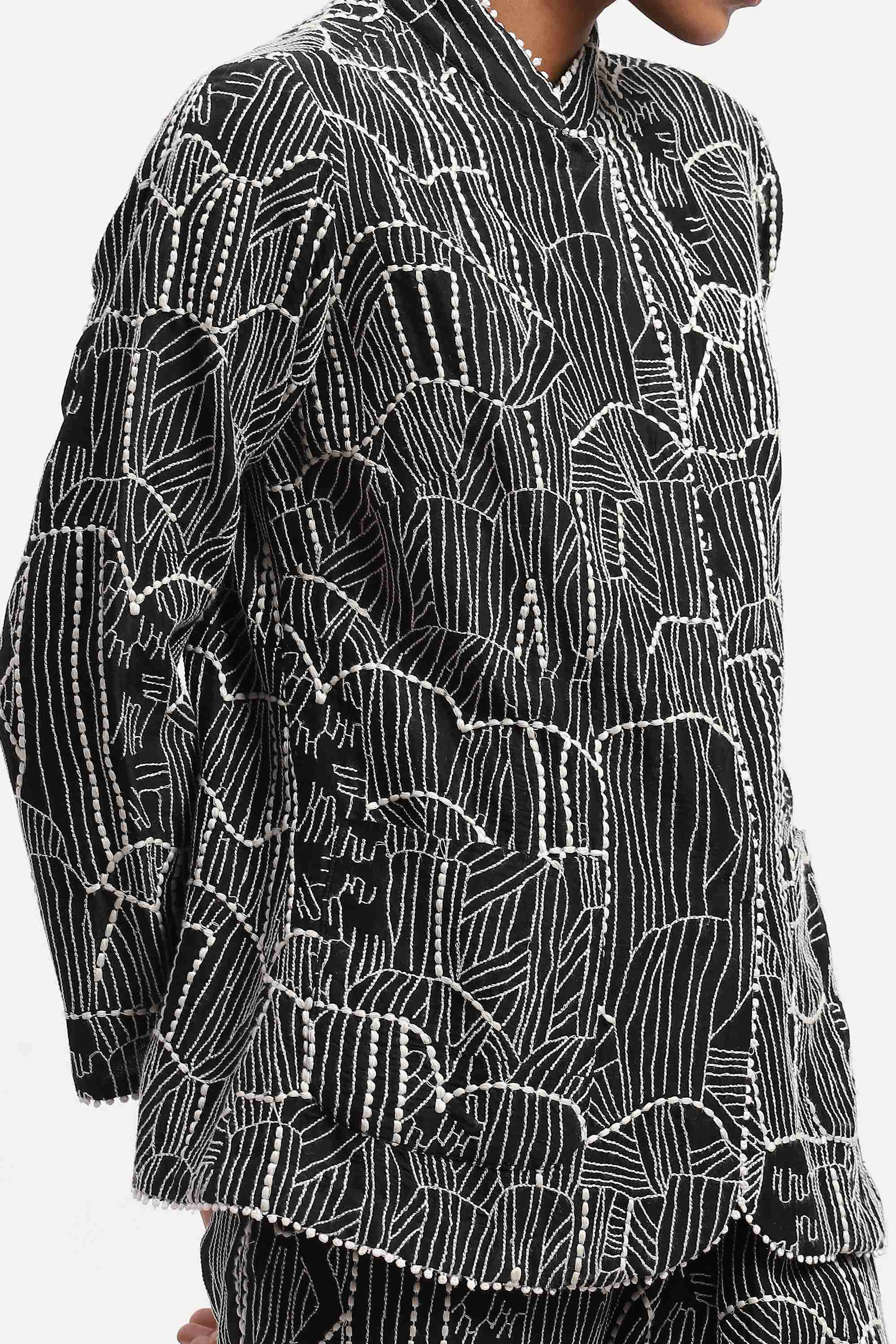 Embellishment Description : Silk yarn has been used to create geometric patterns on the garment.