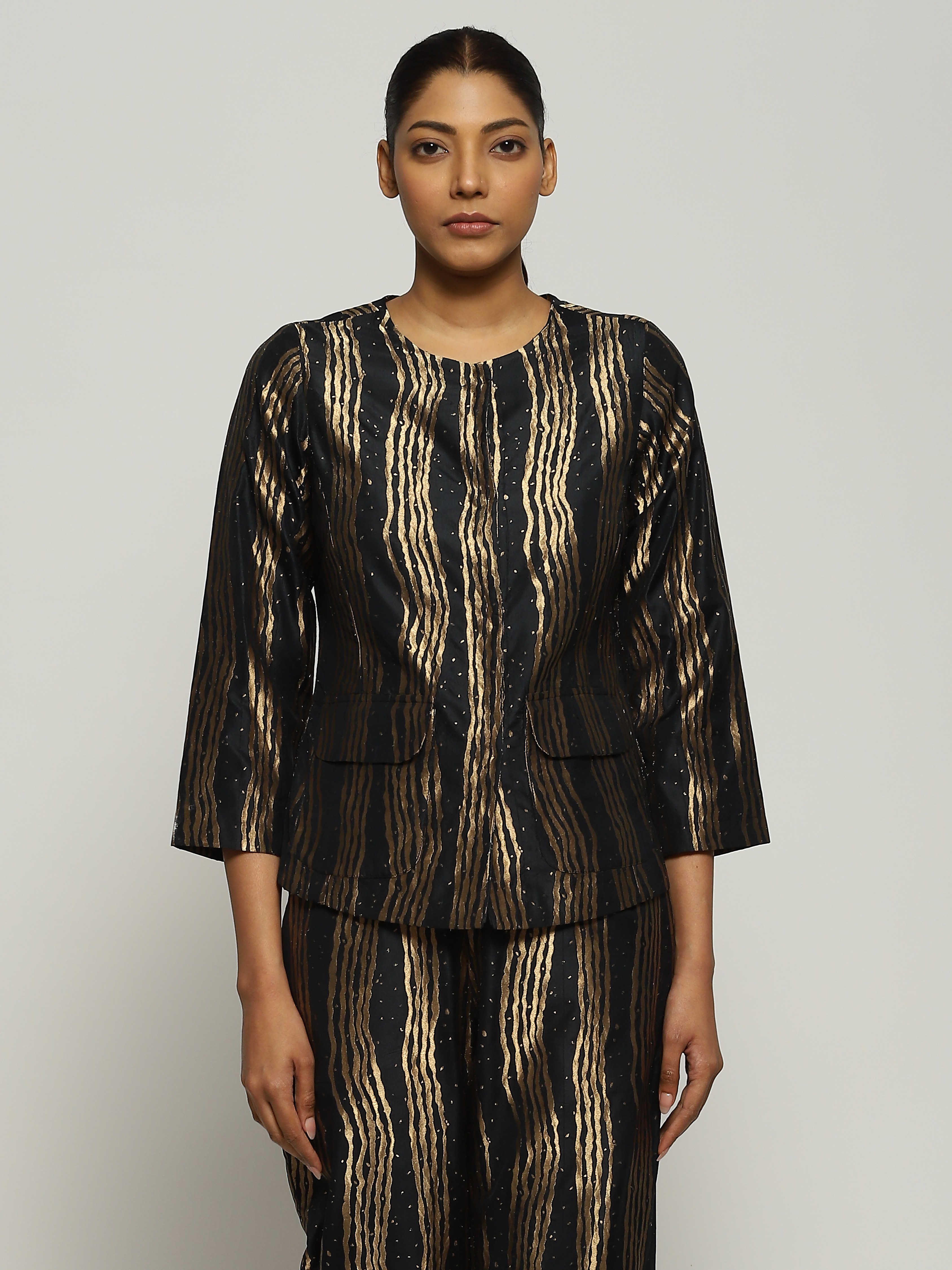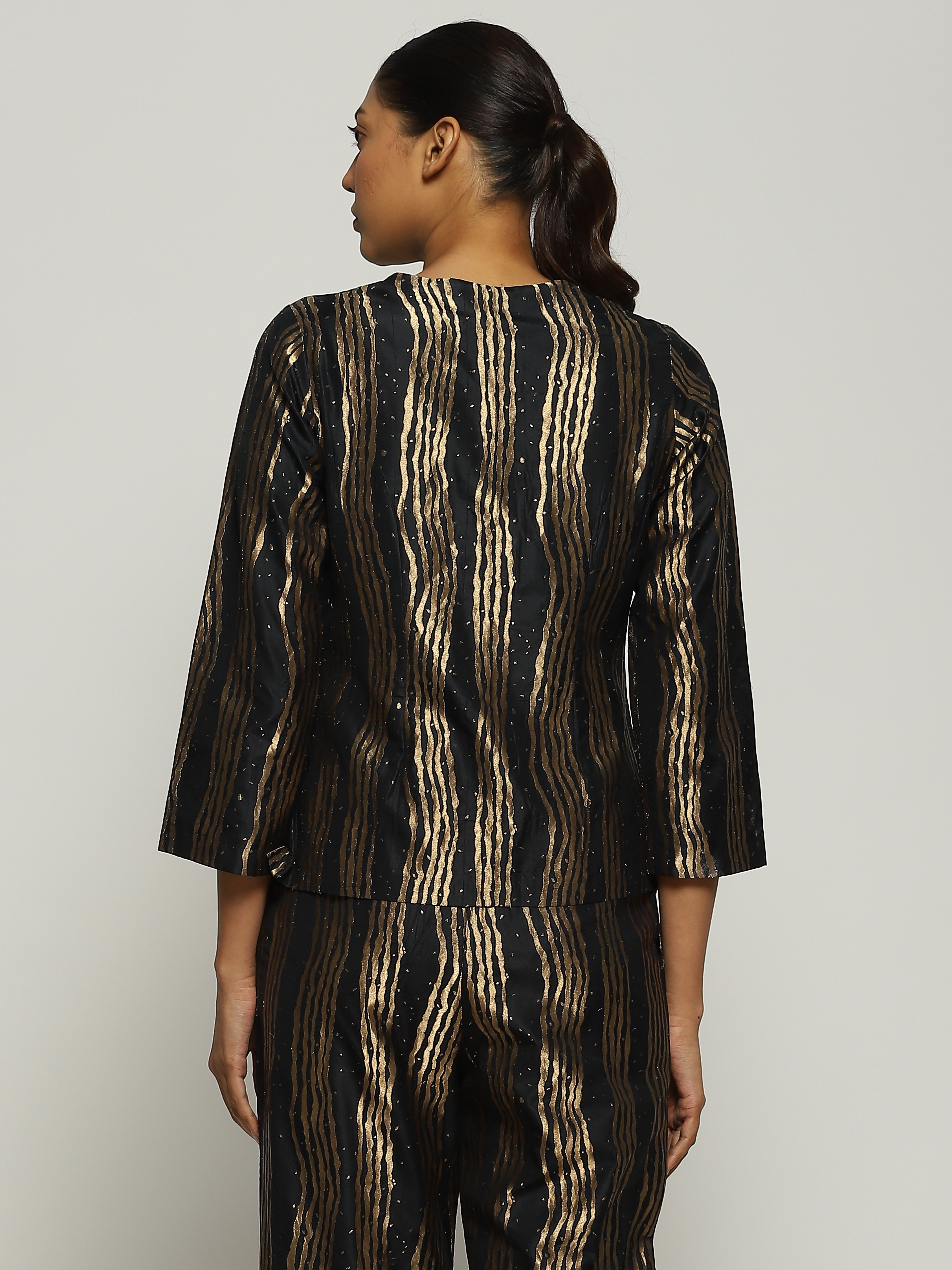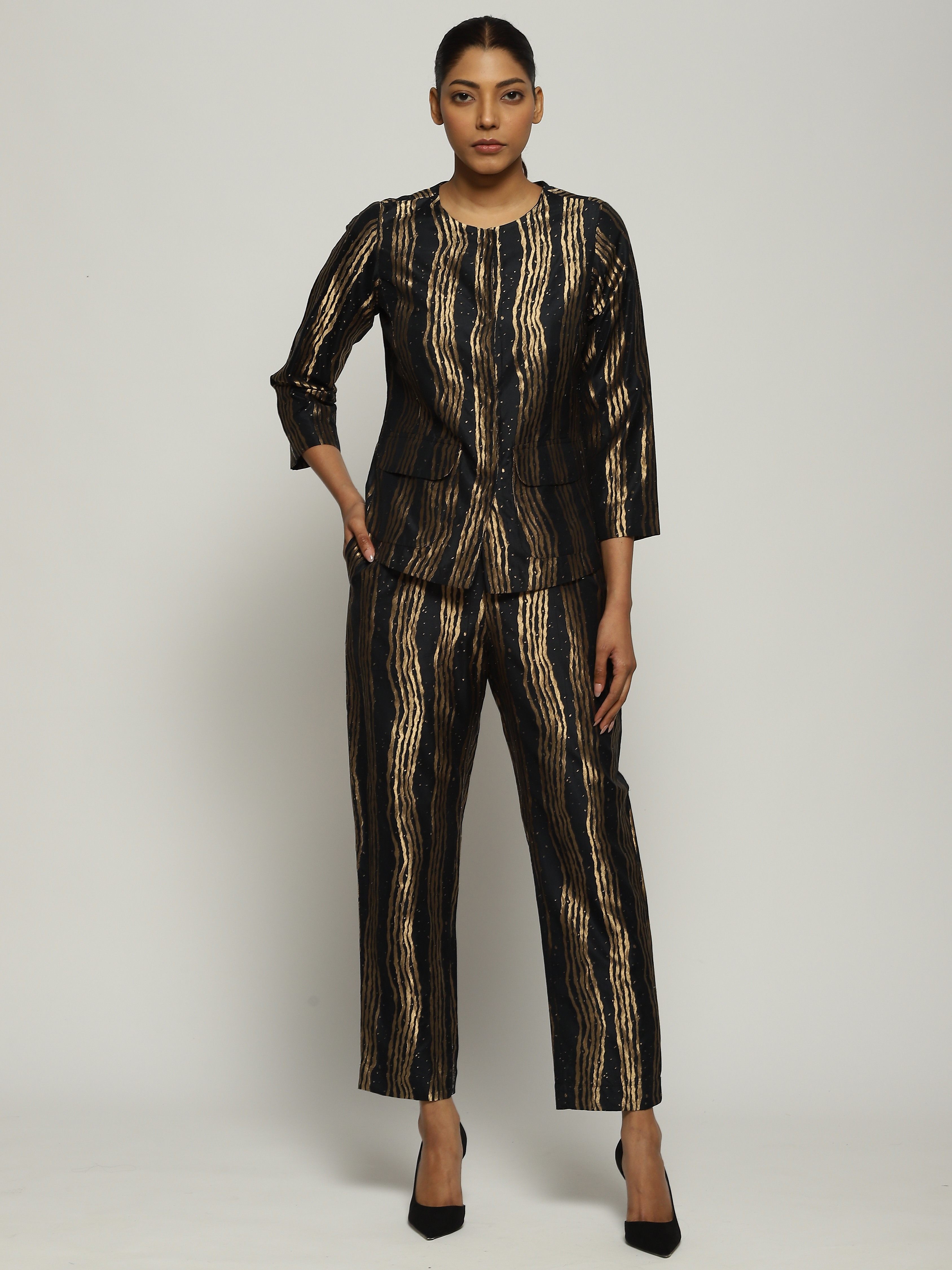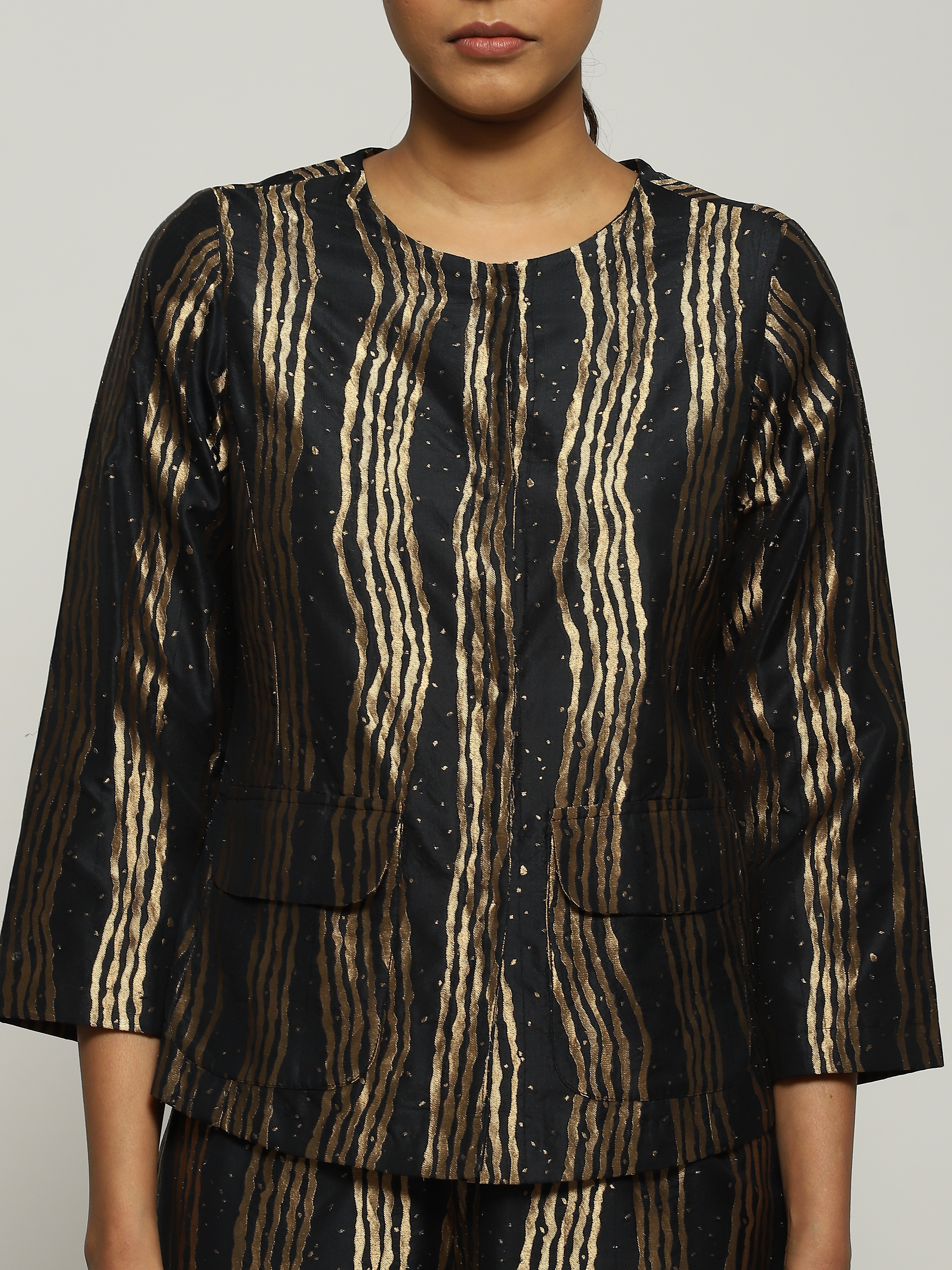 Crafted in a breathable blend of silk and cotton, the pattern on this piece is woven in zari using the brocade technique.