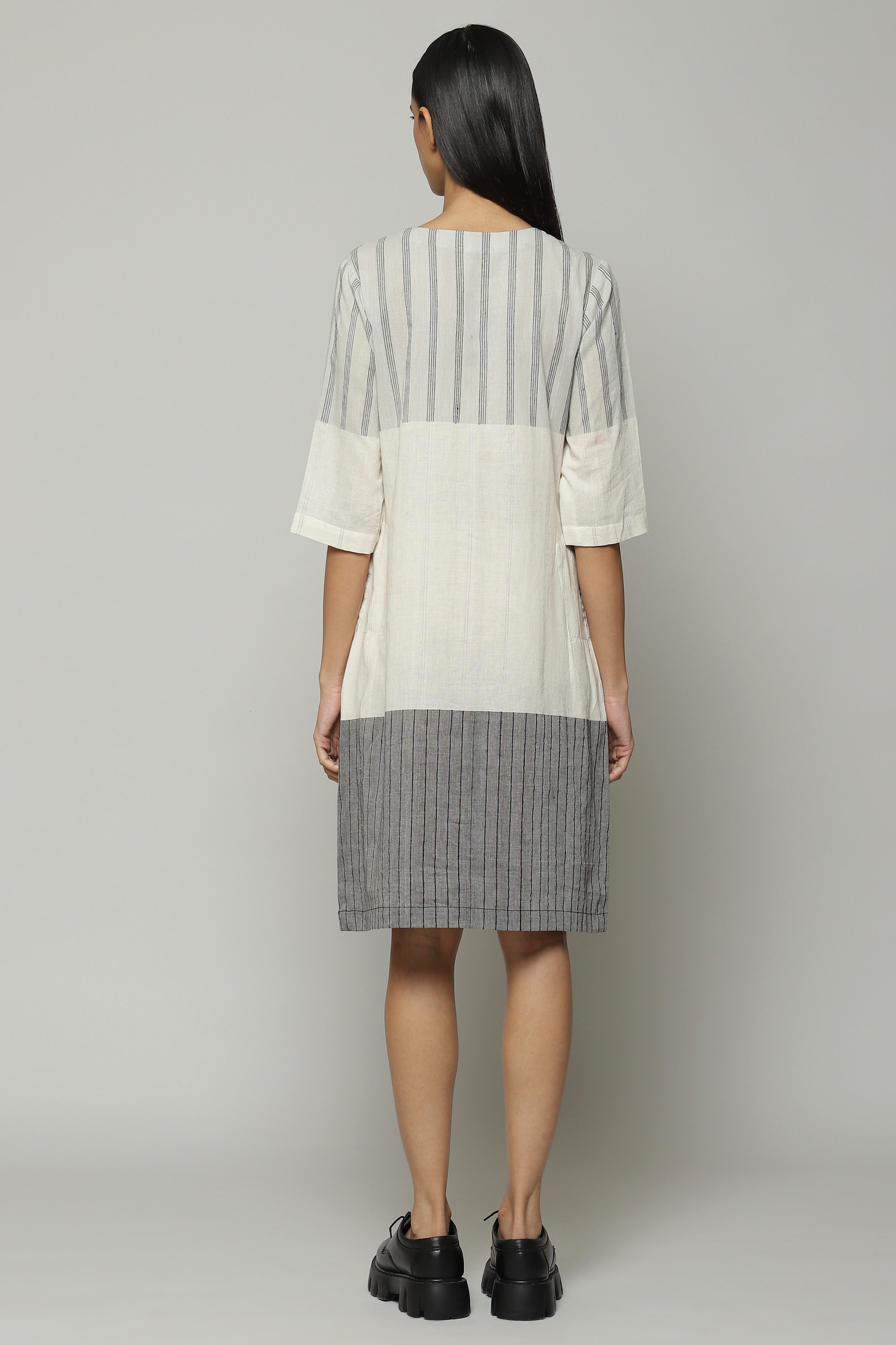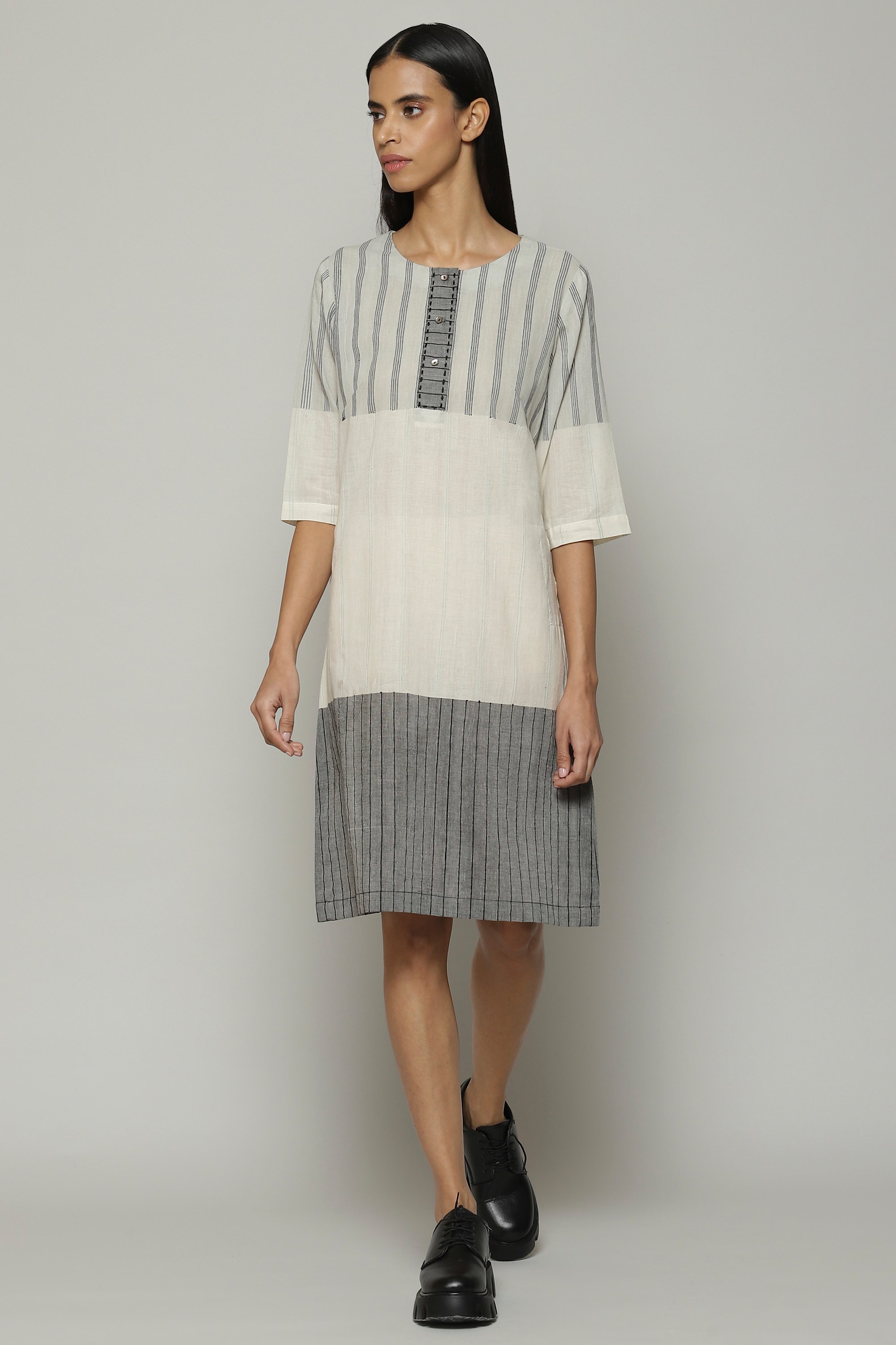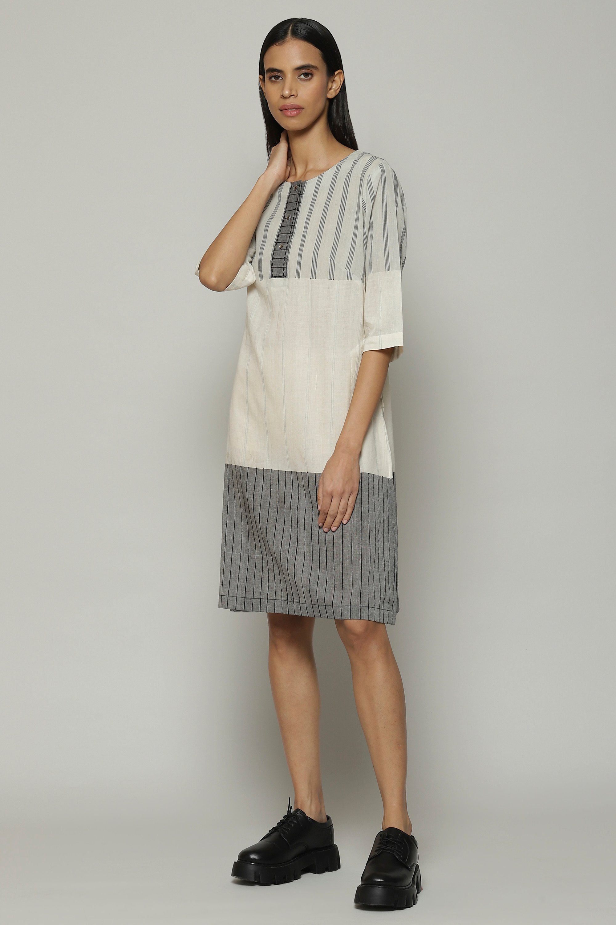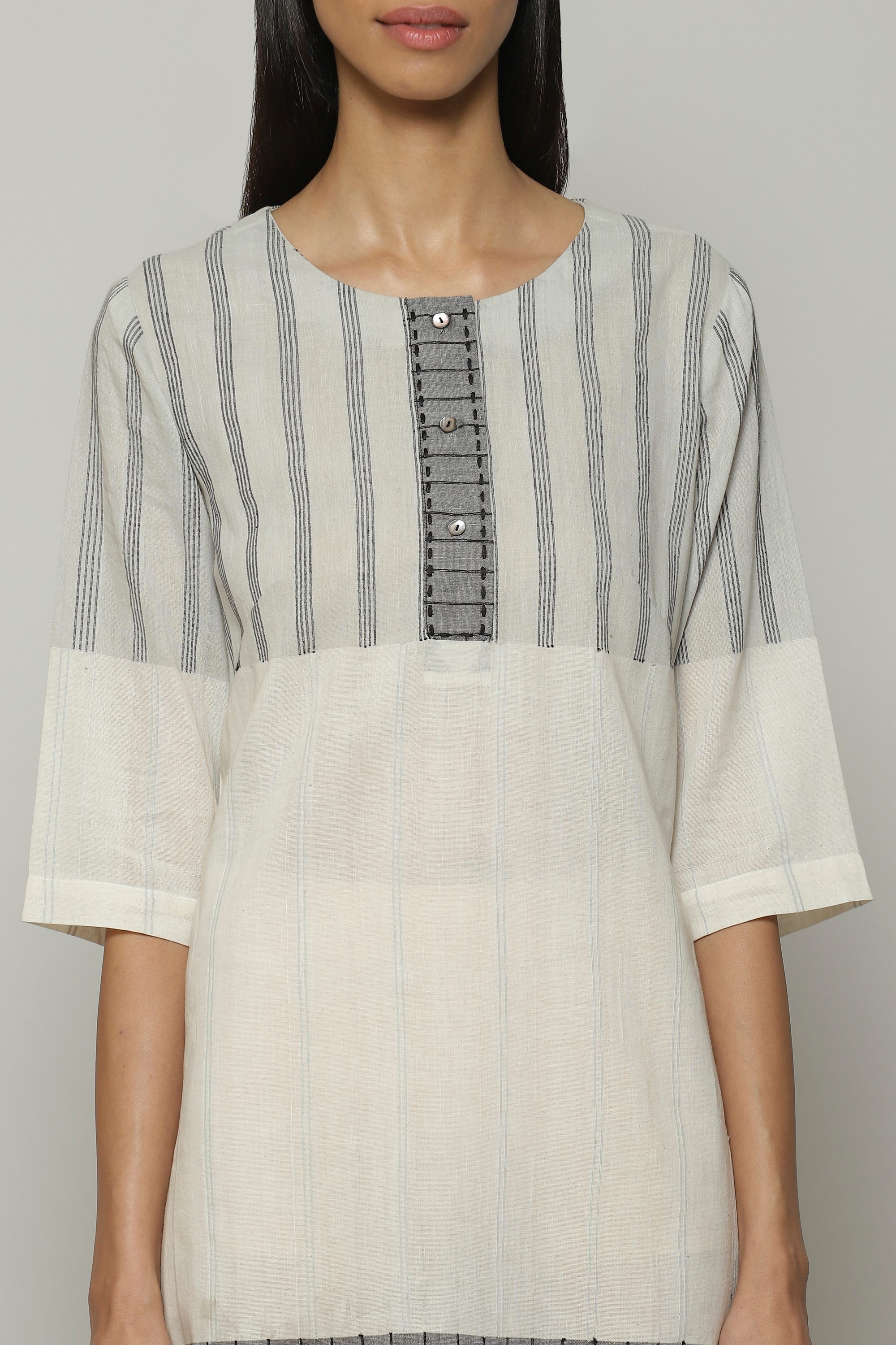 A contemporary kurta that has something of a Grey Gardens feel to it. This creation is weave engineered with 3 colours. The eye-catching pattern is accomplished by an innovative intervention on the loom, which involves the use of an extra weft. Clever and comfortable, this is how we love our textiles.