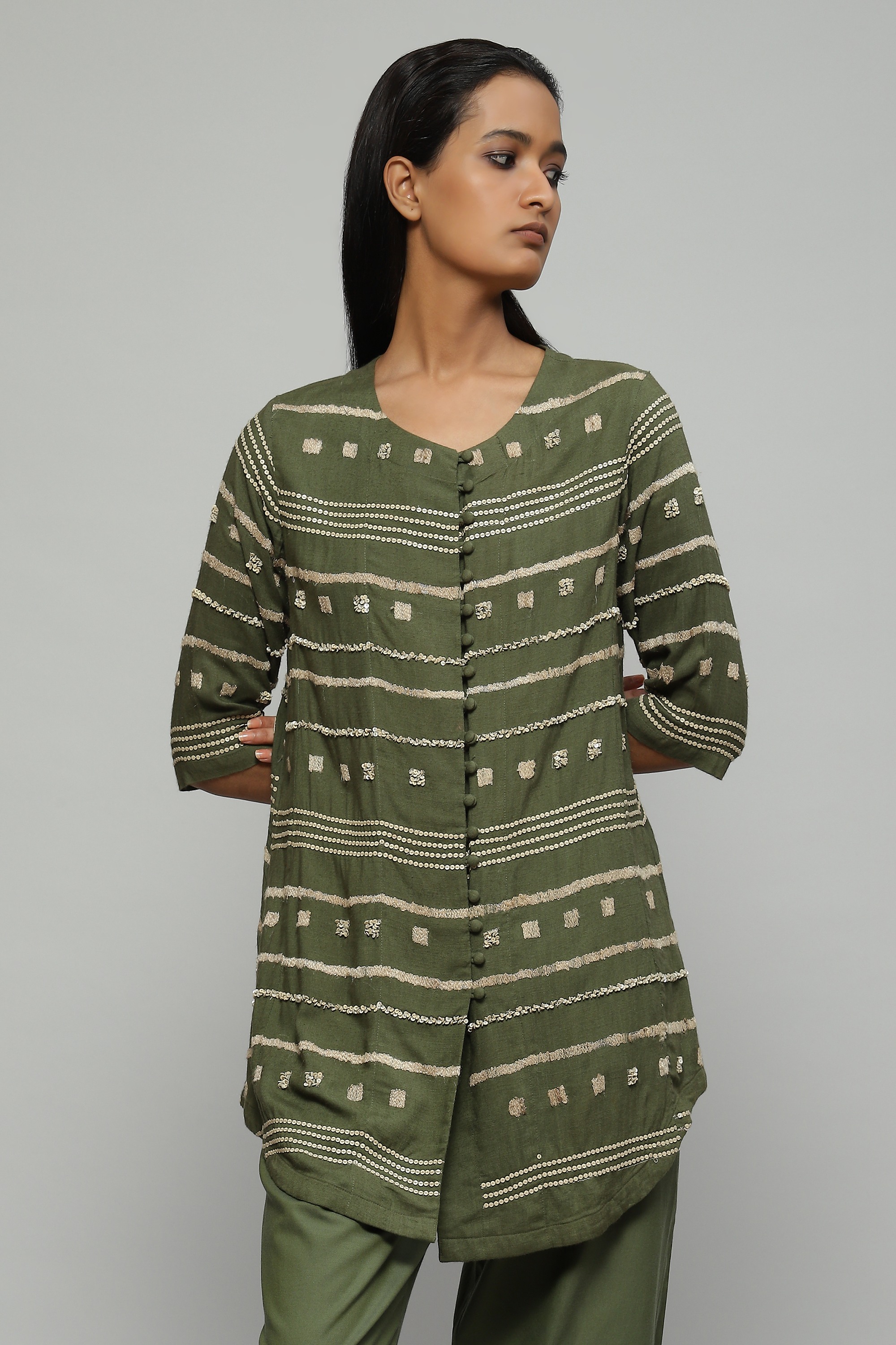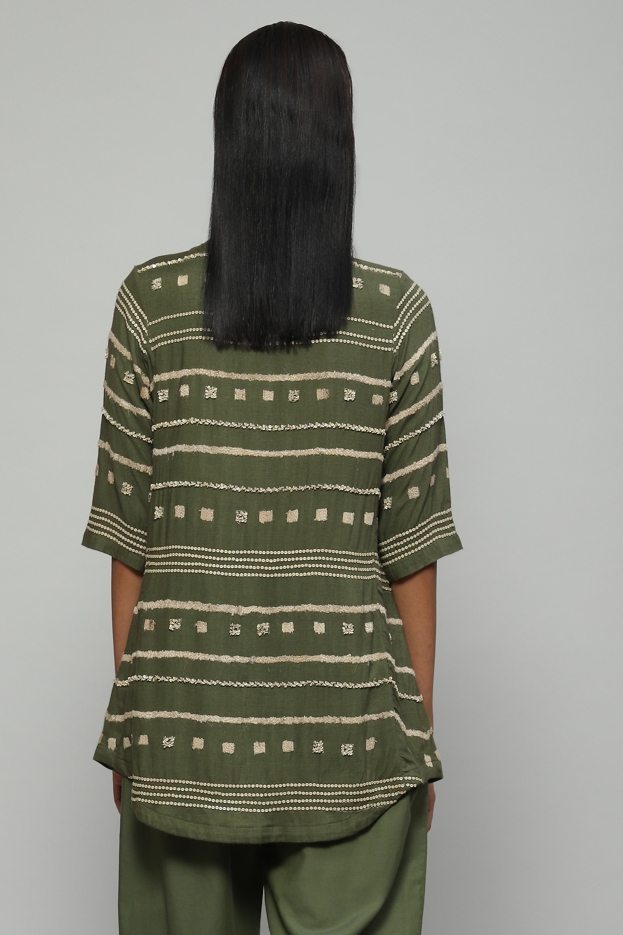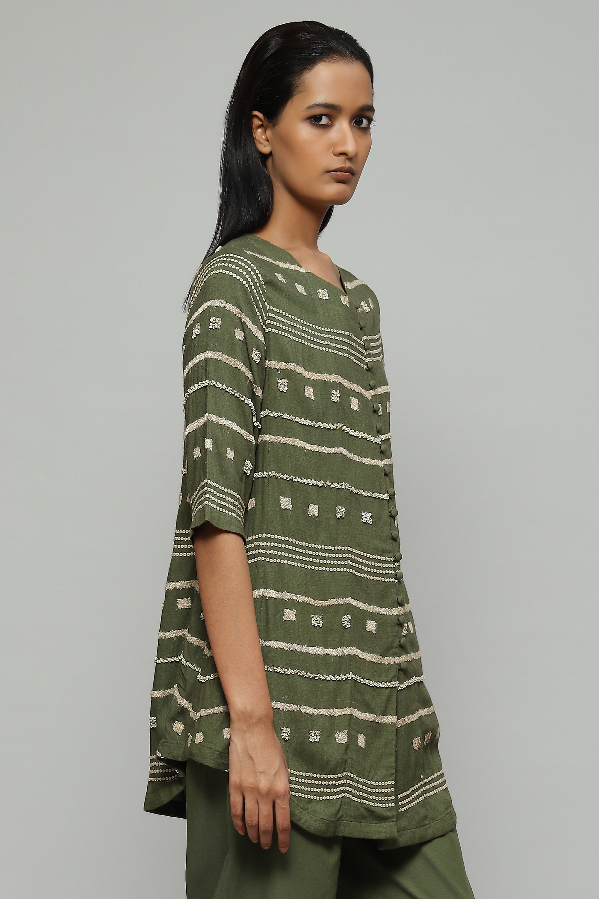 Tussar Embroidered And Sequinned Top Seagrass