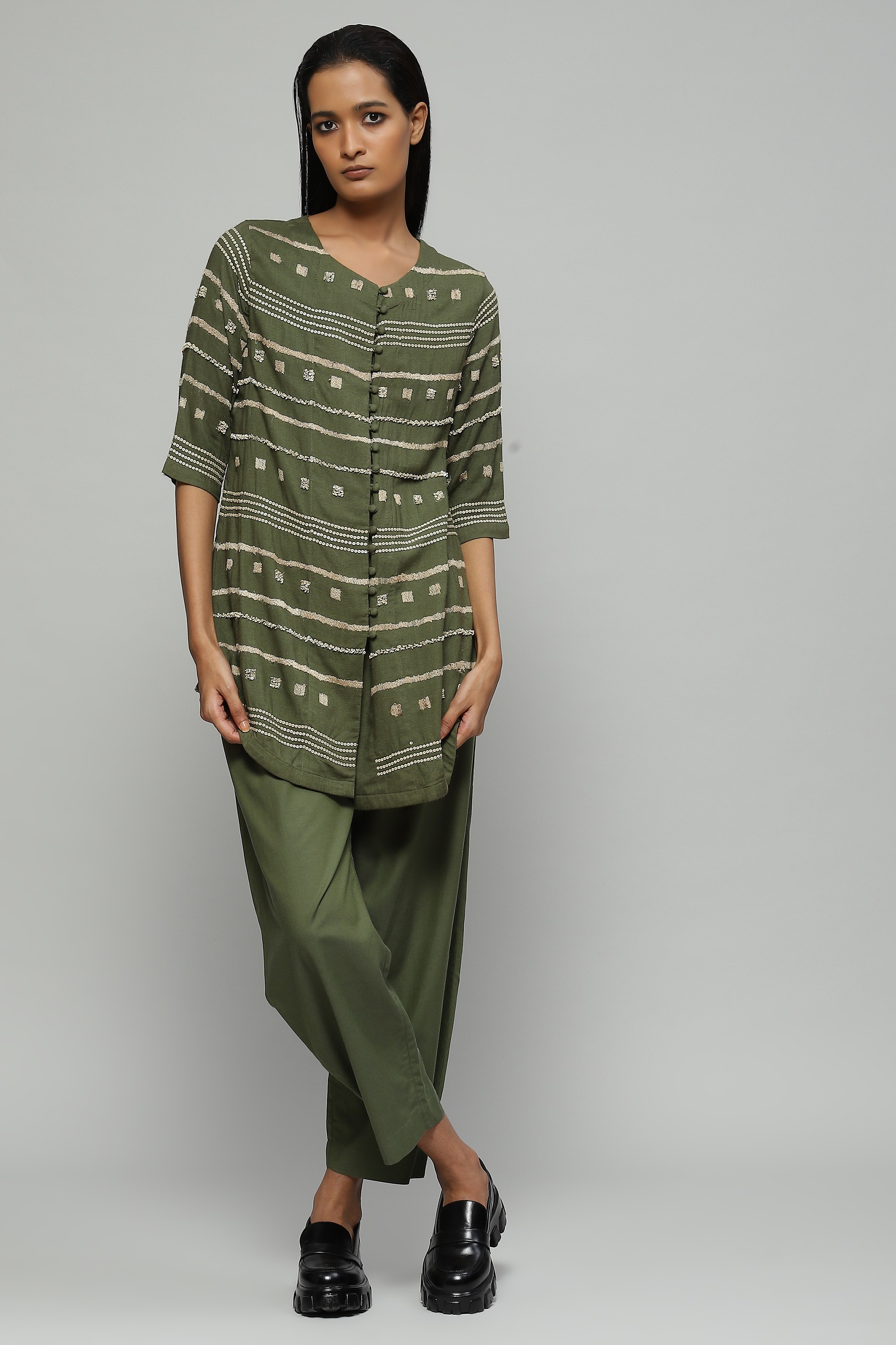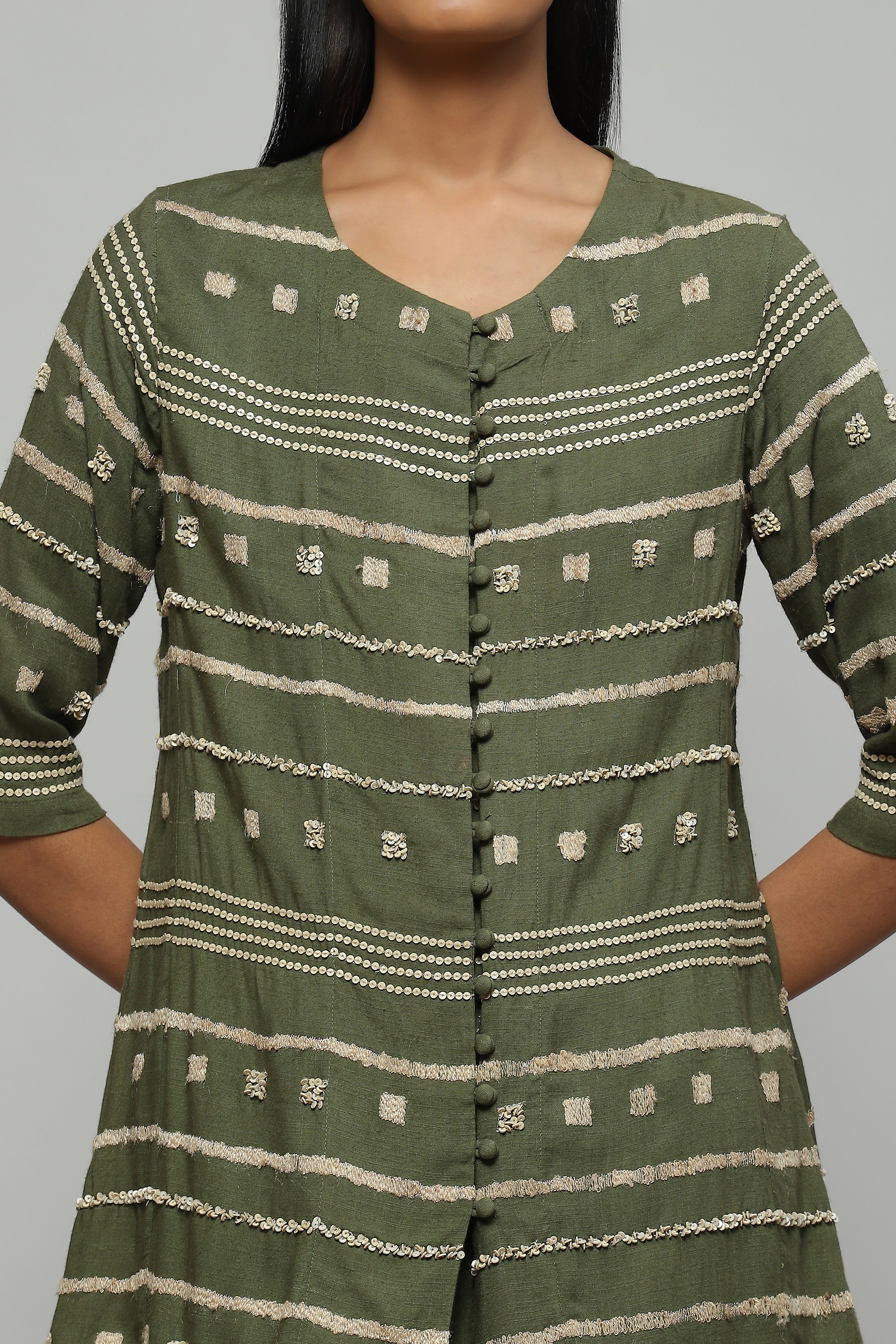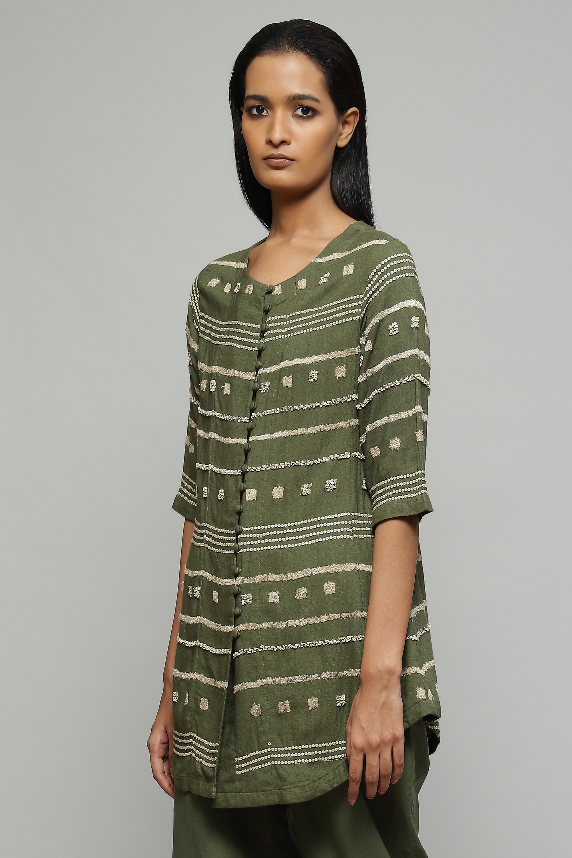 Tussar Embroidered And Sequinned Top Seagrass