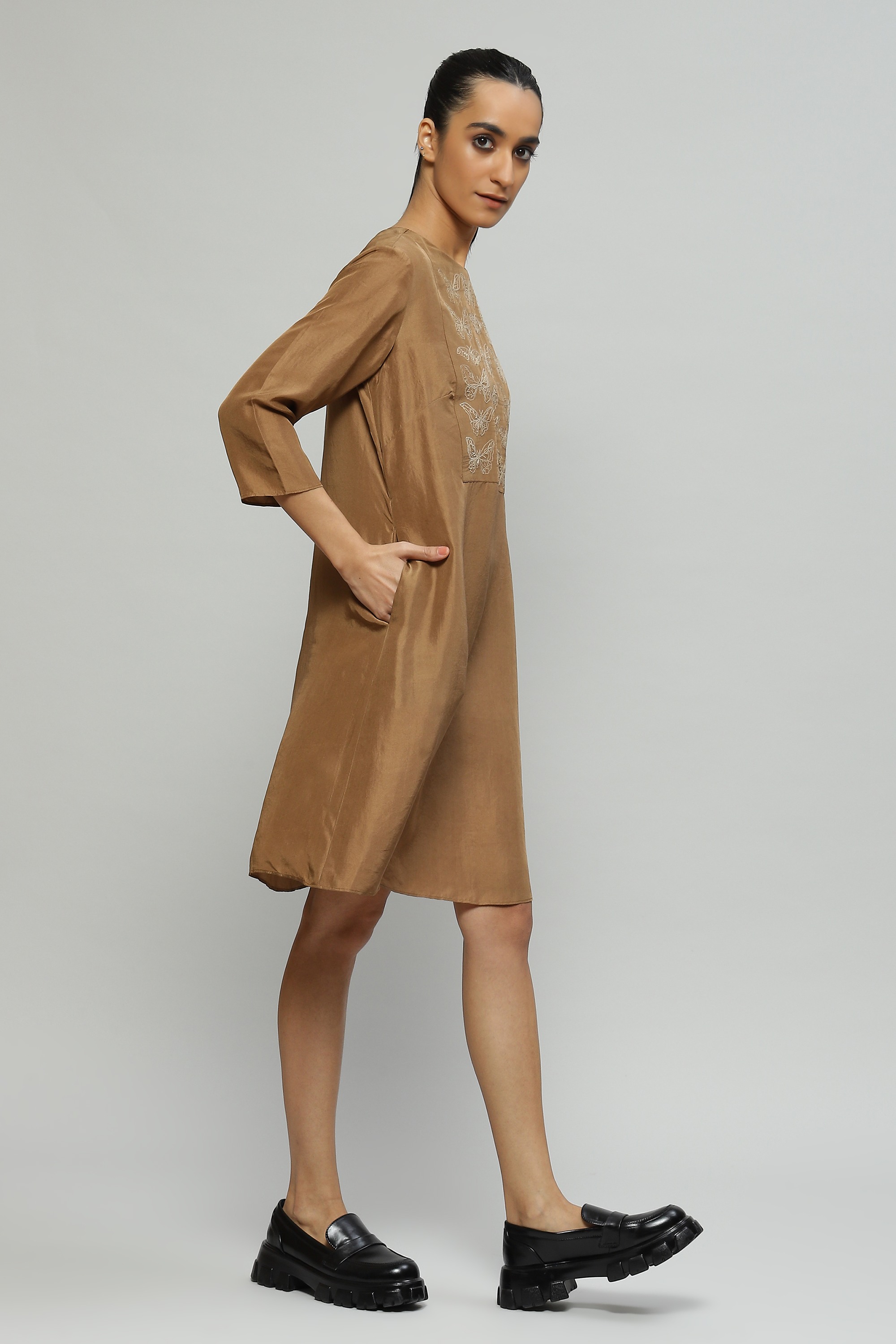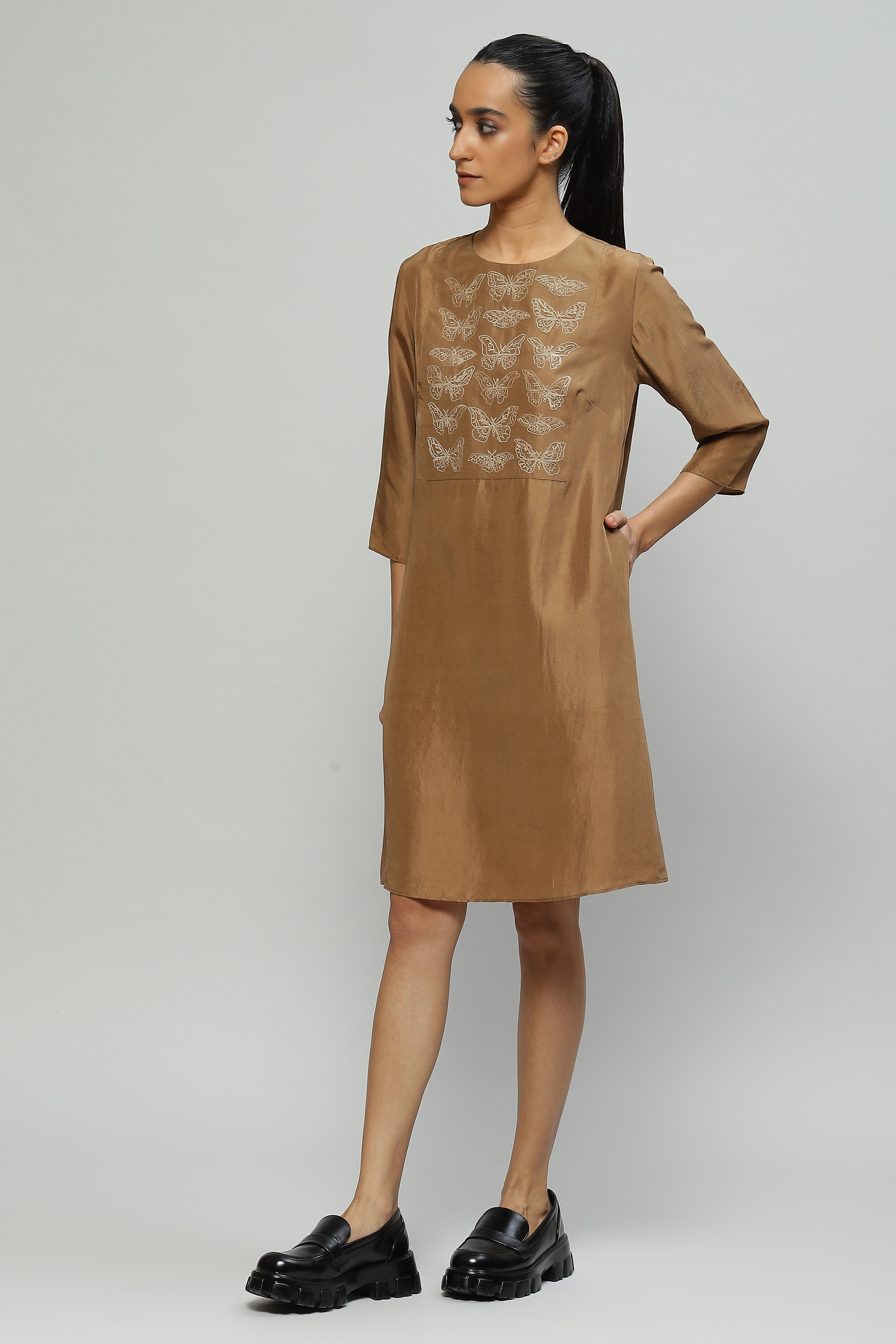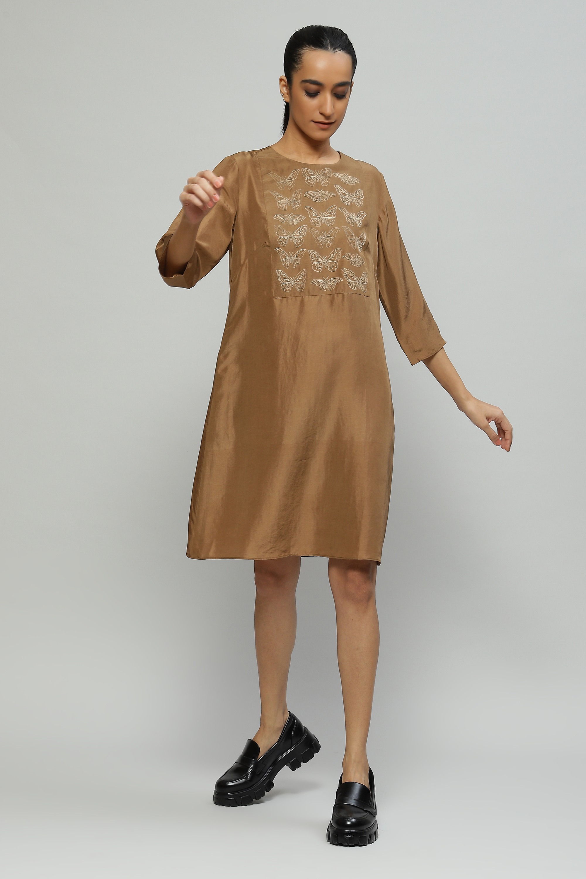 Tussar Embroidered Silk Dress