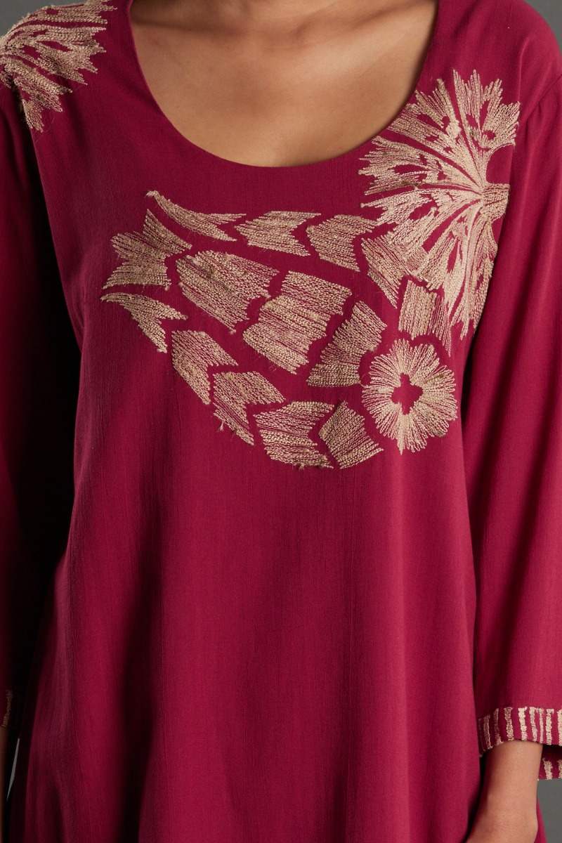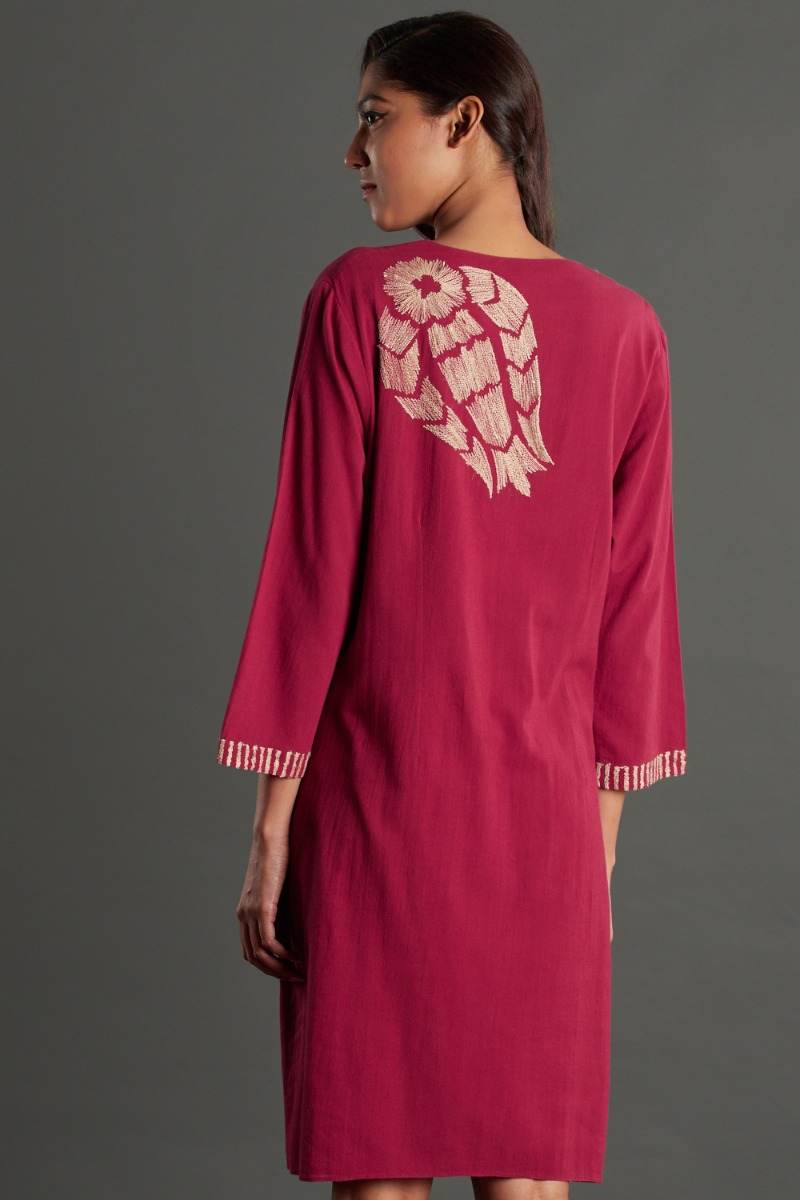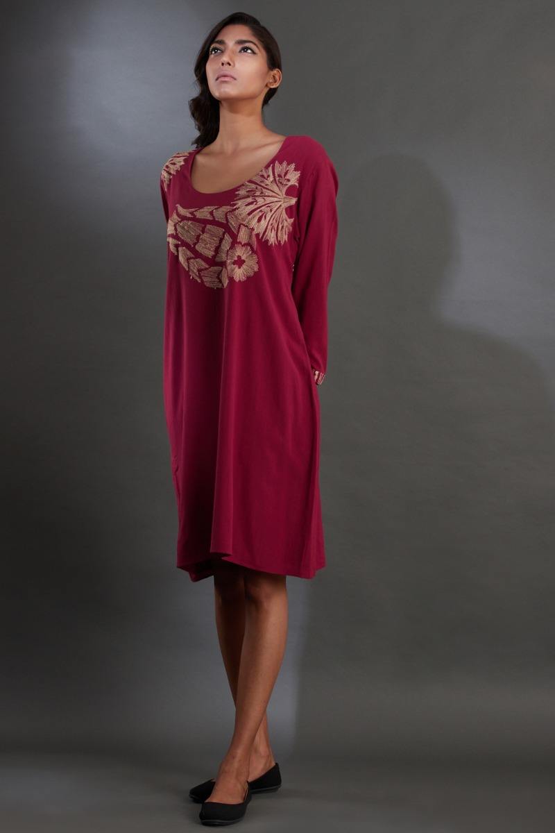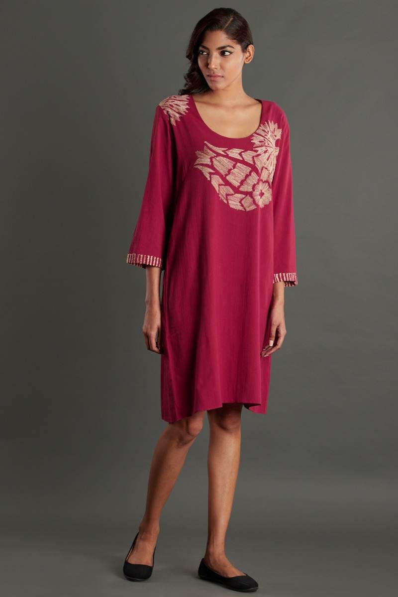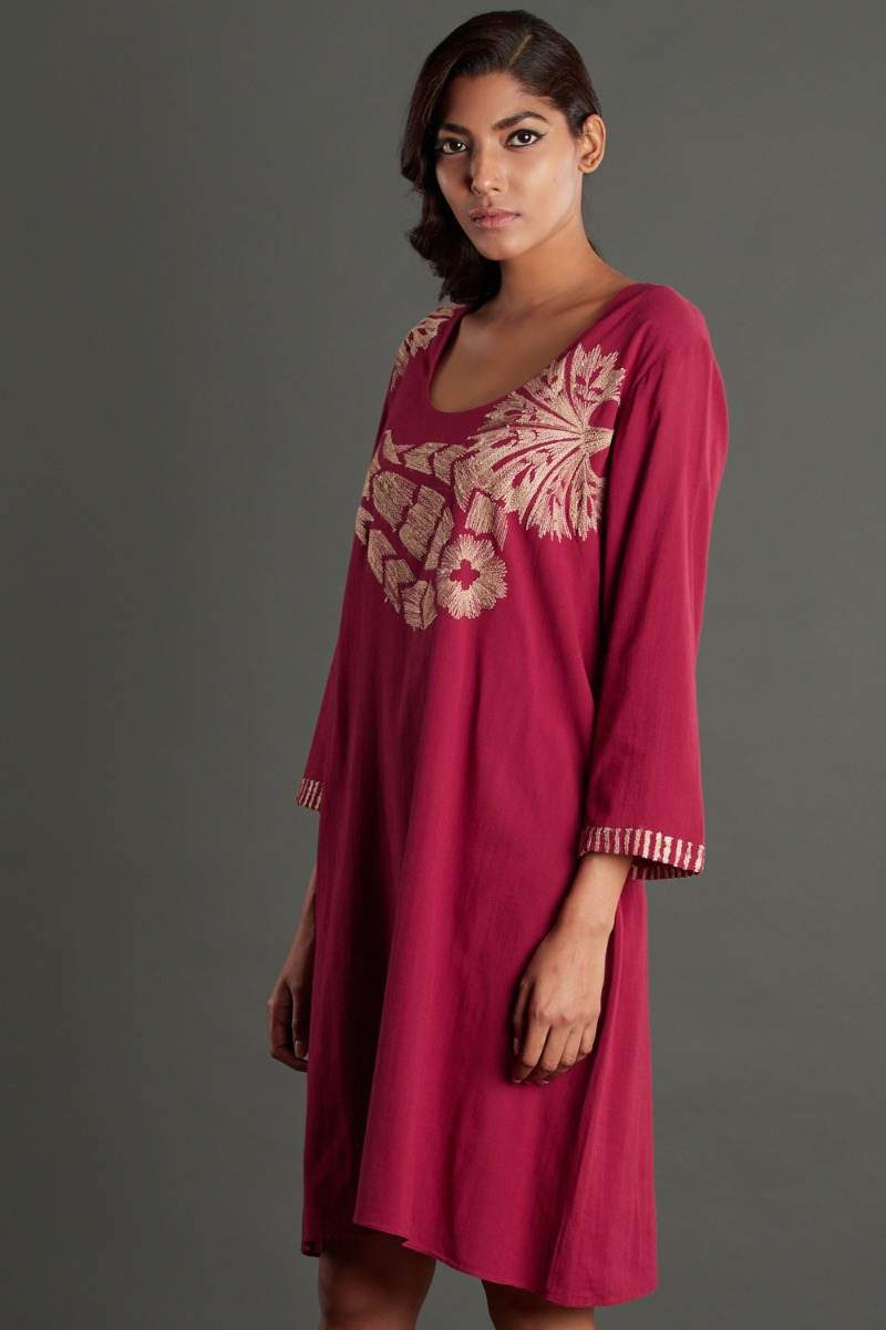 Tussar embroidery cotton dress. Garments are made from fabric that is washed and pre-shrunk to give a superior hand.