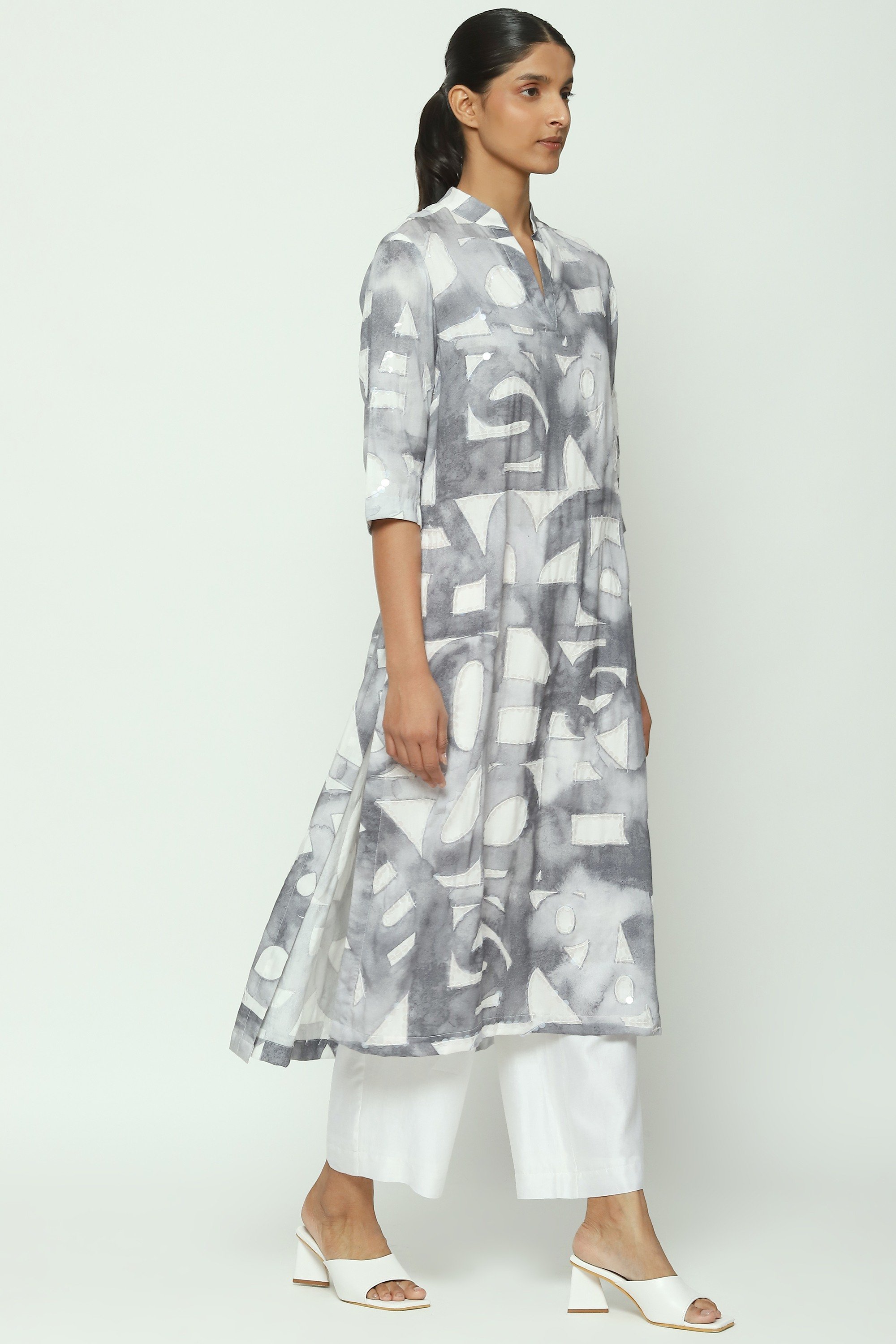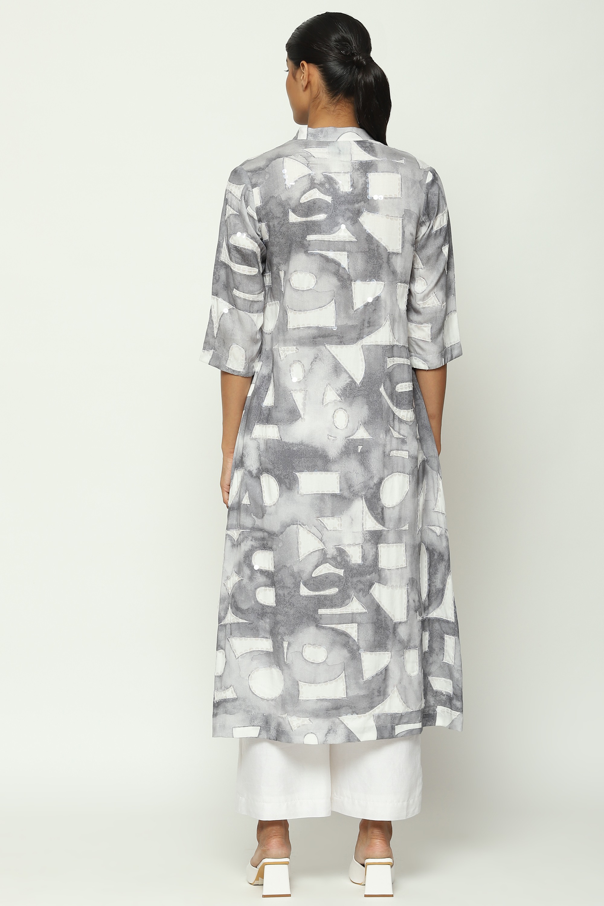 An abridged alphabet, handpainted and translated to a digital print on a white kurta.