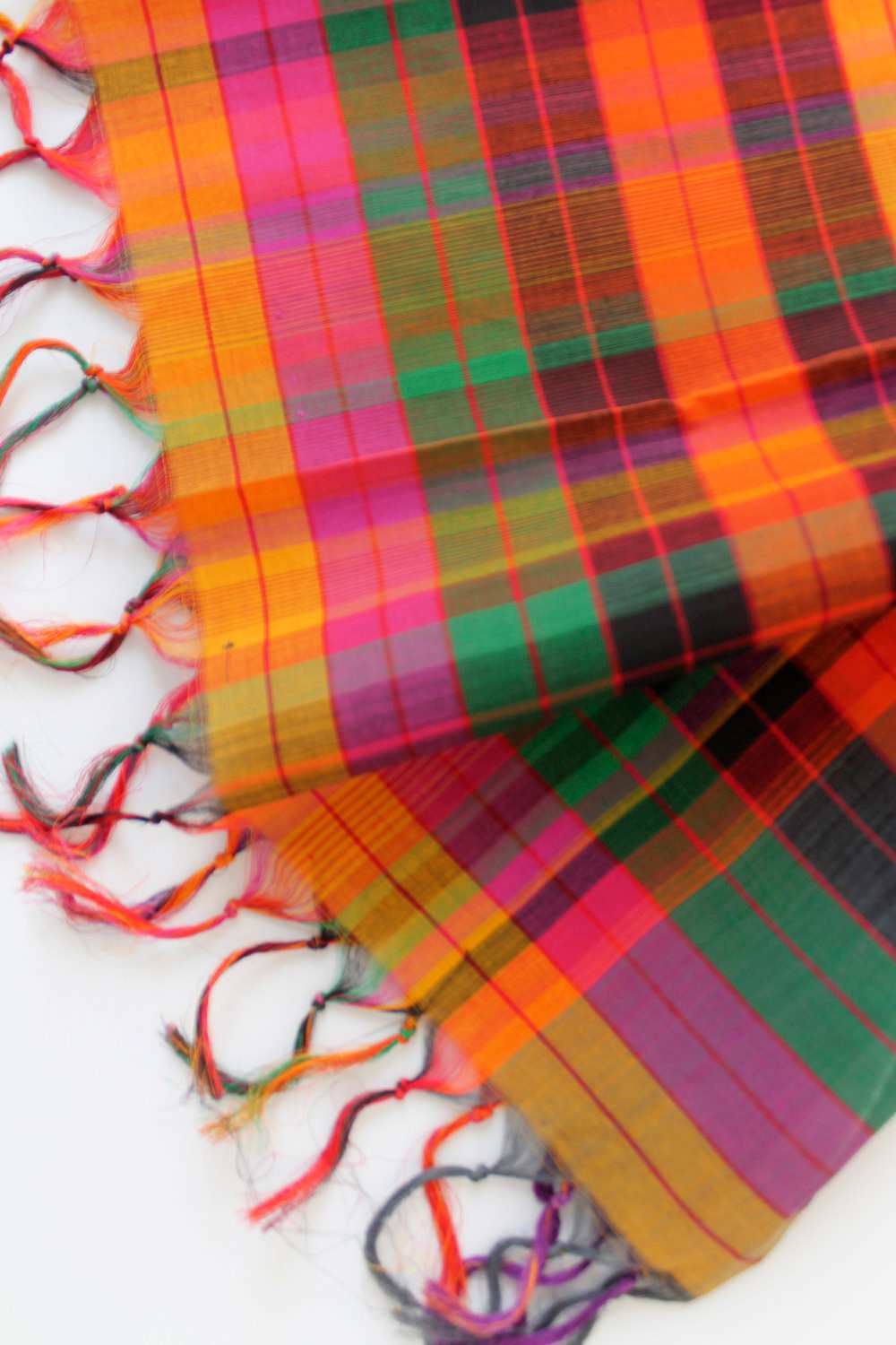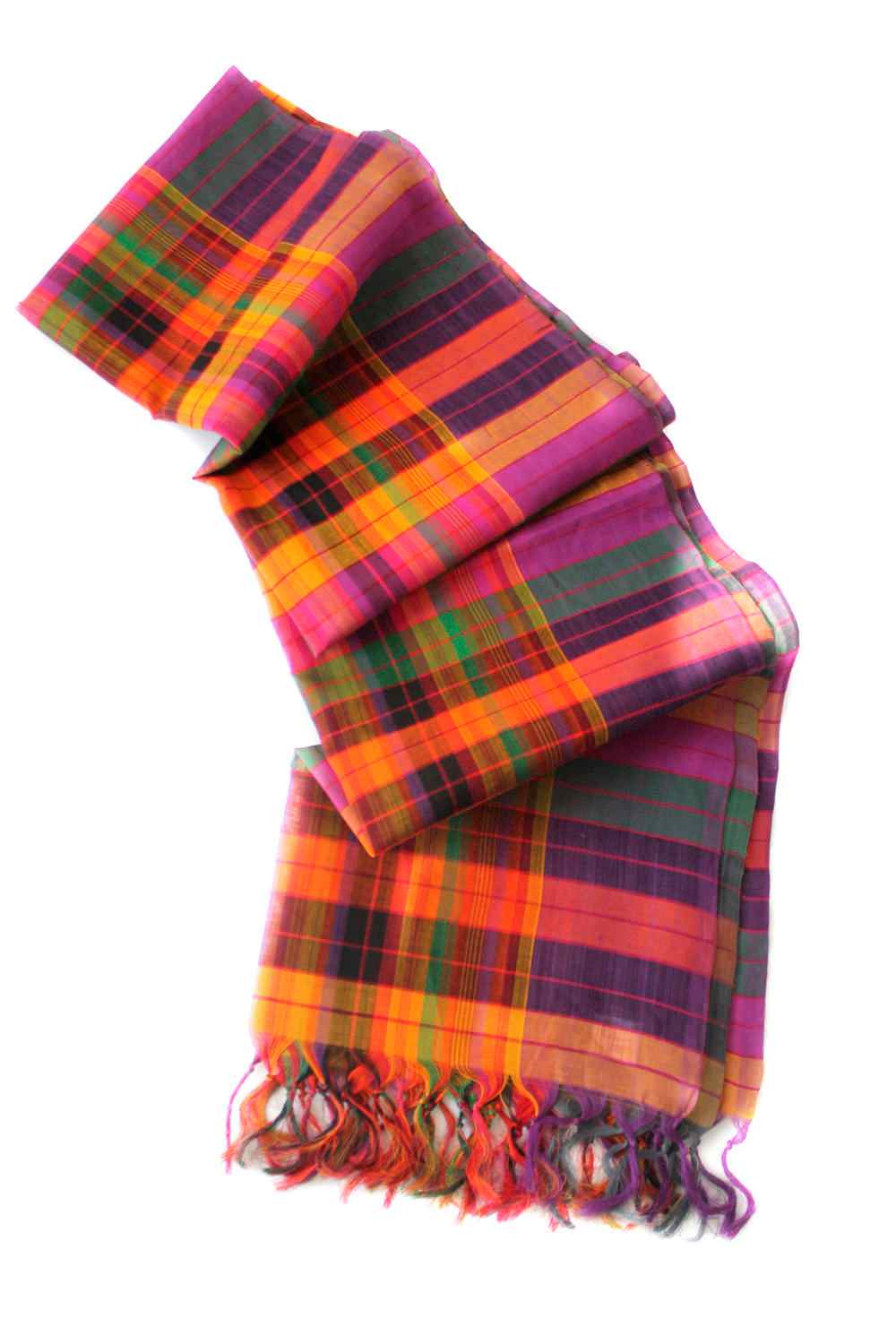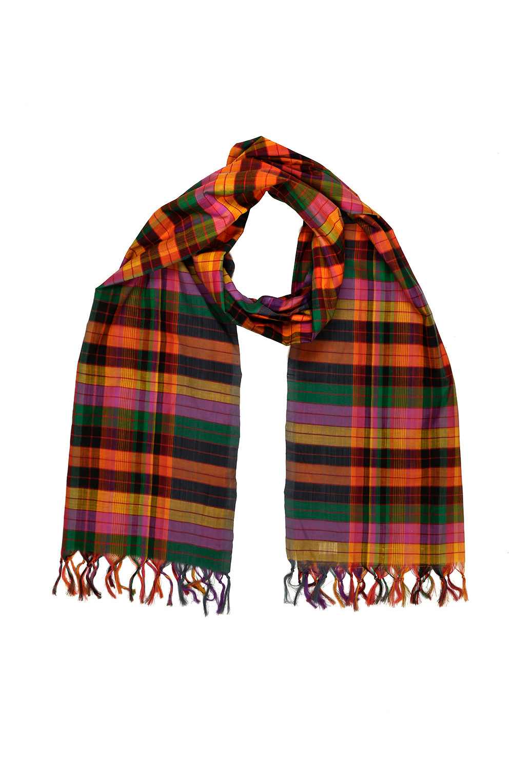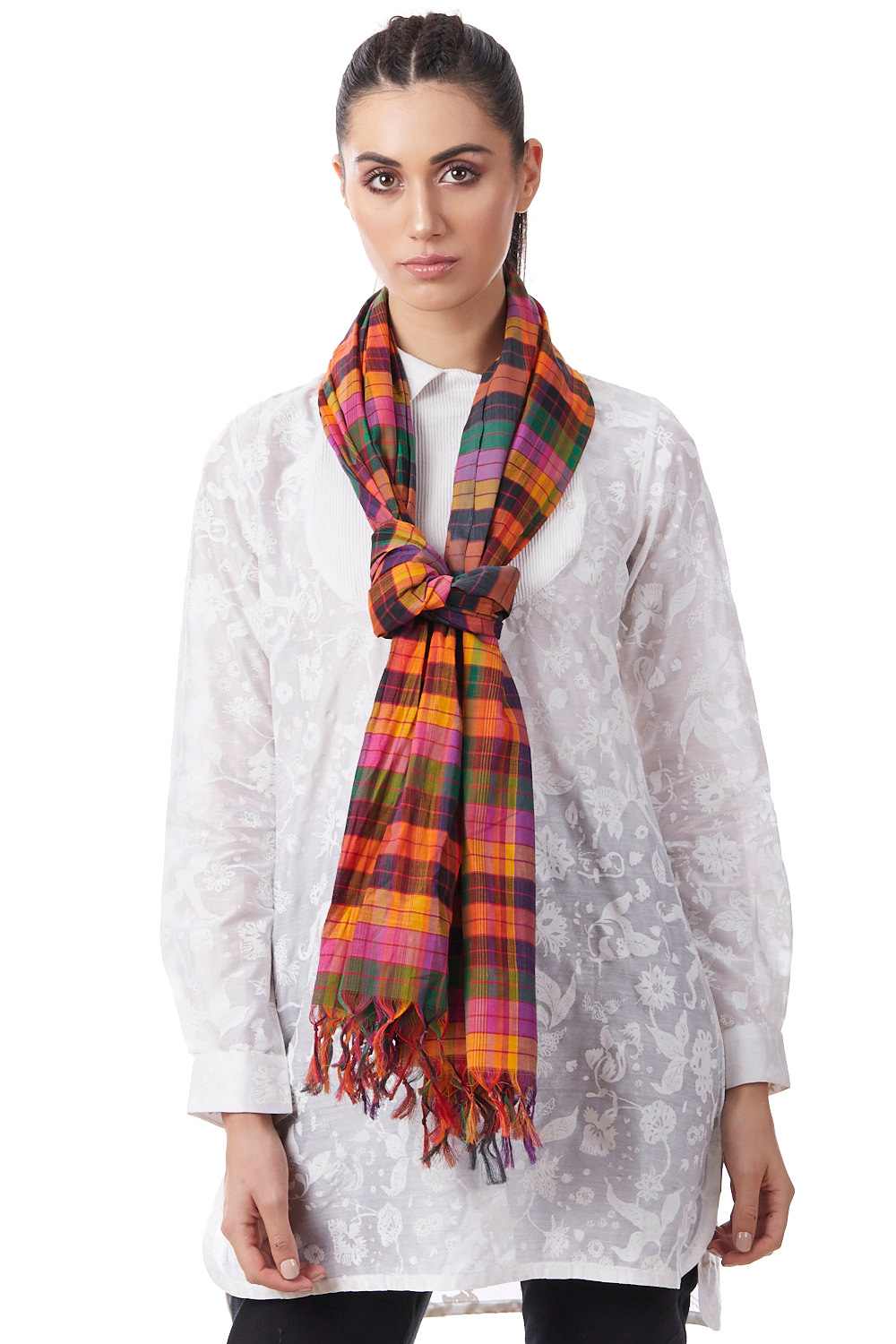 Woven Multicolor All Over Checkered Cotton Scarf. Abraham And Thakore Scarves Are Handcrafted And Exclusively Designed, Produced In Very Limited Editions.