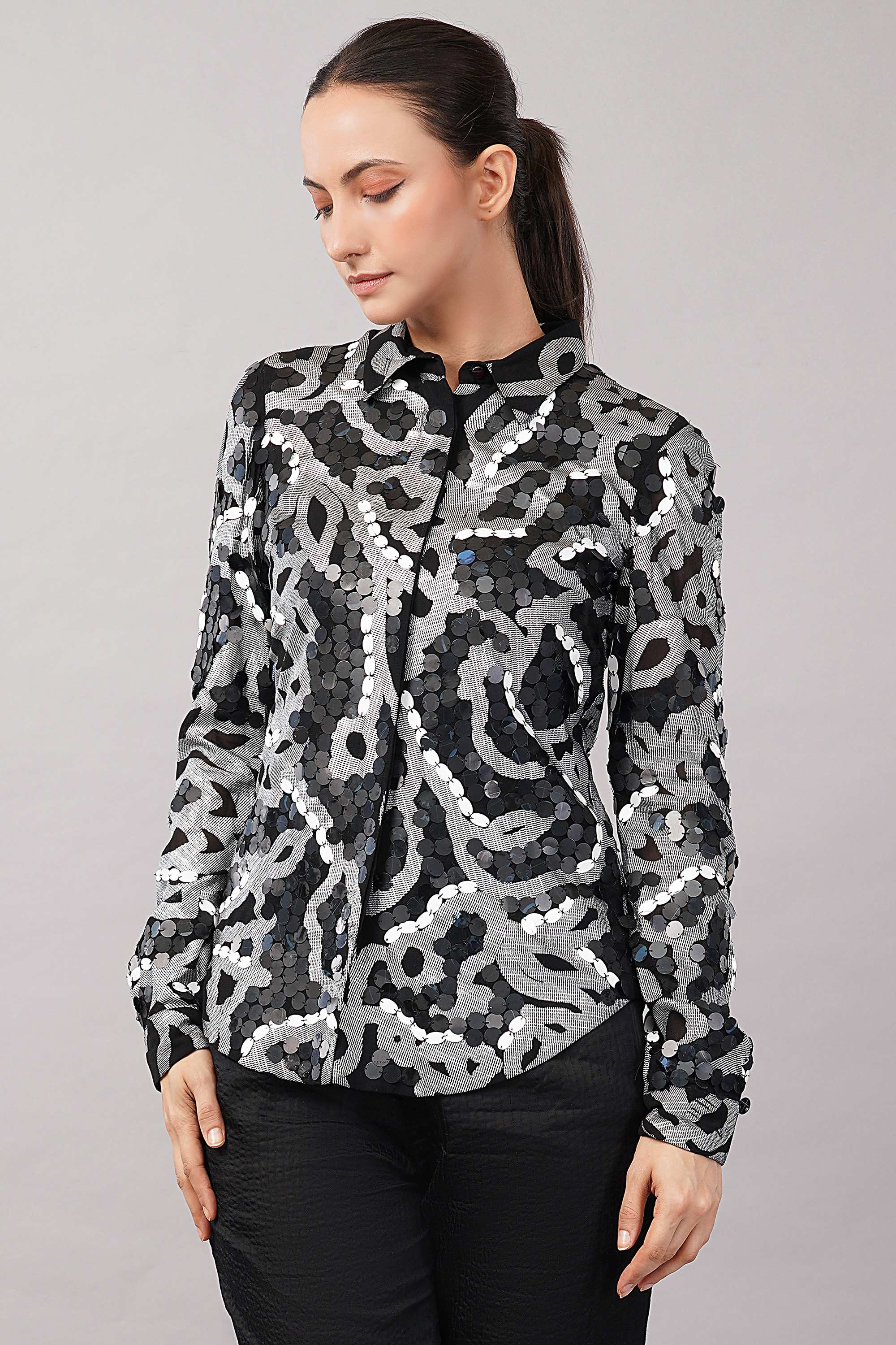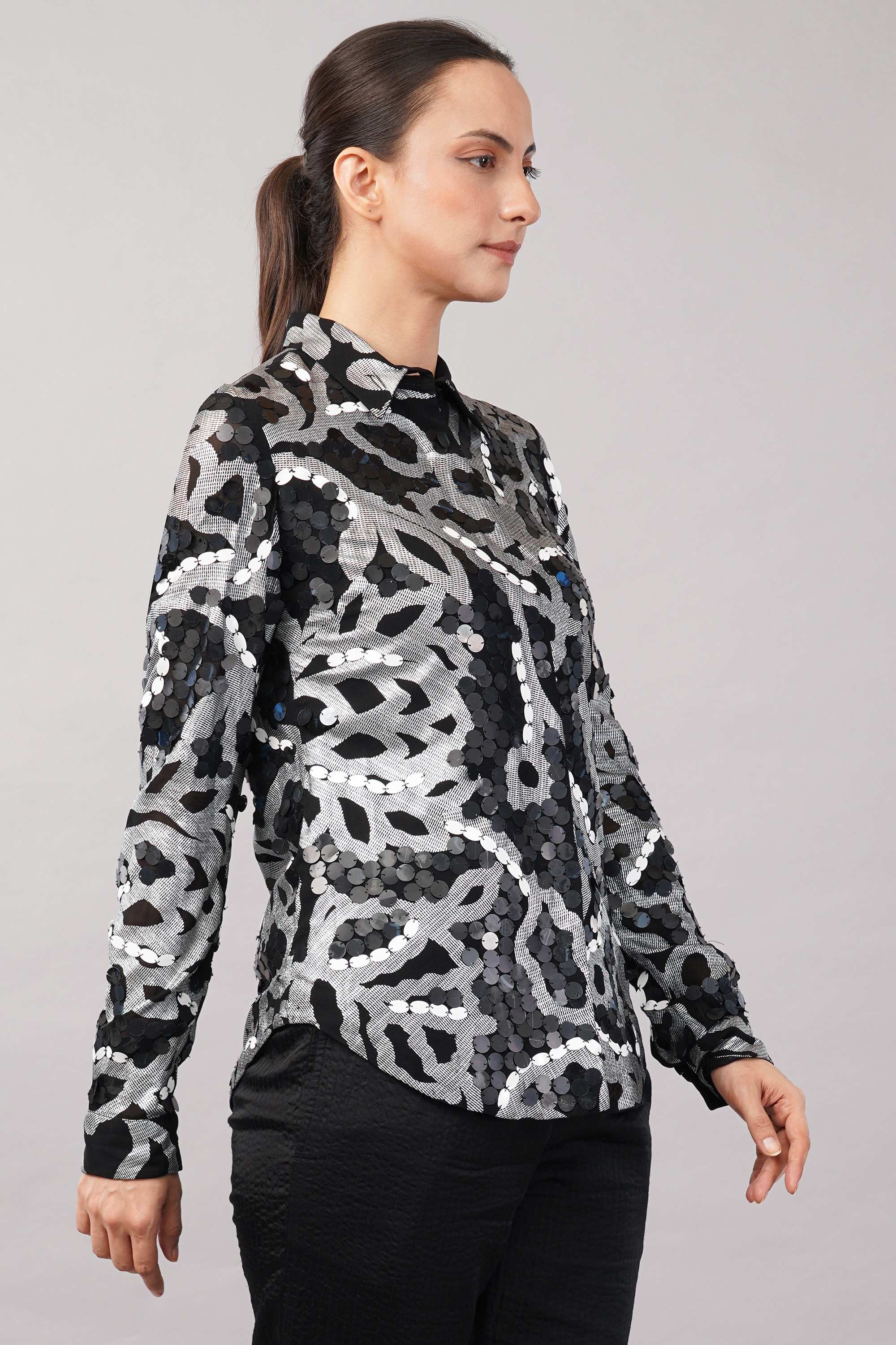 Embellishment Description : The garment has been hand embellished with sequins using an aari needle on a frame.