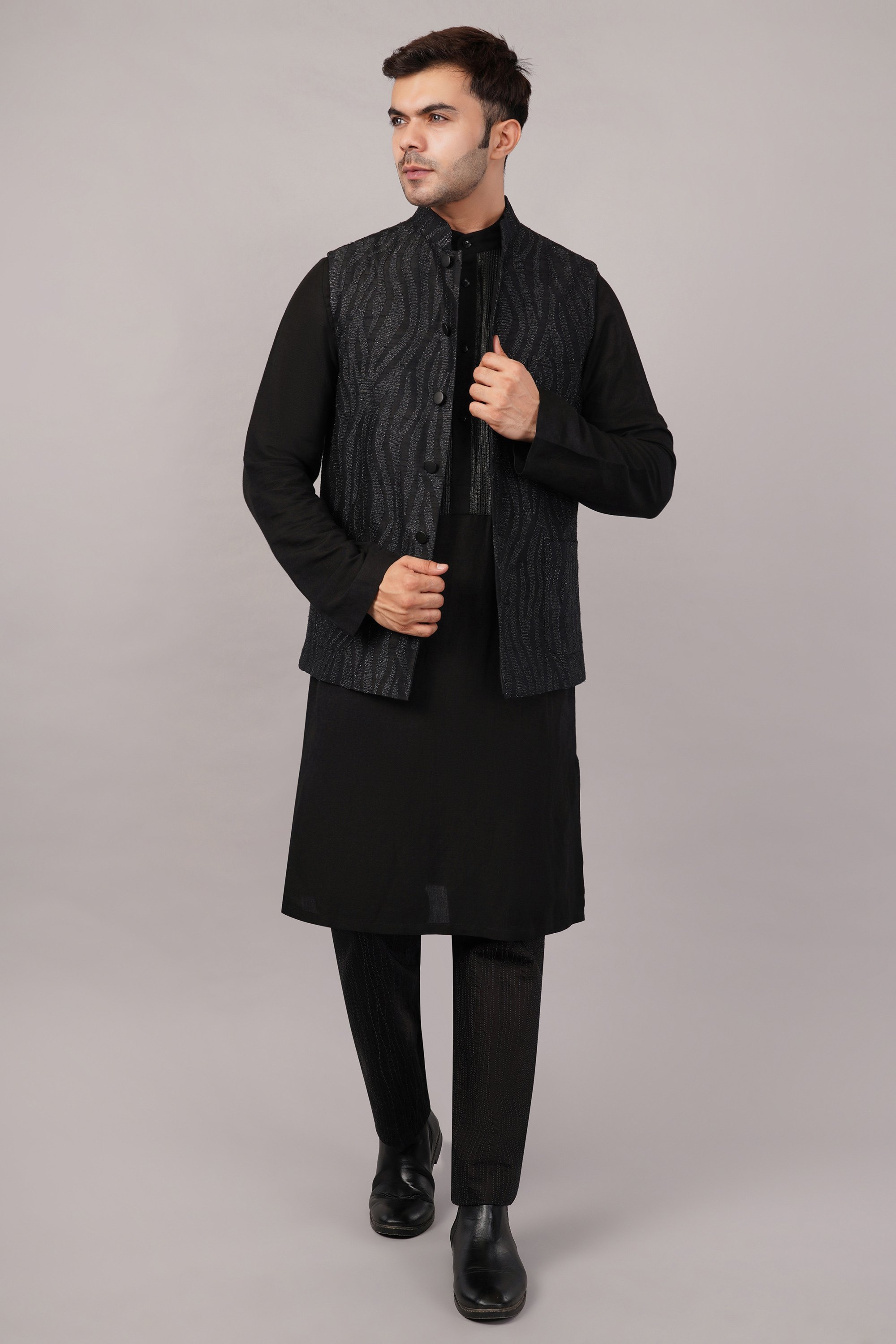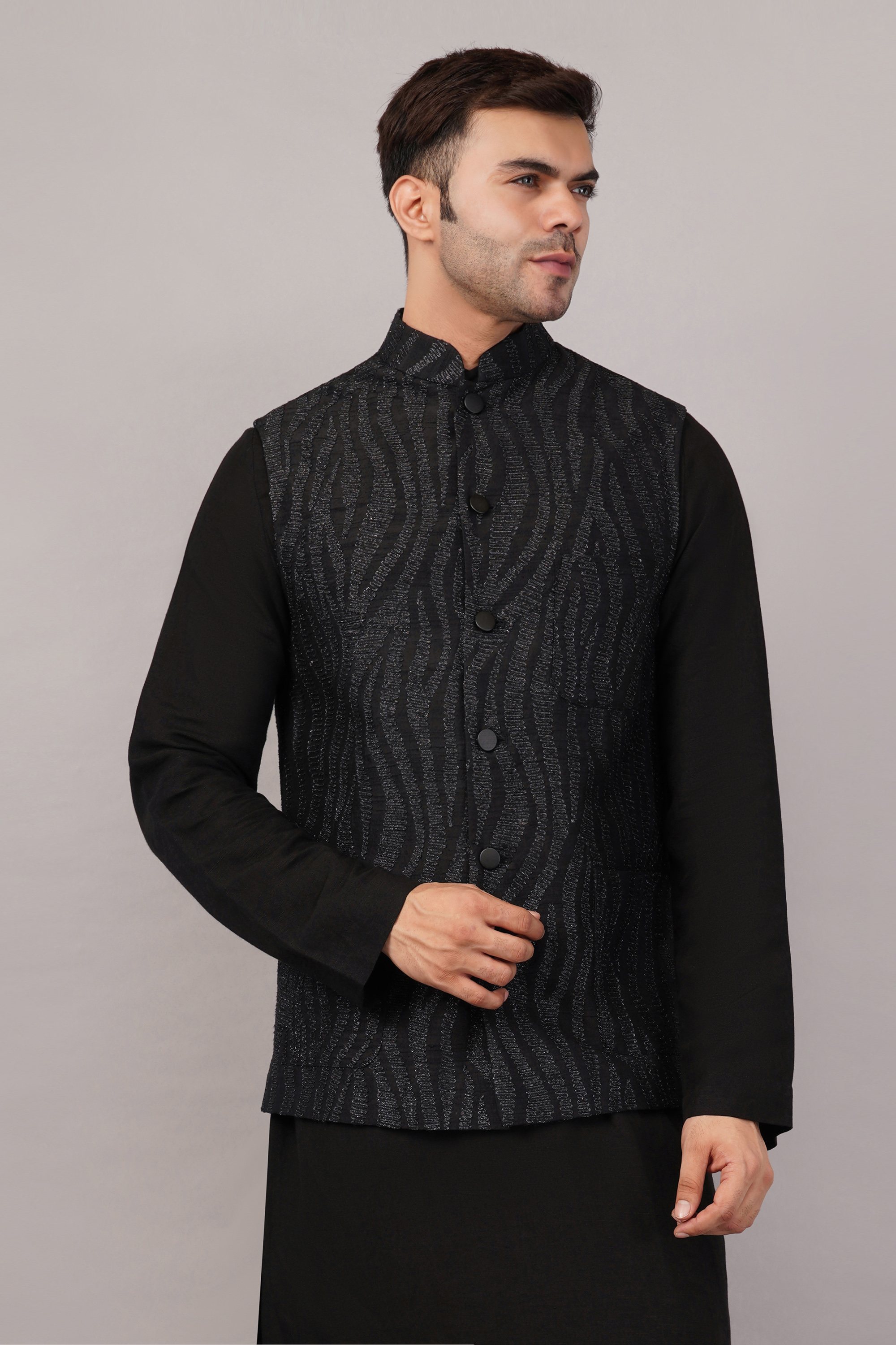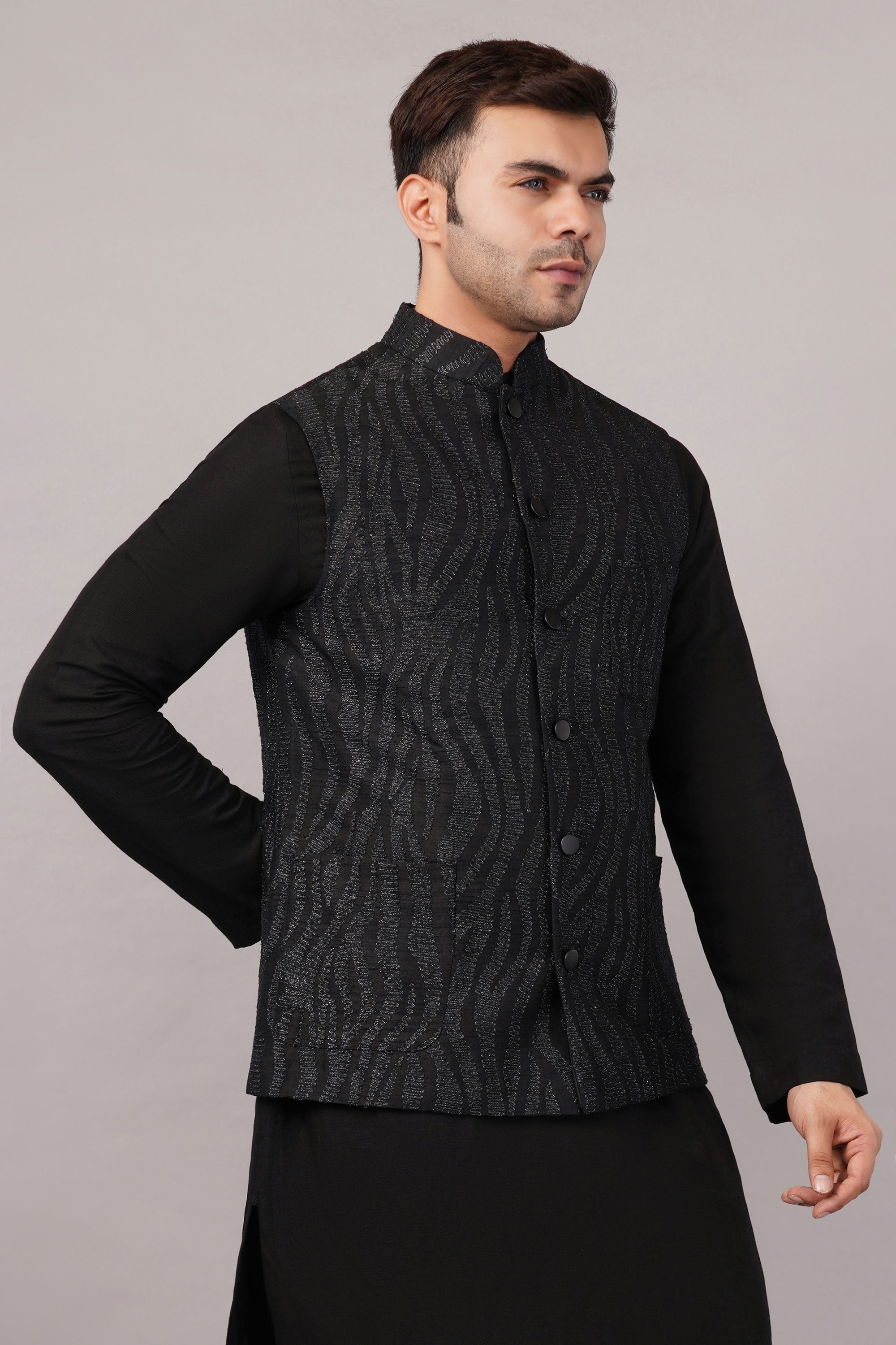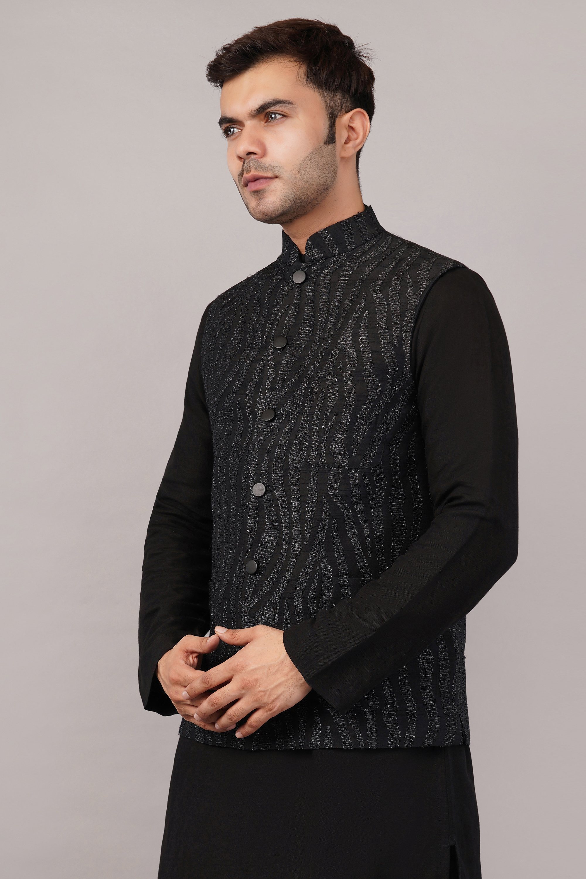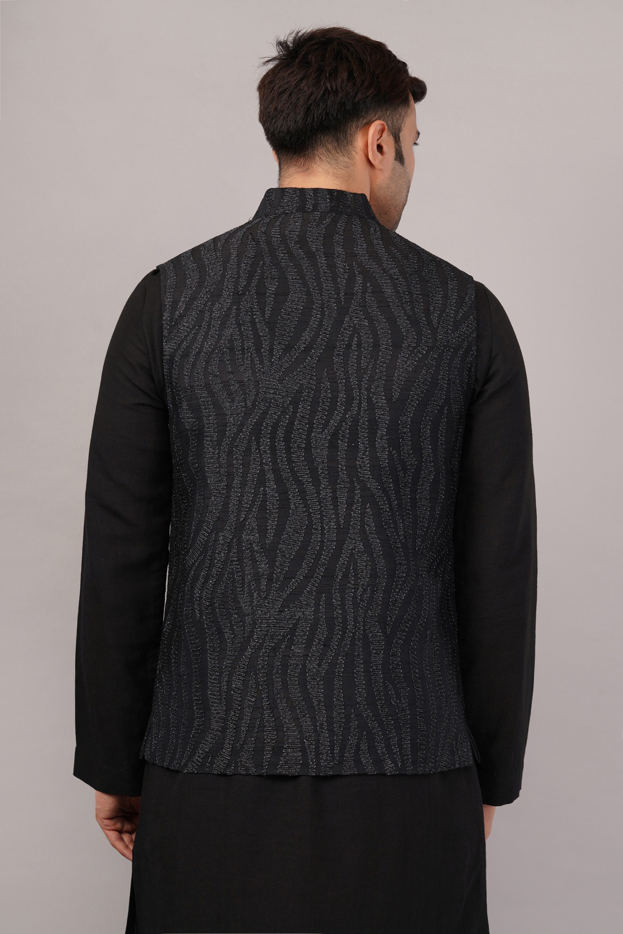 This limited edition piece has been made using a fine cotton corduroy embroidered all over with a zebra-skin pattern in metallic thread.