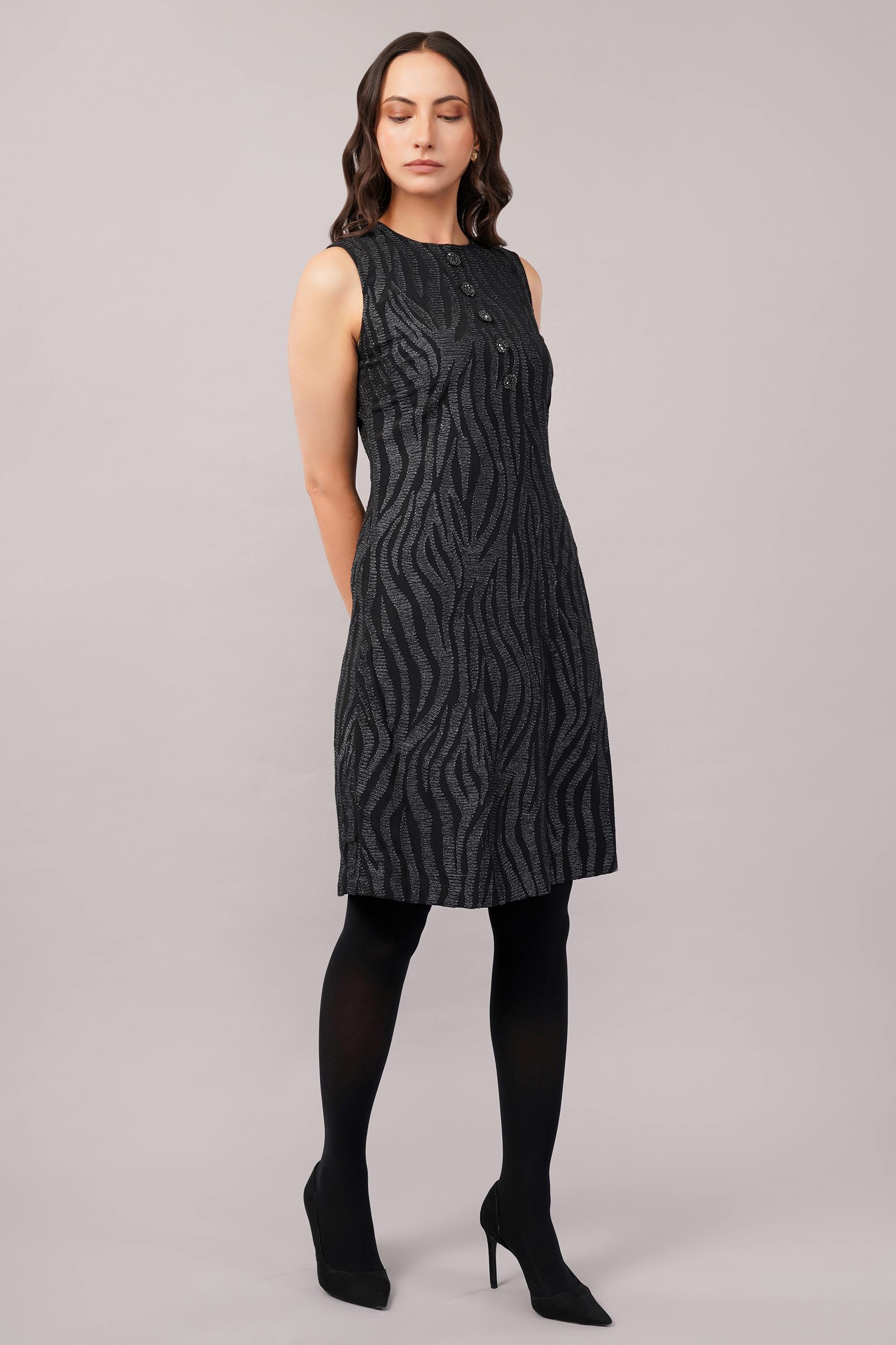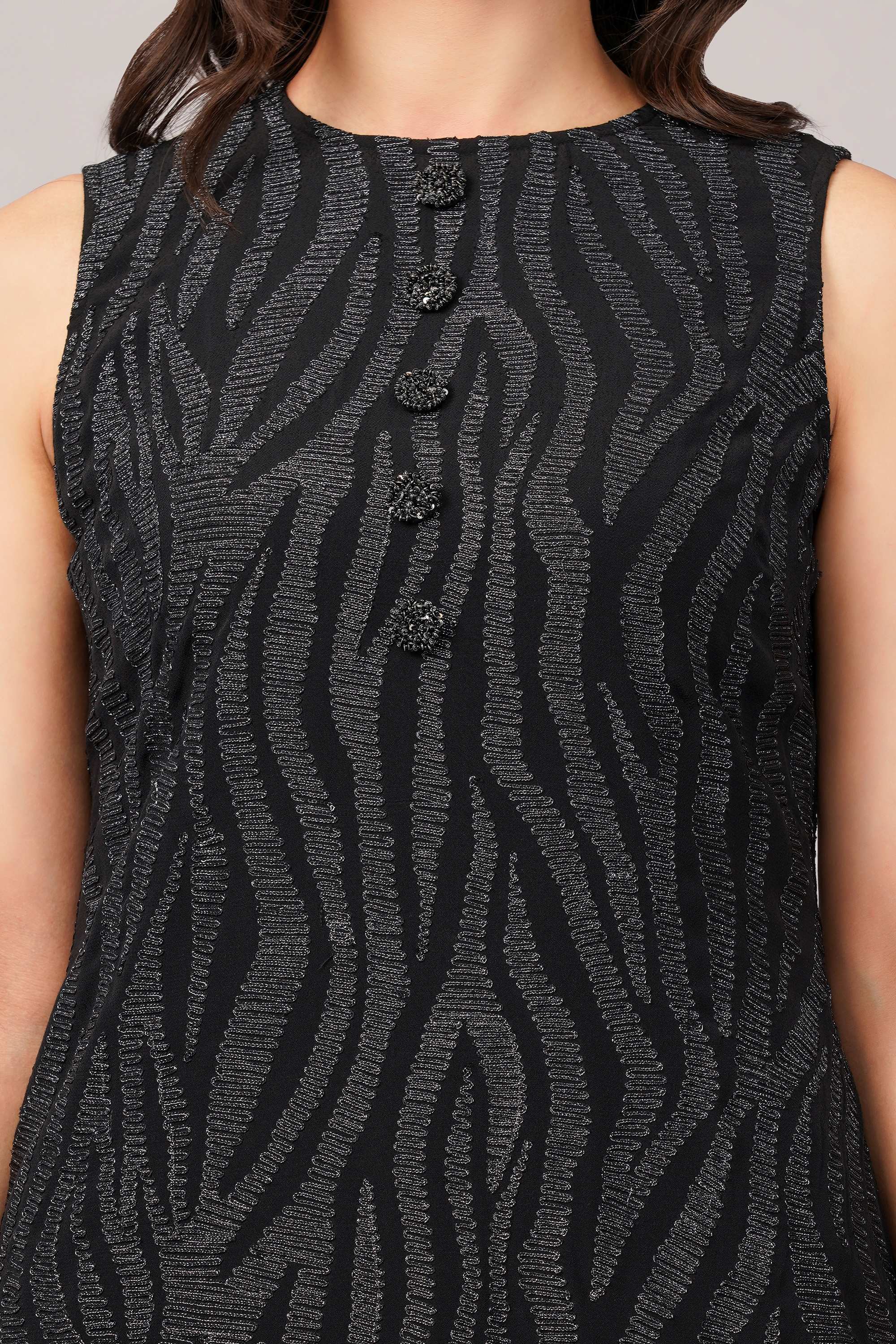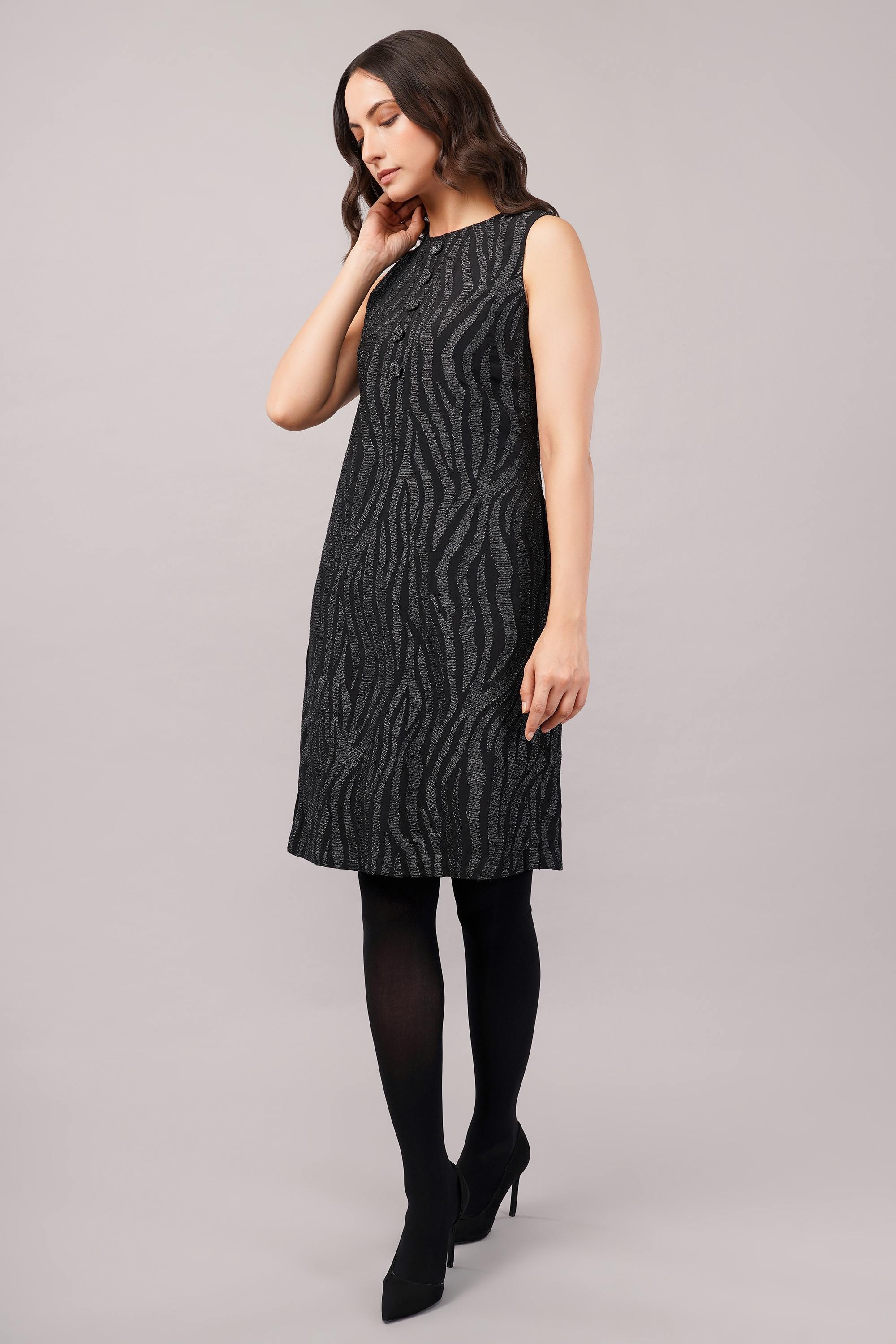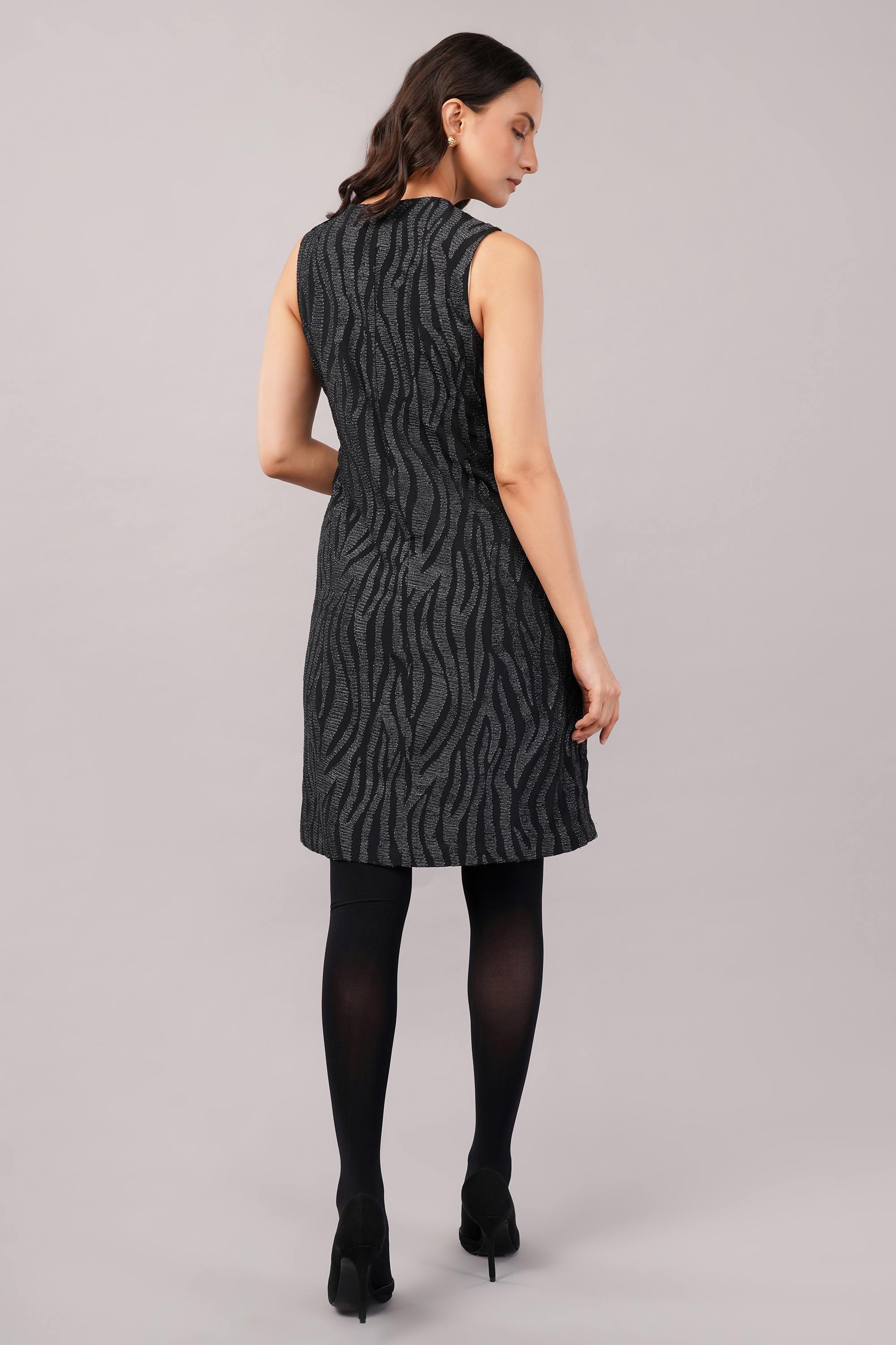This limited edition piece has been made using crepe which has been hand machine embroidered using a metallic thread in an allover zebra skin pattern.